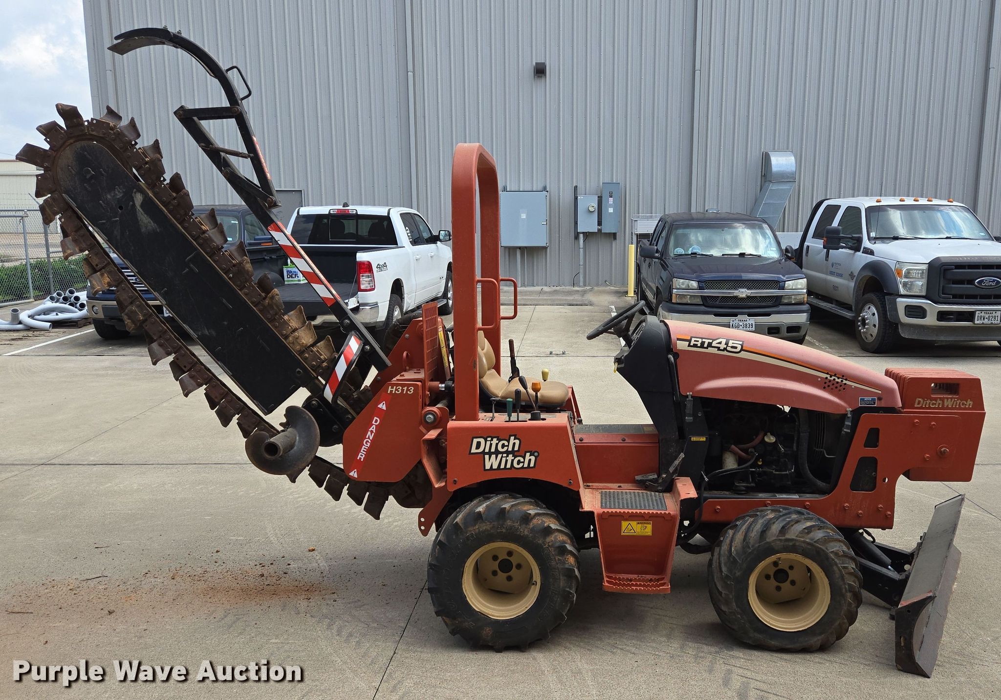 Purple Wave is selling a used Trencher or Rock Saw in Texas. This item is a 2011 Ditch Witch RT45 trencher with the following: Hours: 524 on meter, Serial: CMWRT45XLB0000730