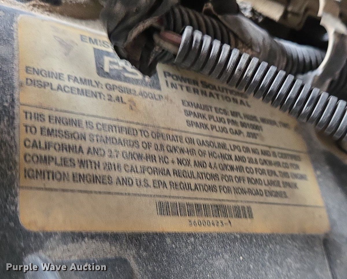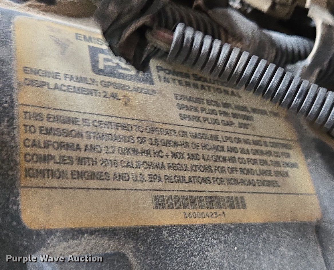 2016 Yale GLP060MXNEAE091 forklift. Hours: 6,539 on meter, Serial: A390V01791P, Unit #: SFS2020. Engine Power Systems International, Displacement: 2.4L, Fuel type: LPG LP bottle: Not included. Transmission Powershift. Operators station Canopy. Features Maximum lift capacity: 5,550 lbs, Maximum lift height: 187.8", Mast stages: 3, Side shift, Mast tilt, Fork length: 72". Tires Front: 8.15-15, Rear: 6.50-10, Solid. Ferguson. Corpus Christi, TX 78409