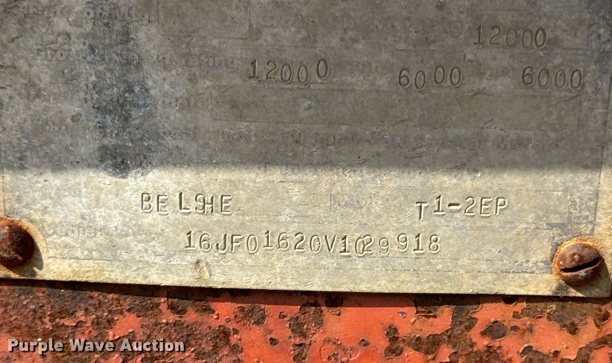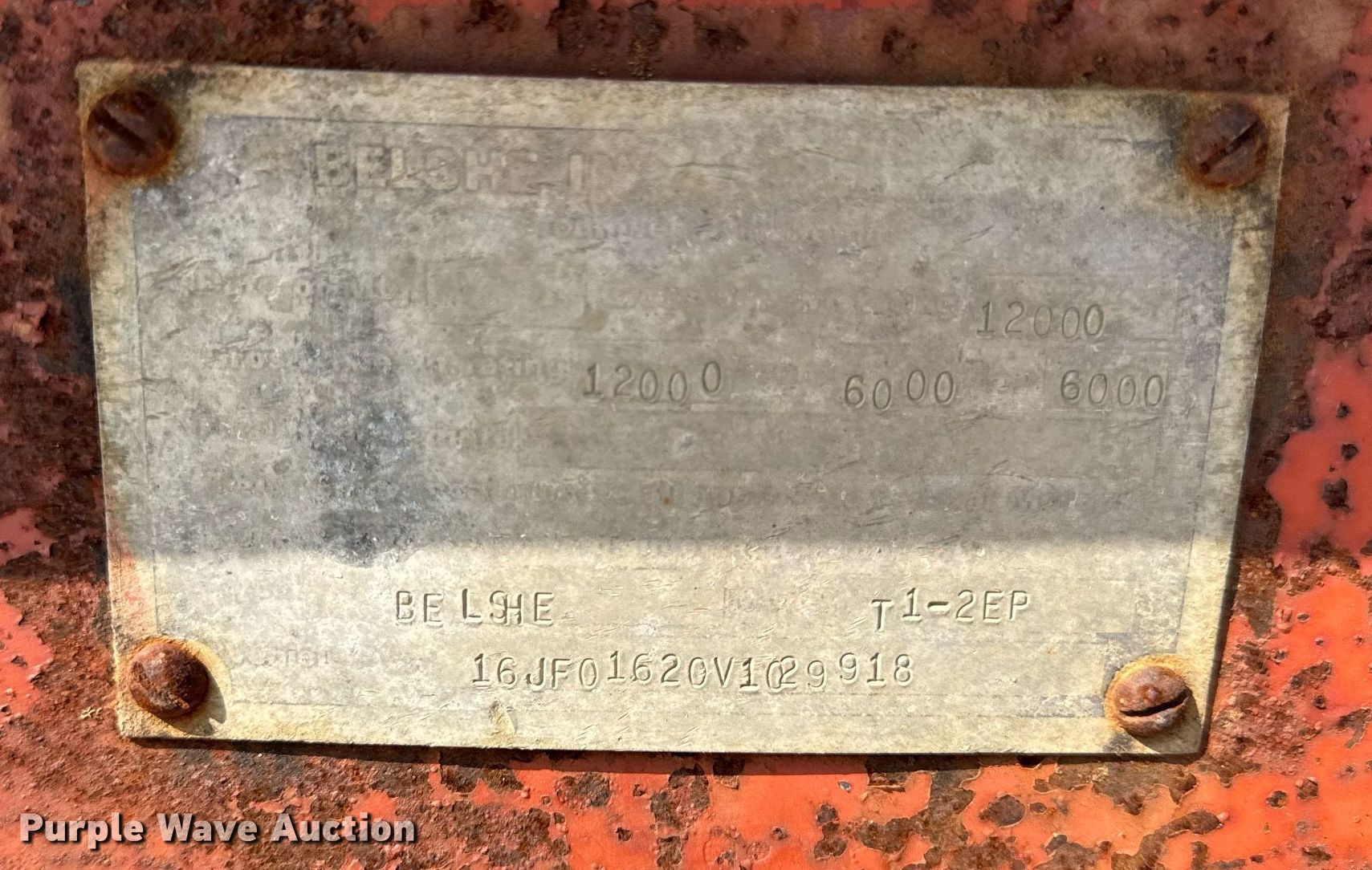1997 Belshe T1-2EP equipment trailer. VIN: 16JF01620V1029918. Dimensions Overall: 26' L x 97" W, Deck: 16' L x 76.5" W, Deck height: 23", Tail length: 2', Ramps: Manual Length: 72". Features Deck type: Wood. Chassis Hitch: Pintle, Landing gear: Single, Suspension: Spring, Brakes: Electric, GVWR: 12,000 lbs, GAWR: 6,000 lbs. Tires Steel wheels, Size: 235/80R16. Illinois title. Title distribution may be delayed up to 14 days from verification of funds. Logonix. Colchester, IL 62326