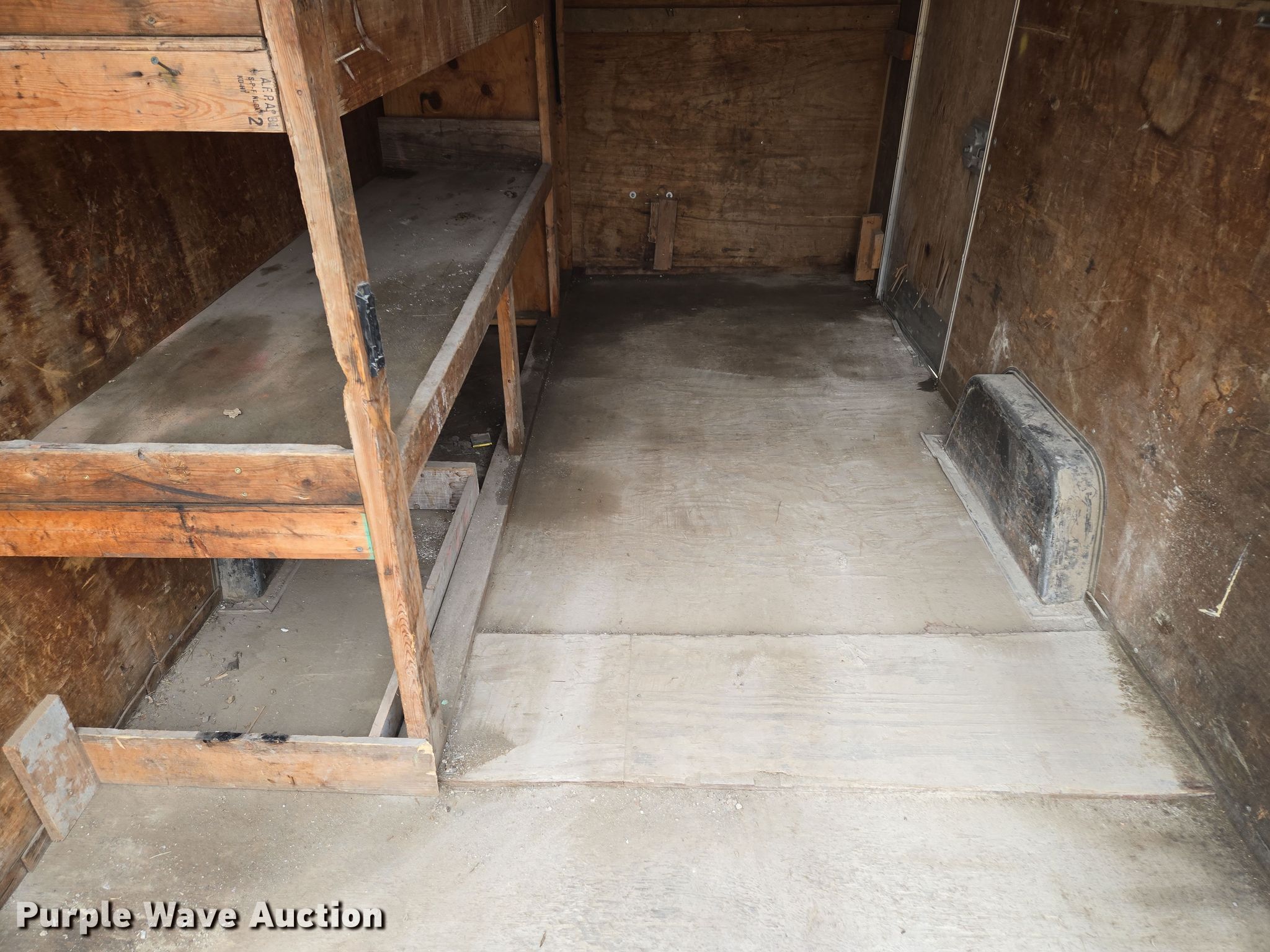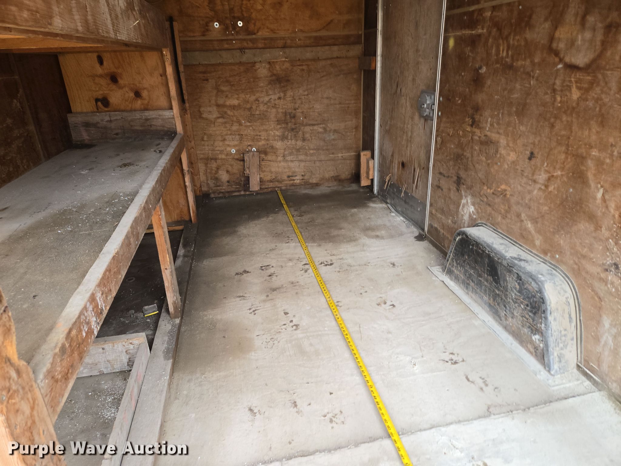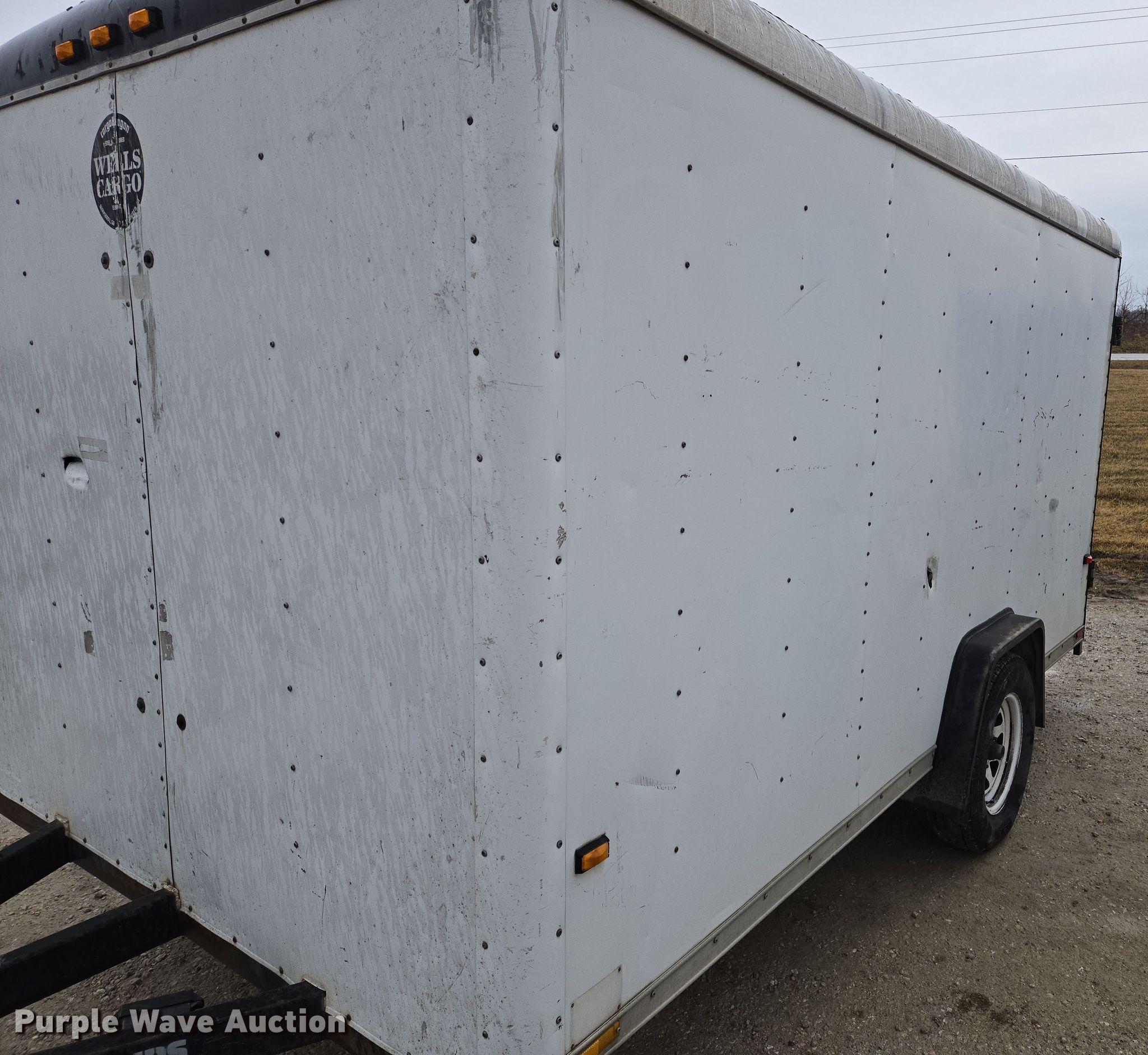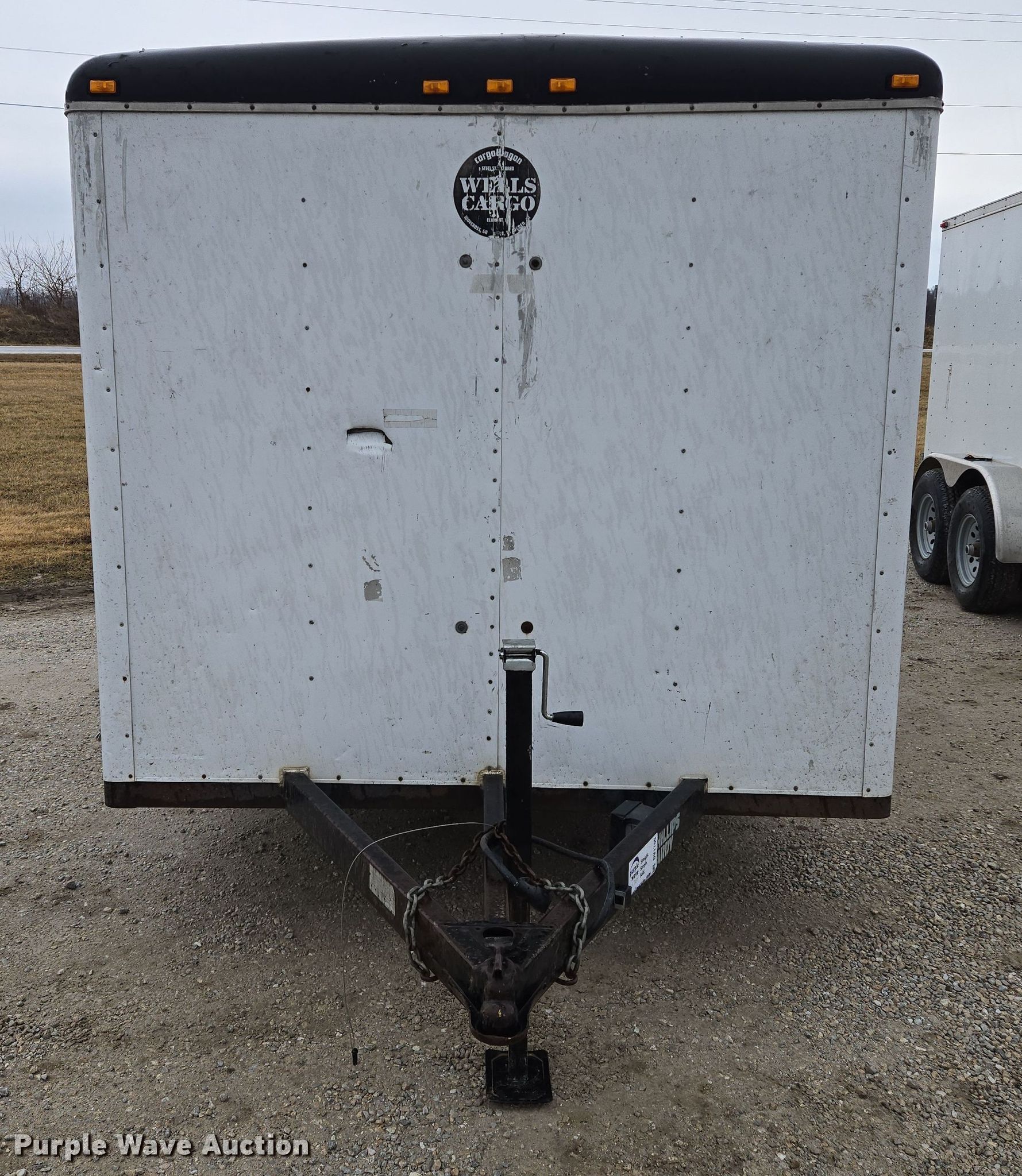 1995 Wells Cargo Enclosed cargo trailer. VIN: 1WC200E12S4020186. Dimensions Overall: 16' L x 94" W, Body: 11' 9" L x 81" W. Features Deck type: Wood. Chassis Ball hitch: 2", Landing gear: Single, Suspension: Spring, Brakes: Electric. Tires Steel wheels, Size: 205/75R15. Missouri title. Title has a lien that will be released following the close of the auction. Title distribution may be delayed up to 30 days from verification of funds. Hardy Holding Group. Boonville, MO 65233