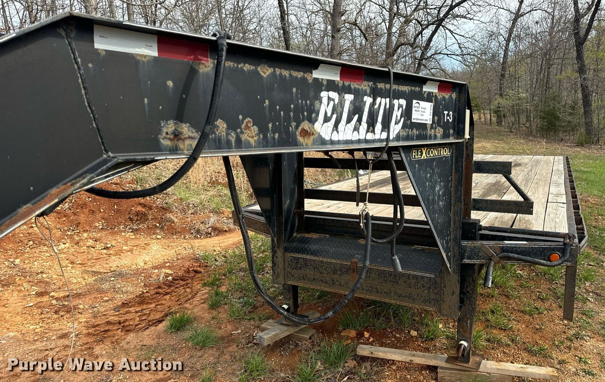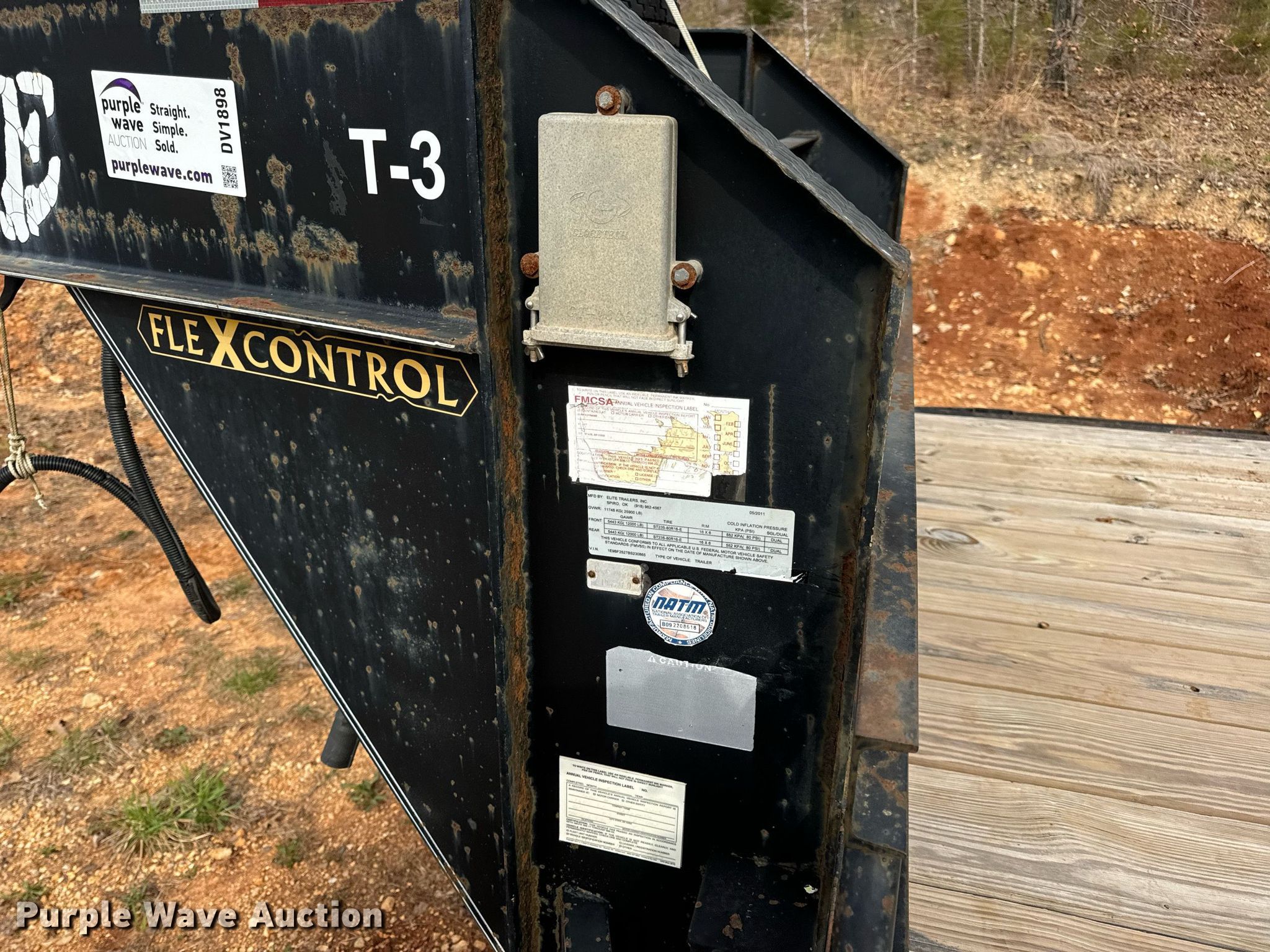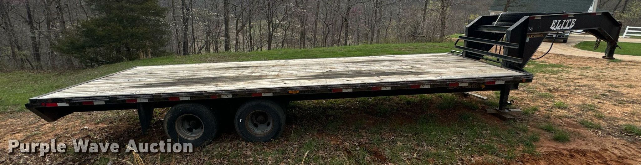 2011 Elite Trailers flatbed trailer. VIN: 1E9BF2527BS230865. Dimensions Overall: 34' 8" L x 101" W, Deck: 24' 11" L x 97" W. Features Deck type: Wood. Chassis Hitch: Gooseneck, Landing gear: Dual, Suspension: Spring, Brakes: Electric, Axles: Tandem, GVWR: 25,900 lbs, GAWR: 12,000 lbs. Tires Steel wheels, Size: ST235/85R16. Missouri title. Title distribution may be delayed up to 14 days from verification of funds. Camdenton, MO 65020