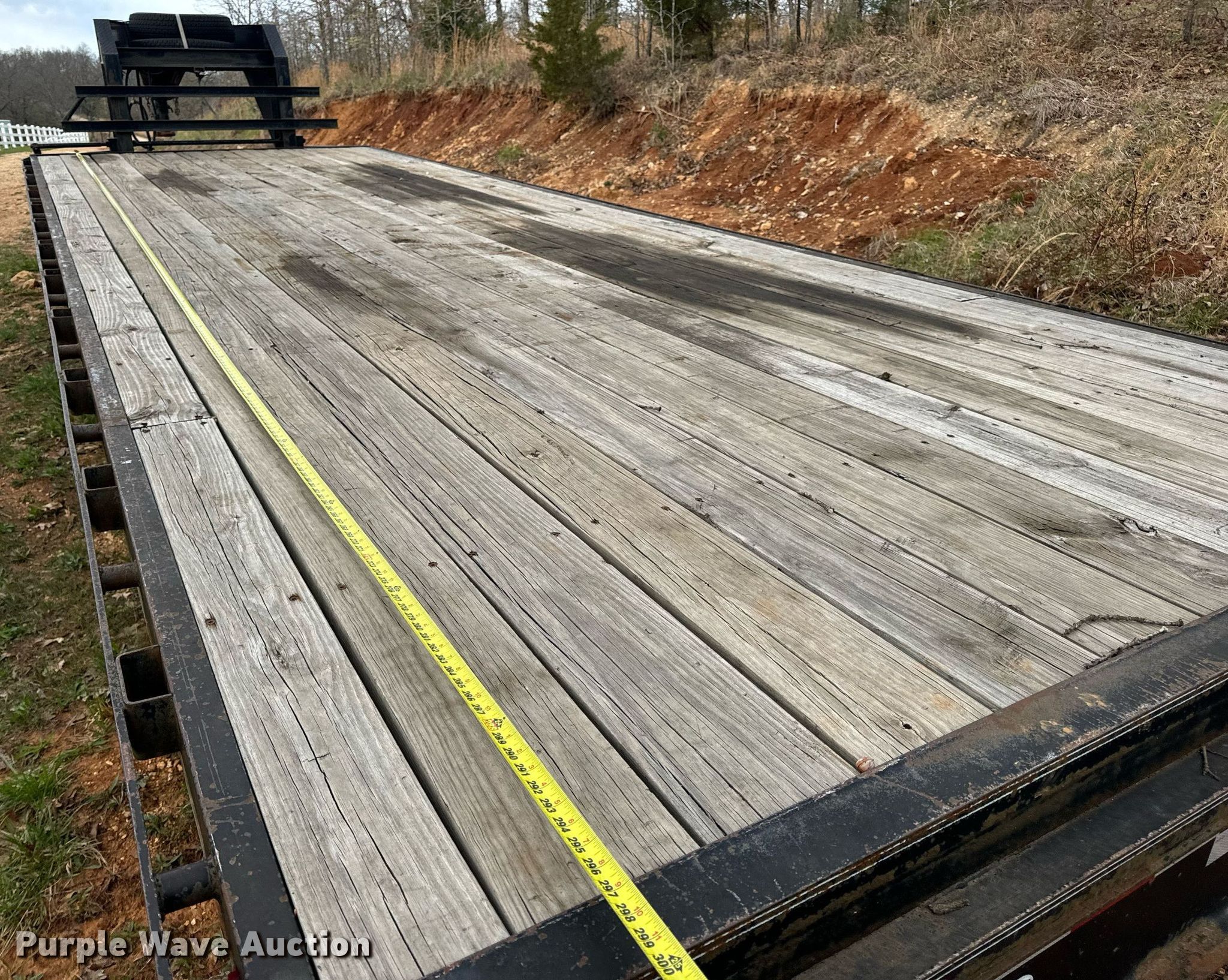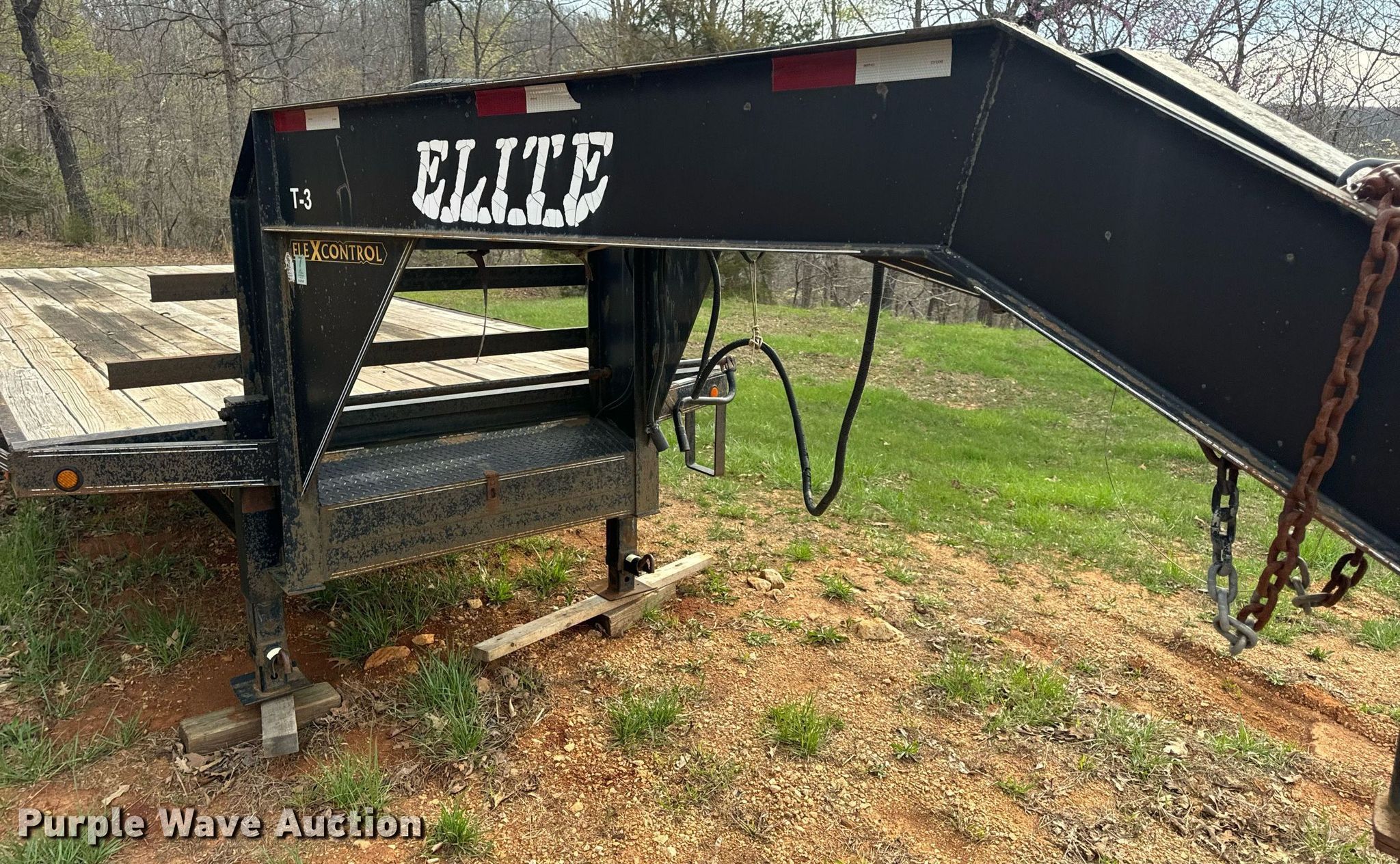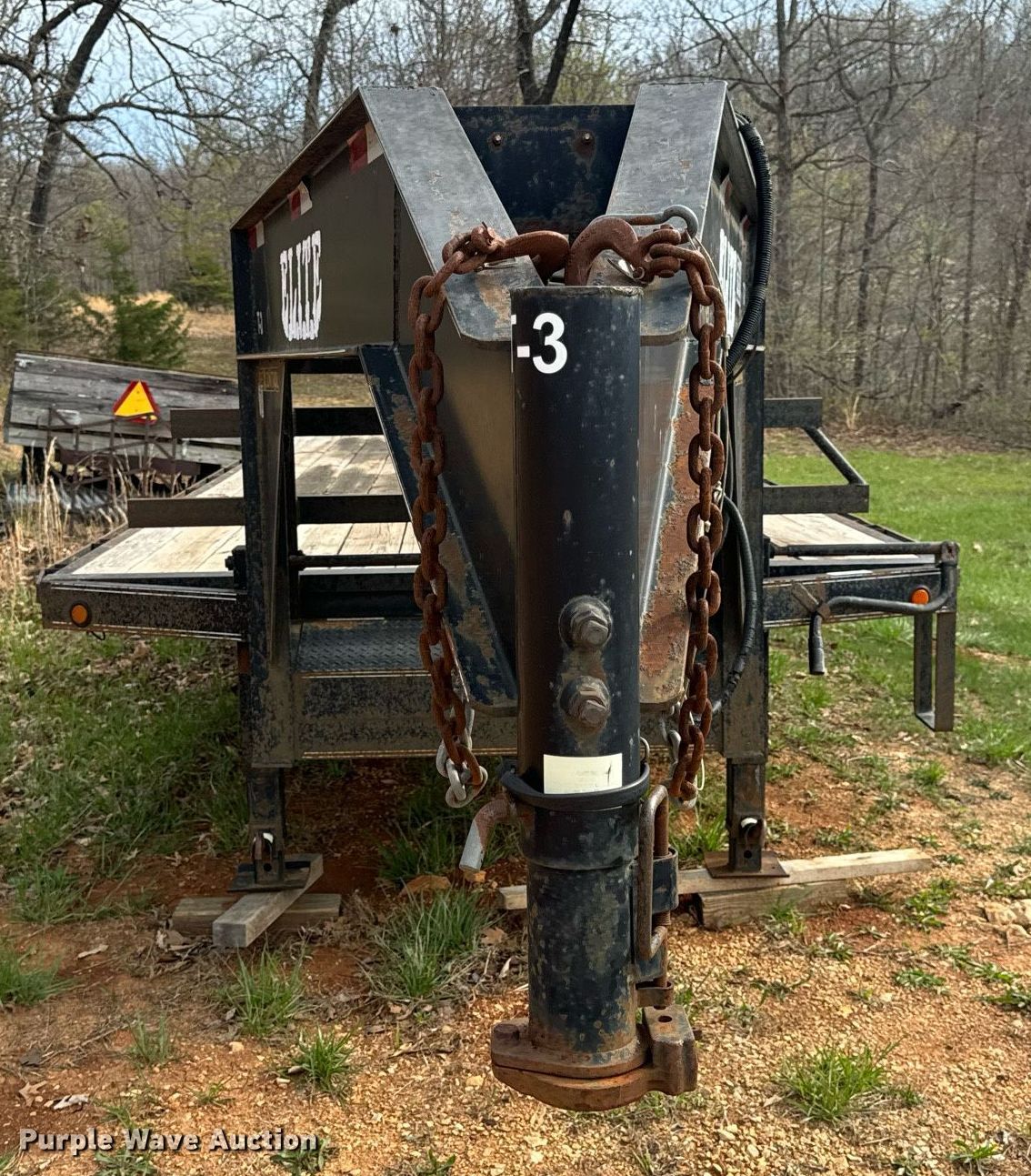 2011 Elite Trailers flatbed trailer. VIN: 1E9BF2527BS230865. Dimensions Overall: 34' 8" L x 101" W, Deck: 24' 11" L x 97" W. Features Deck type: Wood. Chassis Hitch: Gooseneck, Landing gear: Dual, Suspension: Spring, Brakes: Electric, Axles: Tandem, GVWR: 25,900 lbs, GAWR: 12,000 lbs. Tires Steel wheels, Size: ST235/85R16. Missouri title. Title distribution may be delayed up to 14 days from verification of funds. Camdenton, MO 65020