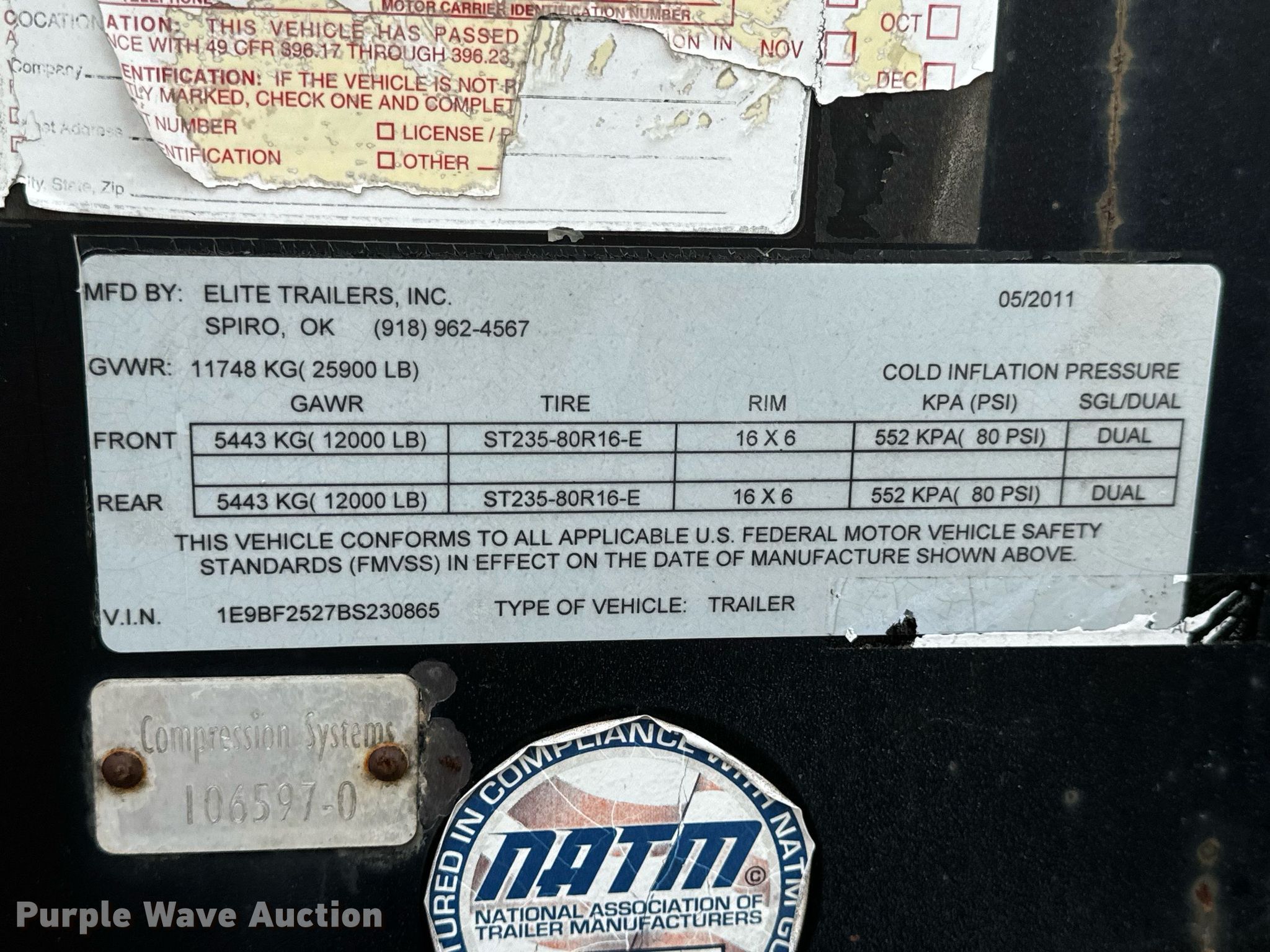 Purple Wave is selling a used Equip. Trailer in Missouri. This item is a 2011 Elite Trailers flatbed trailer with the following: VIN: 1E9BF2527BS230865