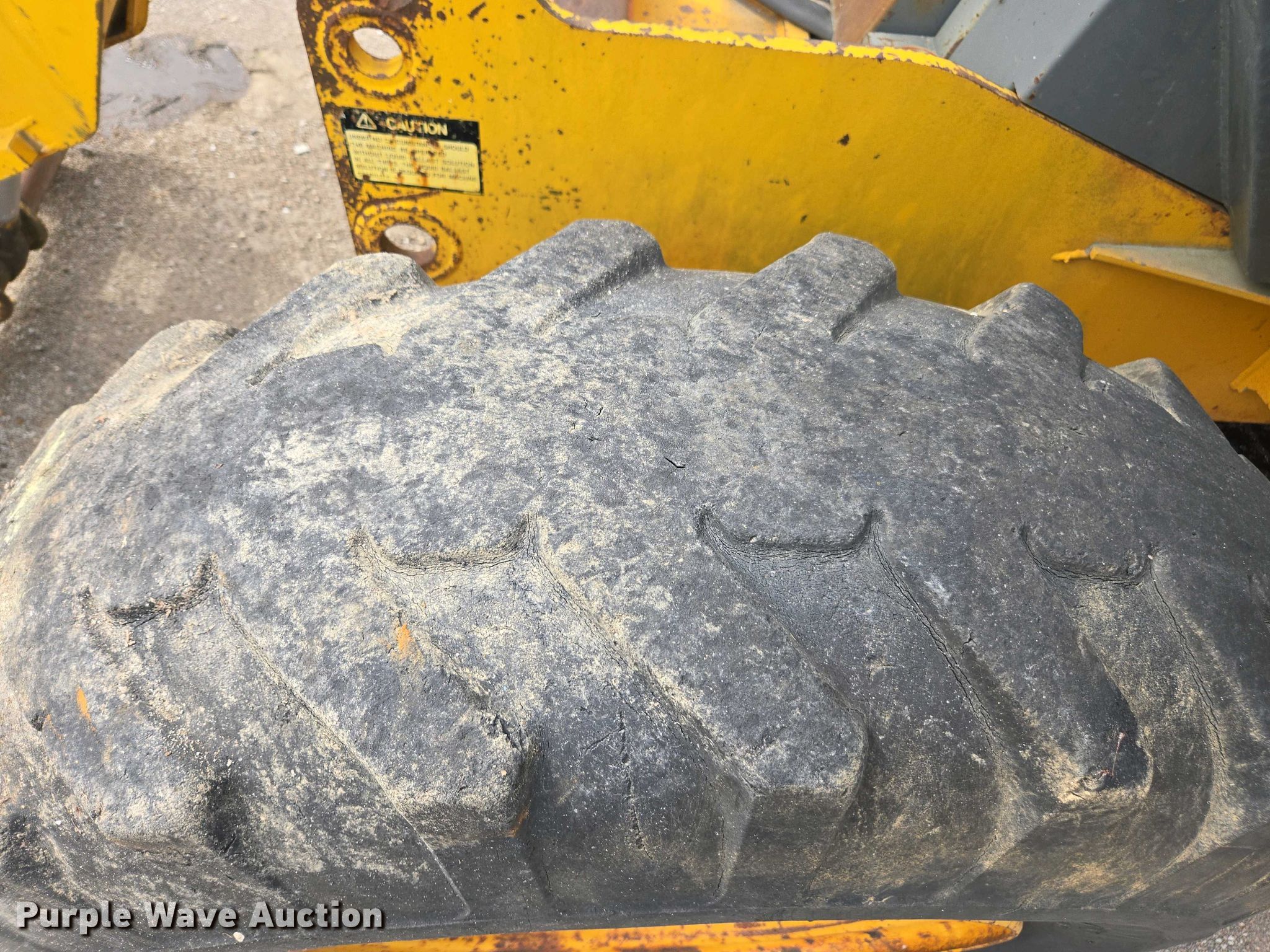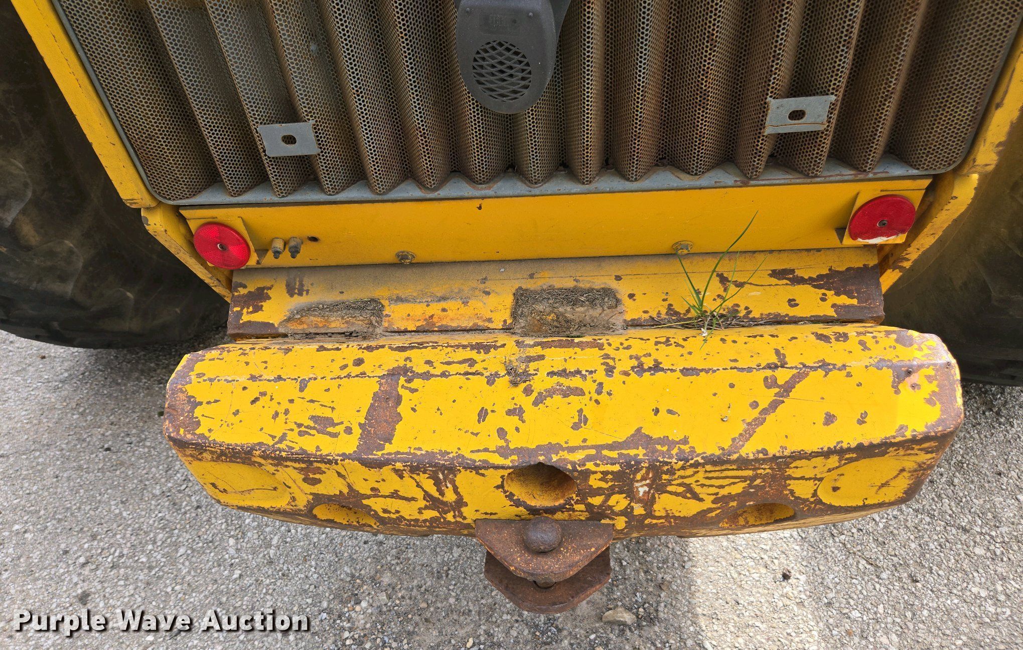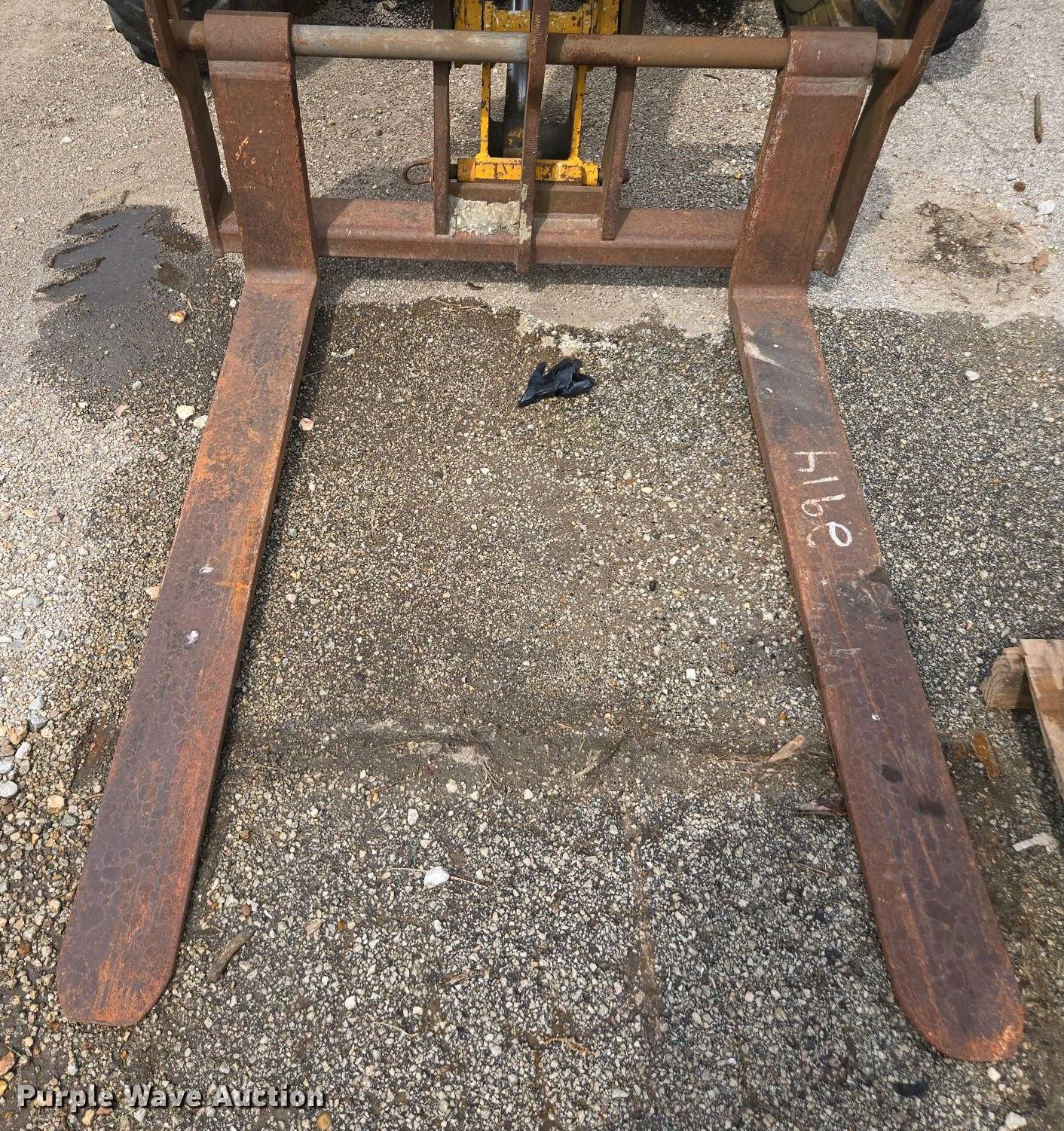 1994 JCB 506B telehandler. Hours: 6,142 on meter, Serial: USA506B0RE0572498. Engine Perkins, Cylinders: 4, Fuel type: Diesel. Transmission Shuttle shift, 3F - 3R, Four wheel drive. Operators station Canopy, Steering: Crab, Four wheel. Features Maximum lift capacity: 6,000 lbs, Maximum lift height: 36', Boom stages: 3, Fork length: 60", Auxiliary hydraulics, Hydraulic leveling, Quick attach: Manual. Tires Size: 15.5-25. Notes Hydraulic issues, leaks. Jerry's Oil Company. Denmark, TN 38305