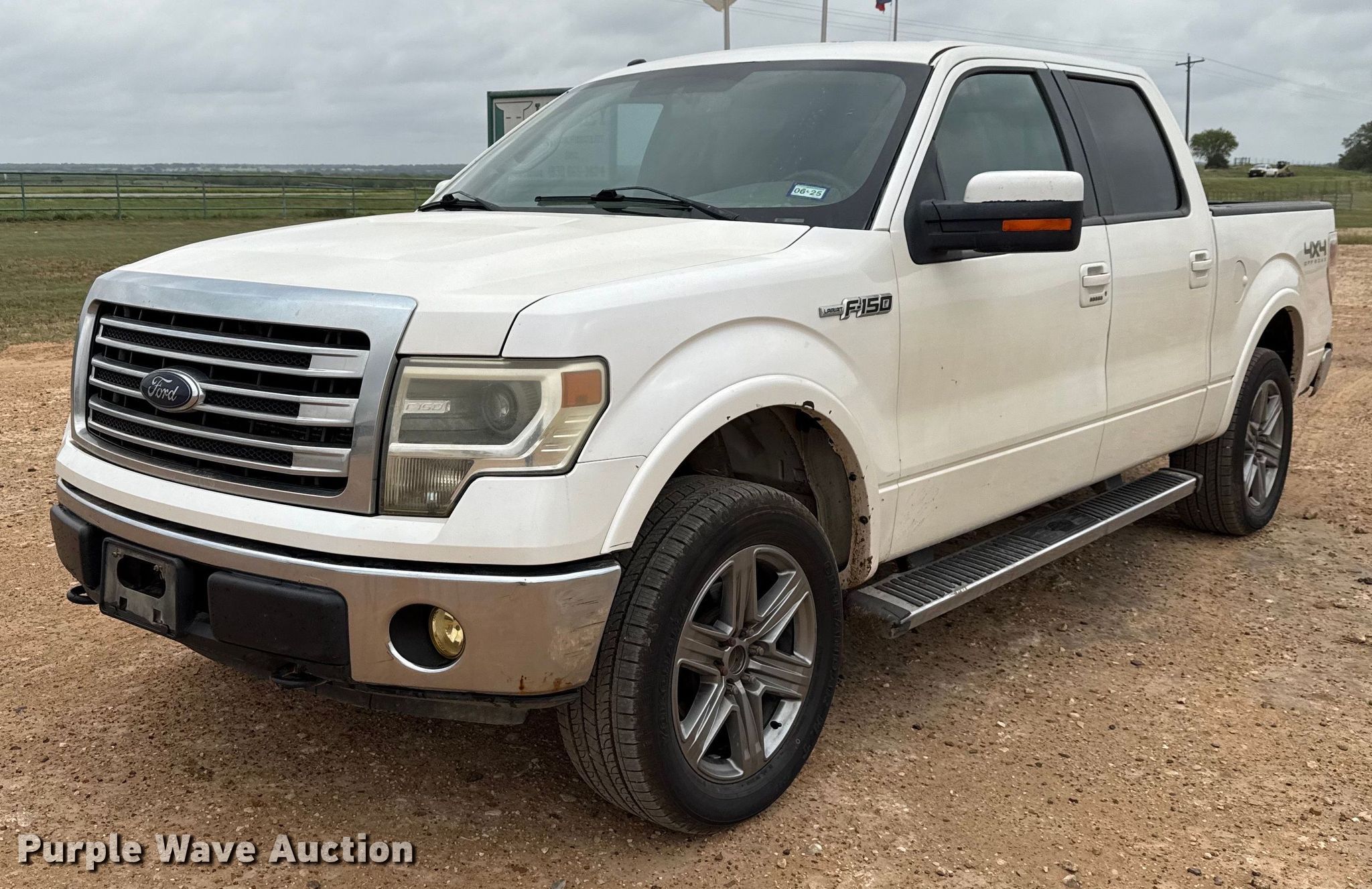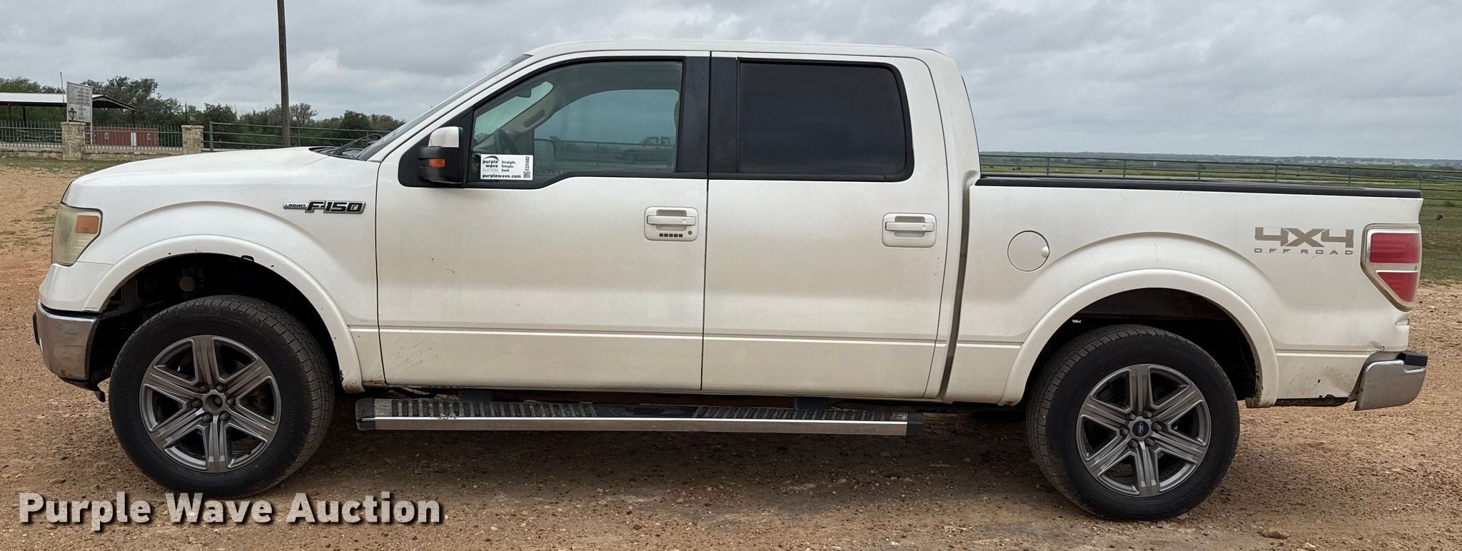 2013 Ford F150 Lariat SuperCrew pickup truck. Miles: 187,169 on odometer, VIN: 1FTFW1EF0DKF18874. Engine Displacement: 5.0L V8, Cylinders: 8, Fuel type: Gas. Transmission Automatic, Four wheel drive. Interior AC, Heat, Seat: Heated, Cooled, Power driver, Power passenger, Power windows, Power locks, Cruise control, Backup camera, Powered sunroof. Tires Size: 275/55R20. Notes Dash warning indicator: Check engine, TPMS, Windshield chipped or cracked, Non-operational power rear window. Texas title. Title distribution may be delayed up to 30 days from verification of funds. Luckey Custom Feedlot, Inc.. Bigfoot, TX 78005