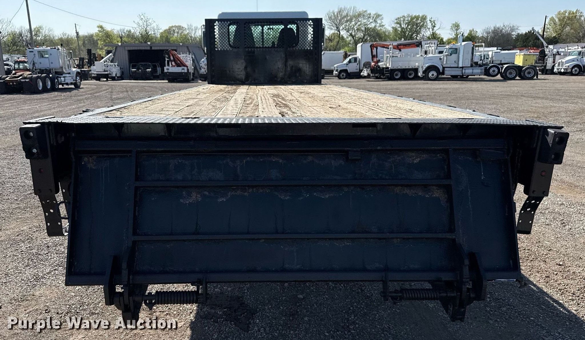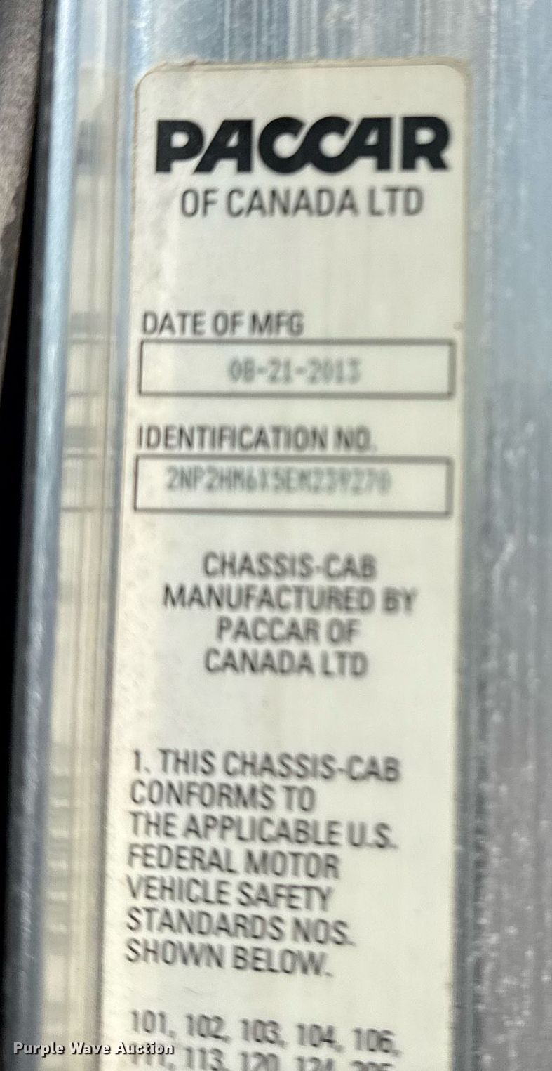 2014 Peterbilt 337 flatbed truck. Miles: 216,822 on odometer, Hours: 9,637 on meter, VIN: 2NP2HM6X5EM239270. Engine Paccar ISB6.7, Serial: 73569790, Displacement: 6.7L, Cylinders: 6, Fuel type: Diesel. Transmission Automatic. Chassis Axles: Single, Suspension: Spring, Brakes: Hydraulic, GVWR: 26,000 lbs. Interior AC, Heat, Heated mirrors, Power windows, Power locks, Cruise control. Features Flatbed Knapheide PHHJ-243B, Serial: 20131028-0323840, 24' 6" L x 90" W, End gate lift Waltco. Tires Front: 295/75R22.5, Rear: 11R22.5. Notes Dash warning indicator: ABS, Windshield chipped or cracked. Oklahoma title. Seller is an Oklahoma licensed motor vehicle dealer. Title will be assigned and distributed by the dealer. Please contact the seller for distribution questions. Title distribution may be delayed up to 30 days from verification of funds. 15107 North 137th East Avenue. Collinsville, OK 74021