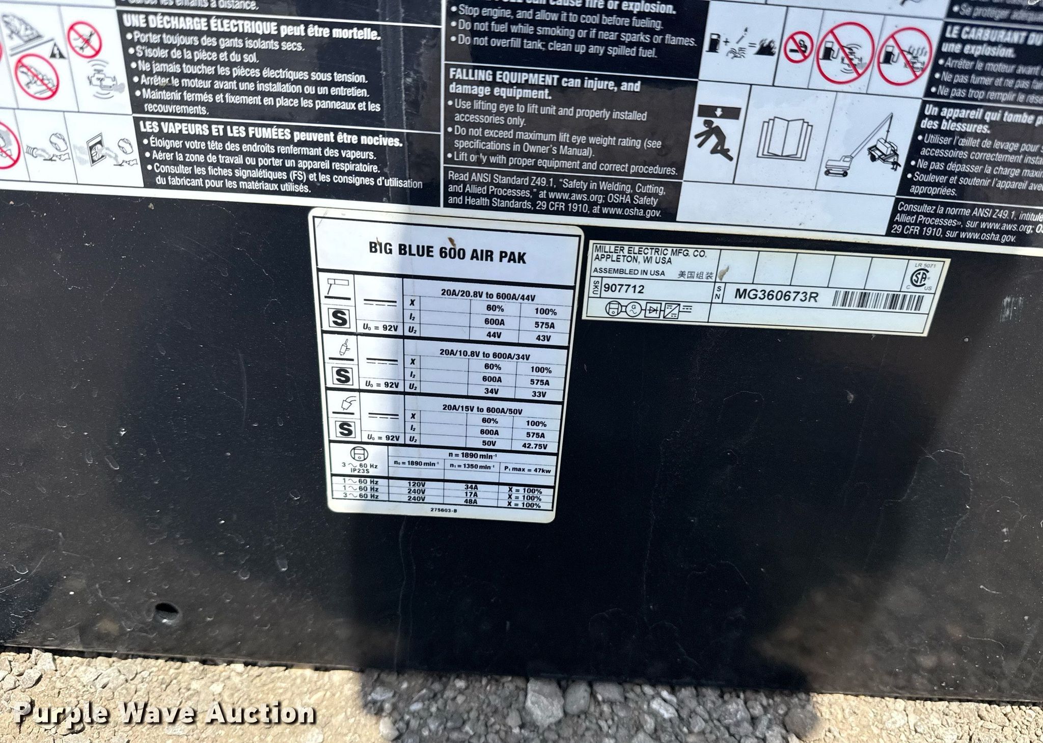 Purple Wave is selling a used Welder (Manual) in Oklahoma. This item is a 2016 Miller Big Blue 600 Air PaK welder/generator with the following: Hours: Unknown, Serial: MG360673R