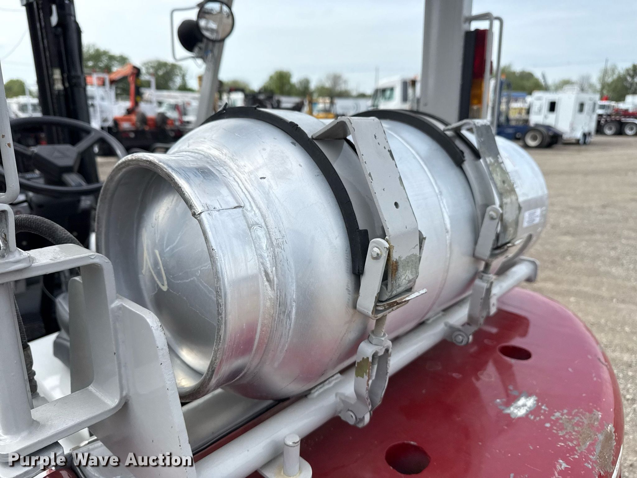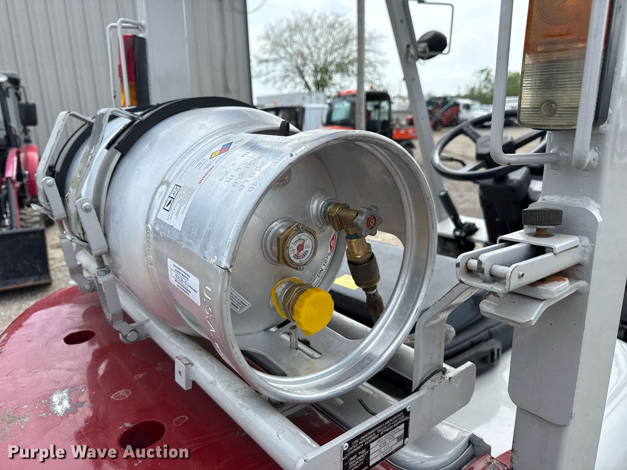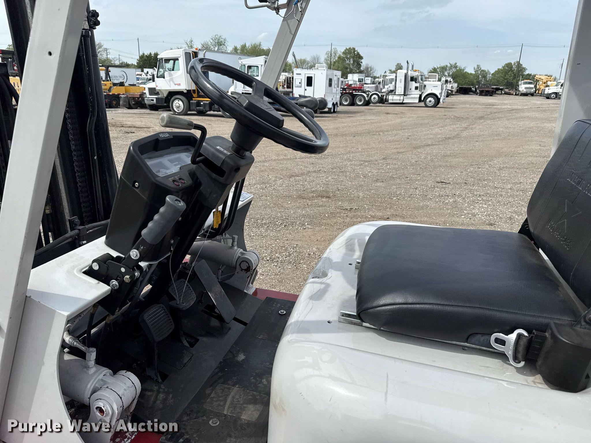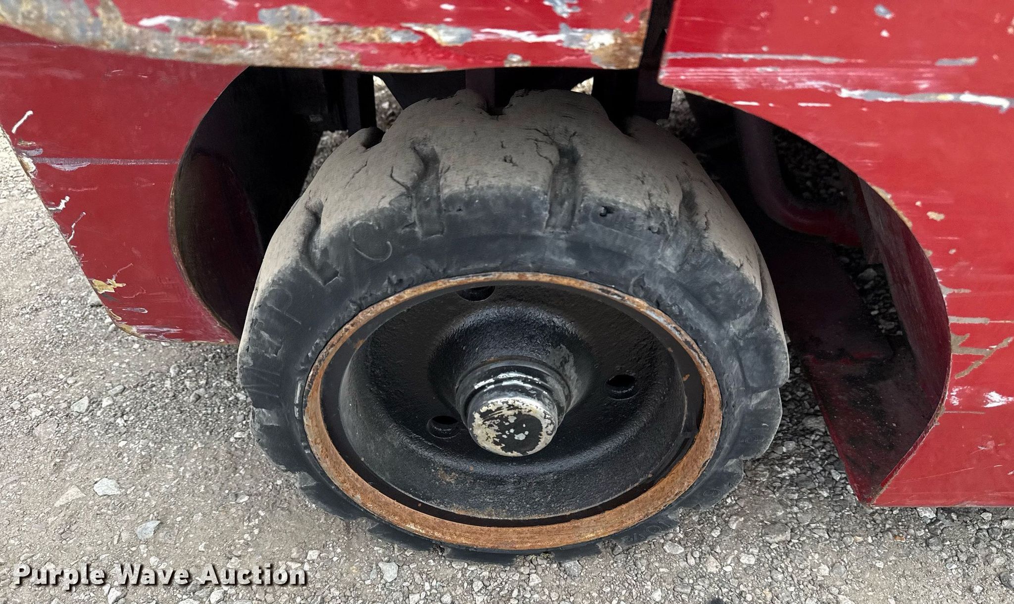 Halla LF25C forklift. Hours: 2,481 on meter, Serial: 147LK. Engine Cylinders: 4, Fuel type: LPG LP bottle: Included. Transmission Powershift, 1F - 1R. Operators station Canopy. Features Maximum lift capacity: 4,400 lbs, Maximum lift height: 185", Side shift, Mast tilt, Fork length: 42". Tires Front: 21x7x15, Rear: 16x6, Solid. 15107 North 137th East Avenue. Collinsville, OK 74021