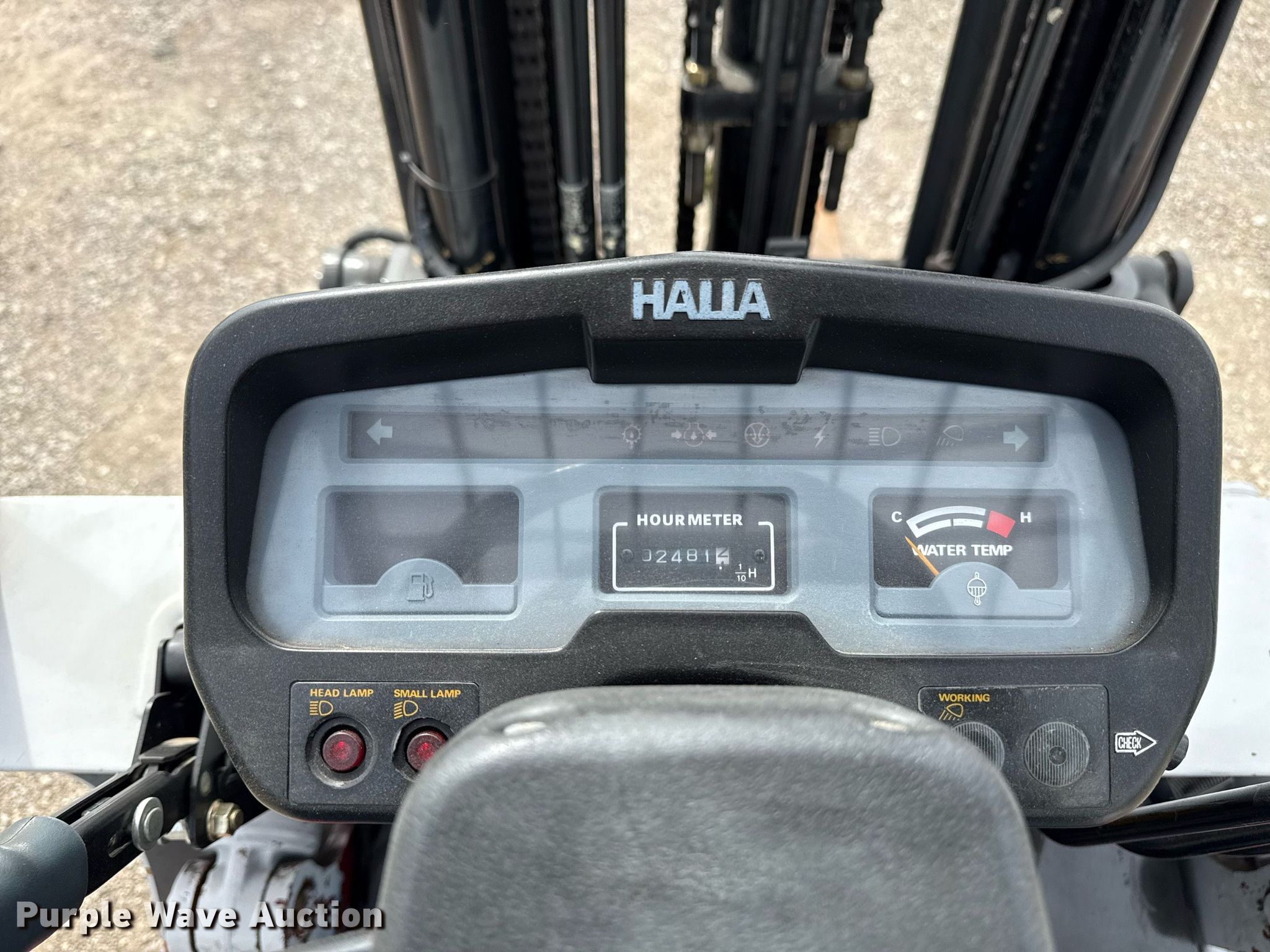Purple Wave is selling a used Warehouse Forklift in Oklahoma. This item is a Halla LF25C forklift with the following: Hours: 2,481 on meter, Serial: 147LK