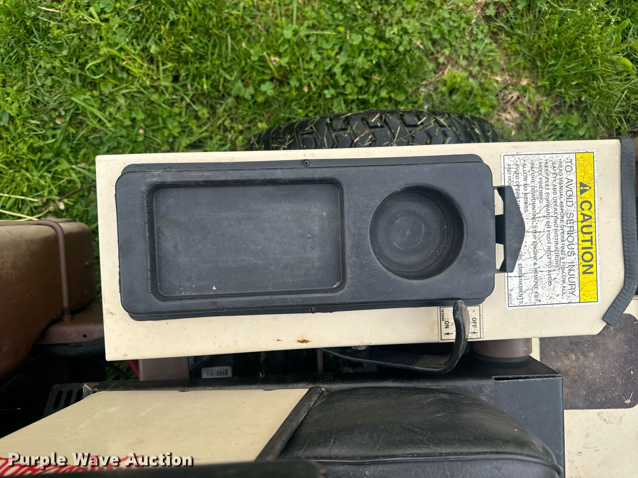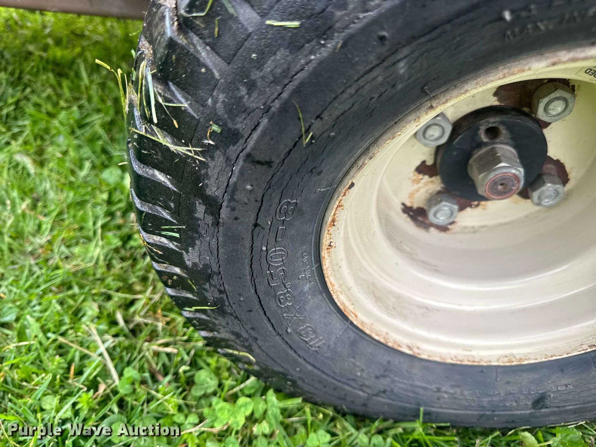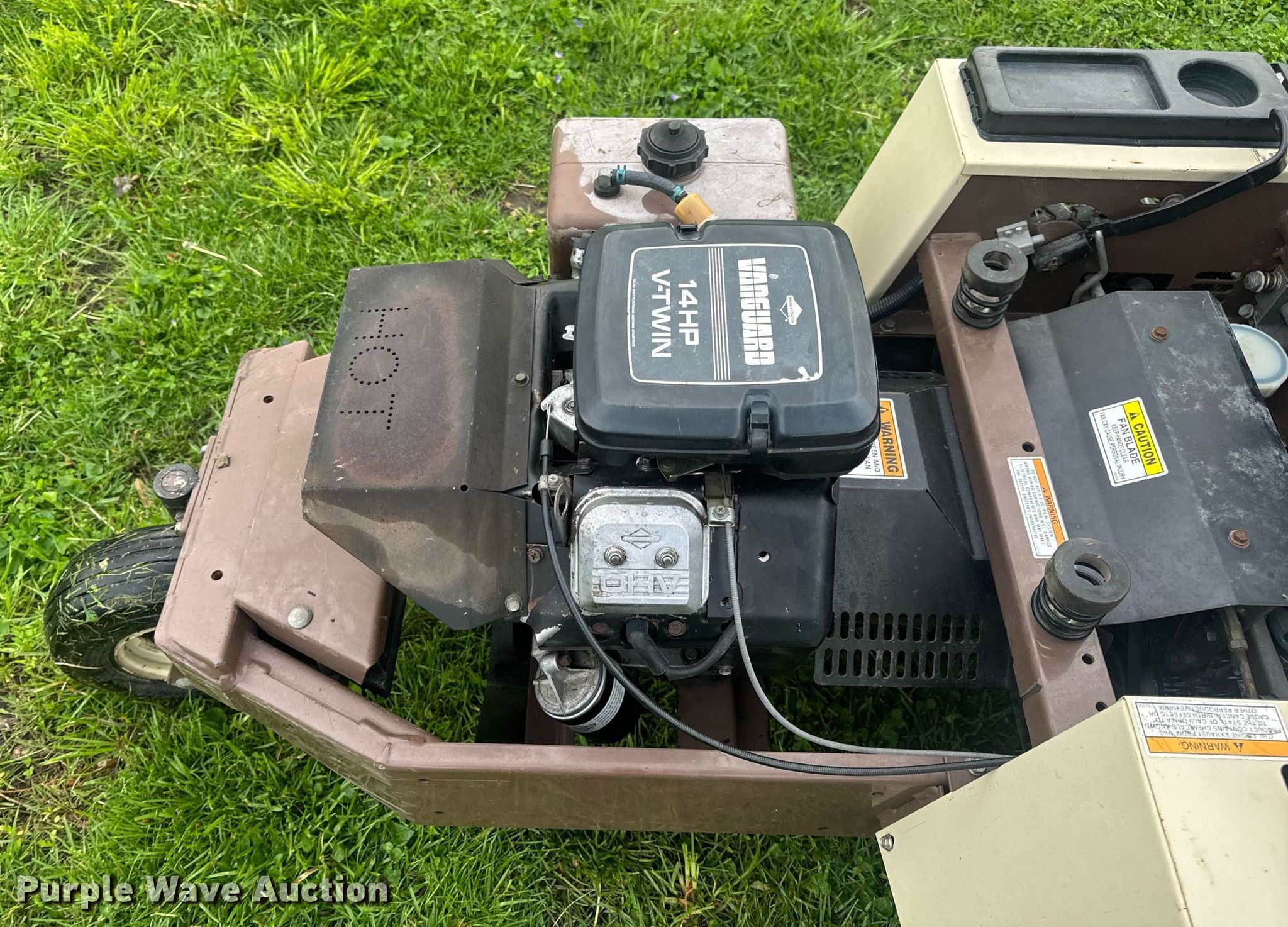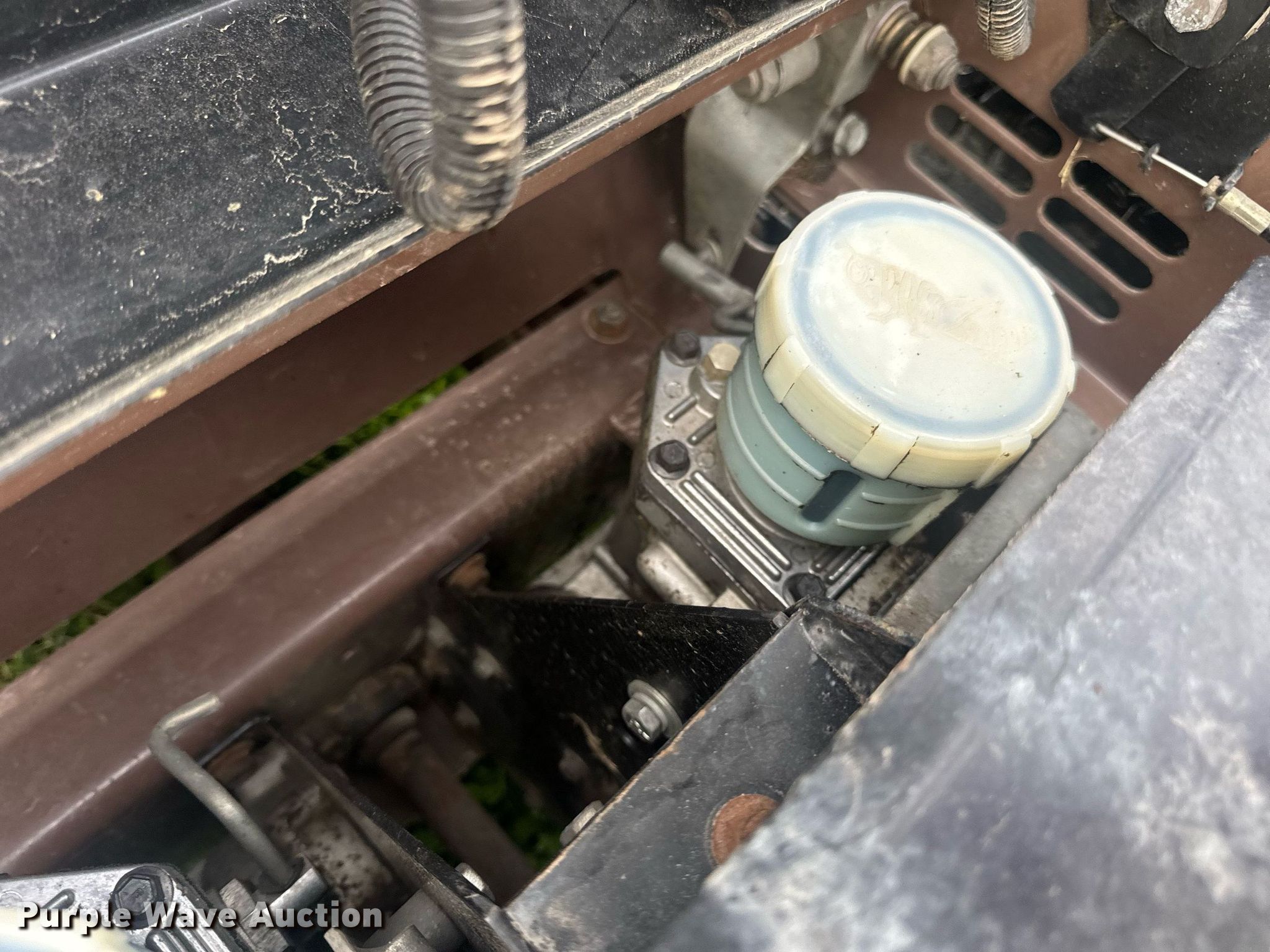 Grasshopper 614 ZTR lawn mower. Cutting width: 44", Serial: 475338. Engine Briggs & Stratton Vanguard, Cylinders: 2, Fuel type: Gas, HP: 14. Transmission Hydrostatic. Tires Front: 18x8.50-8, Rear: 13x5.00-6, Deck tires: 9x3.50-4. Notes Rust damage. Marshall, MO 65340