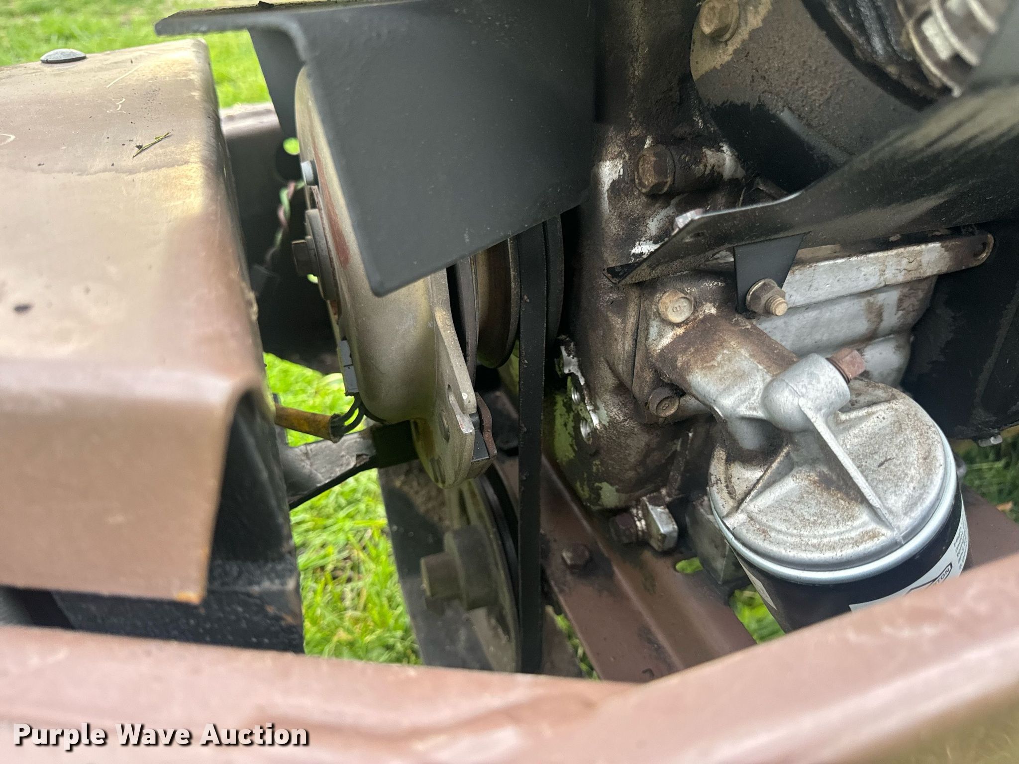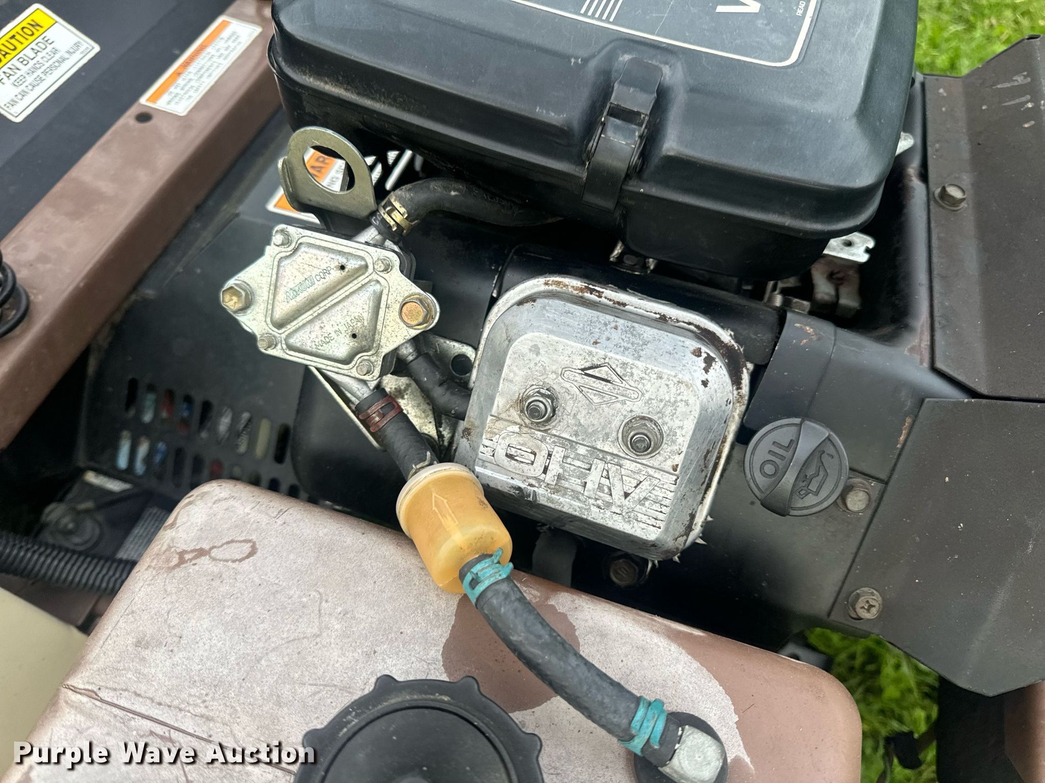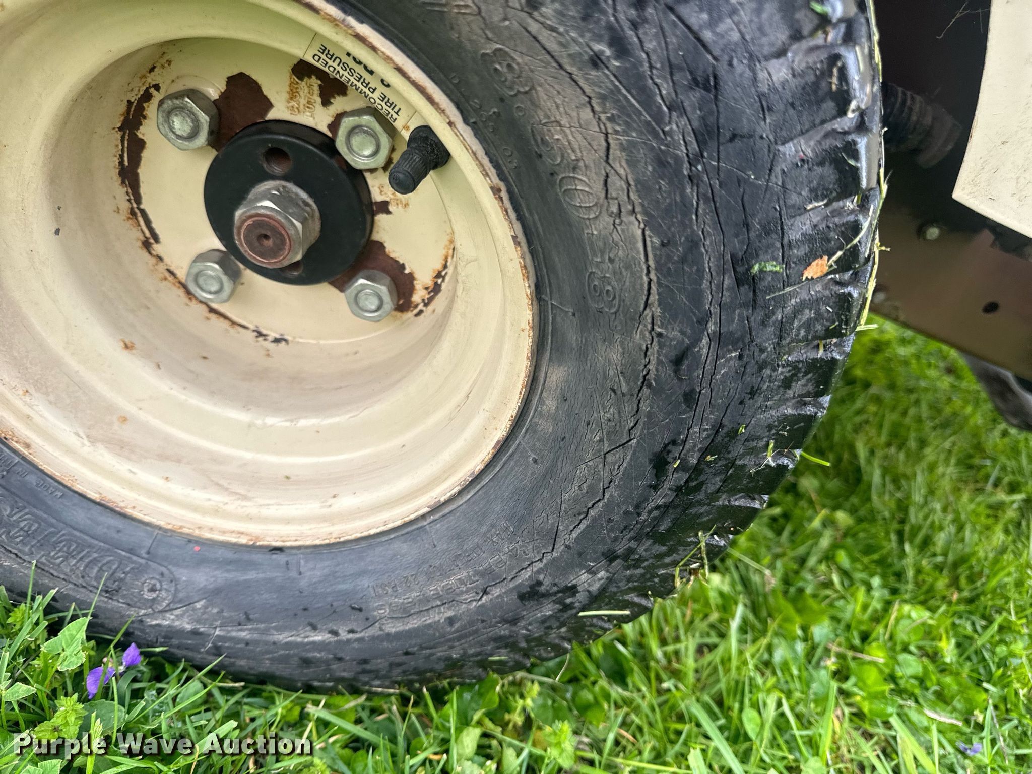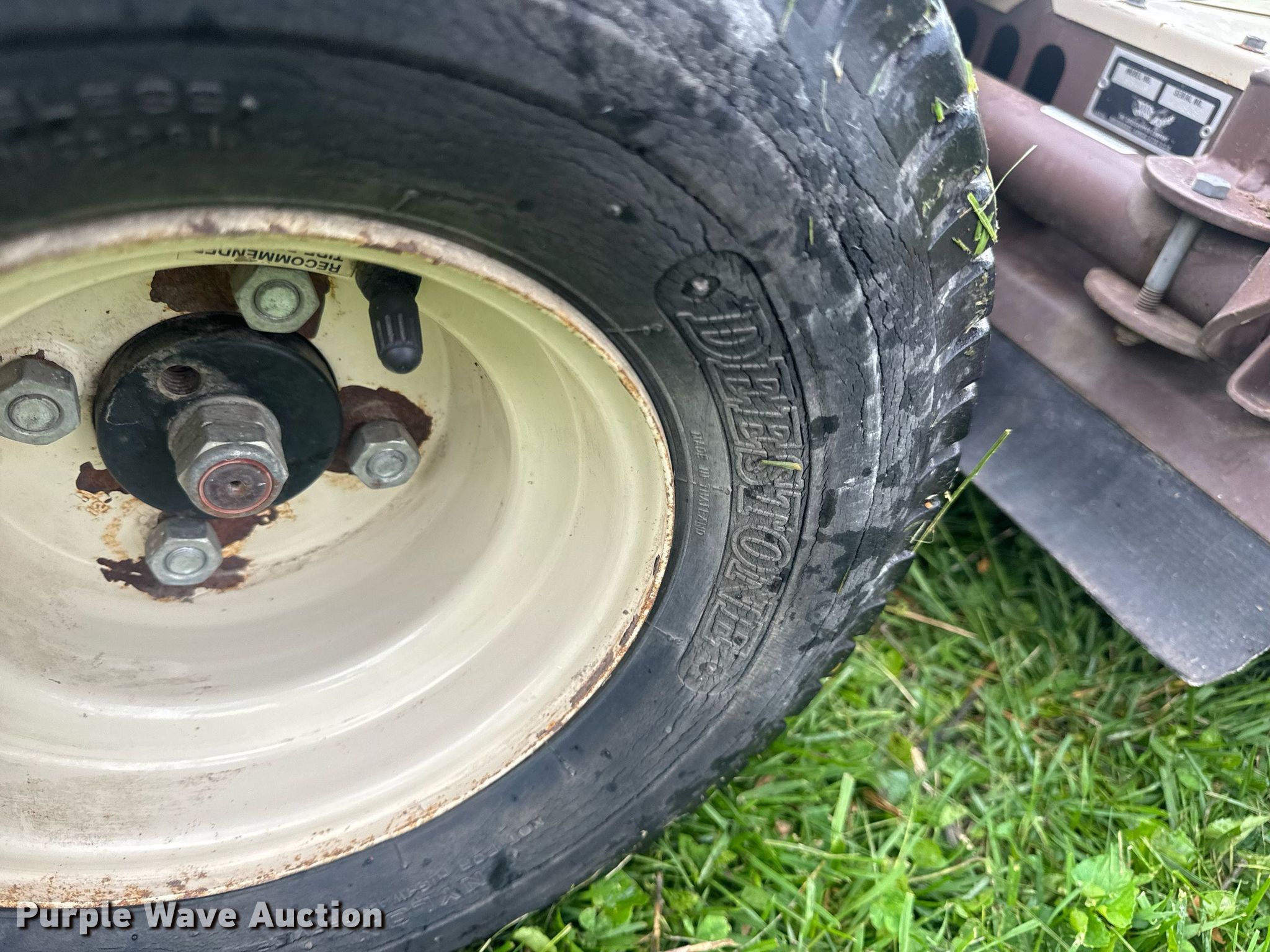 Grasshopper 614 ZTR lawn mower. Cutting width: 44", Serial: 475338. Engine Briggs & Stratton Vanguard, Cylinders: 2, Fuel type: Gas, HP: 14. Transmission Hydrostatic. Tires Front: 18x8.50-8, Rear: 13x5.00-6, Deck tires: 9x3.50-4. Notes Rust damage. Marshall, MO 65340