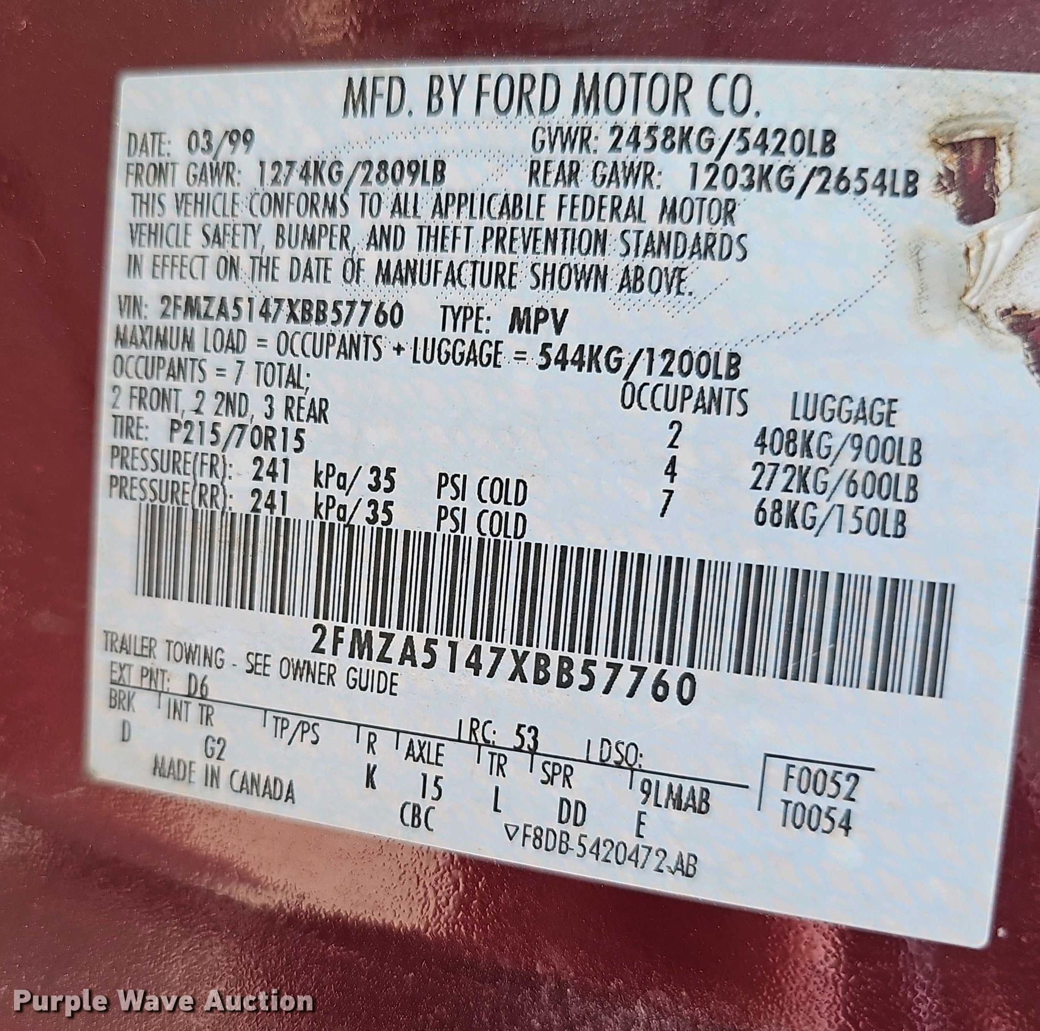- VIN: 2FMZA5147XBB57760