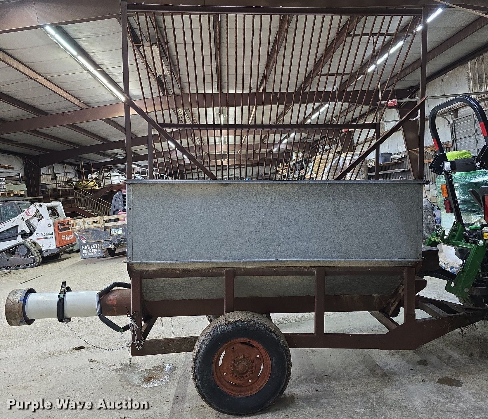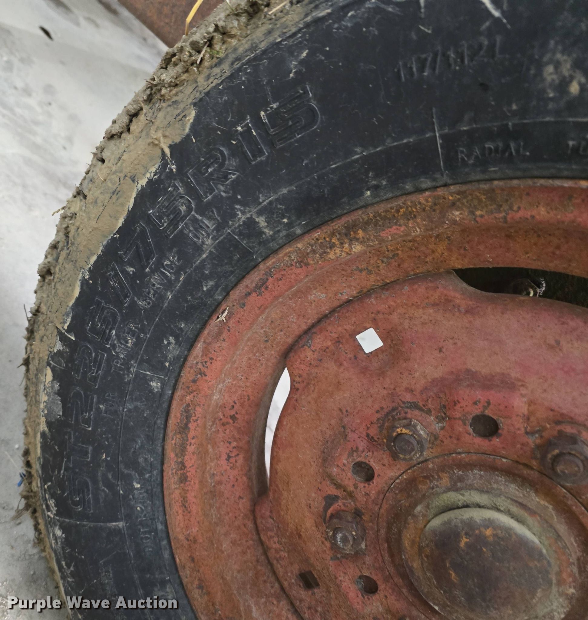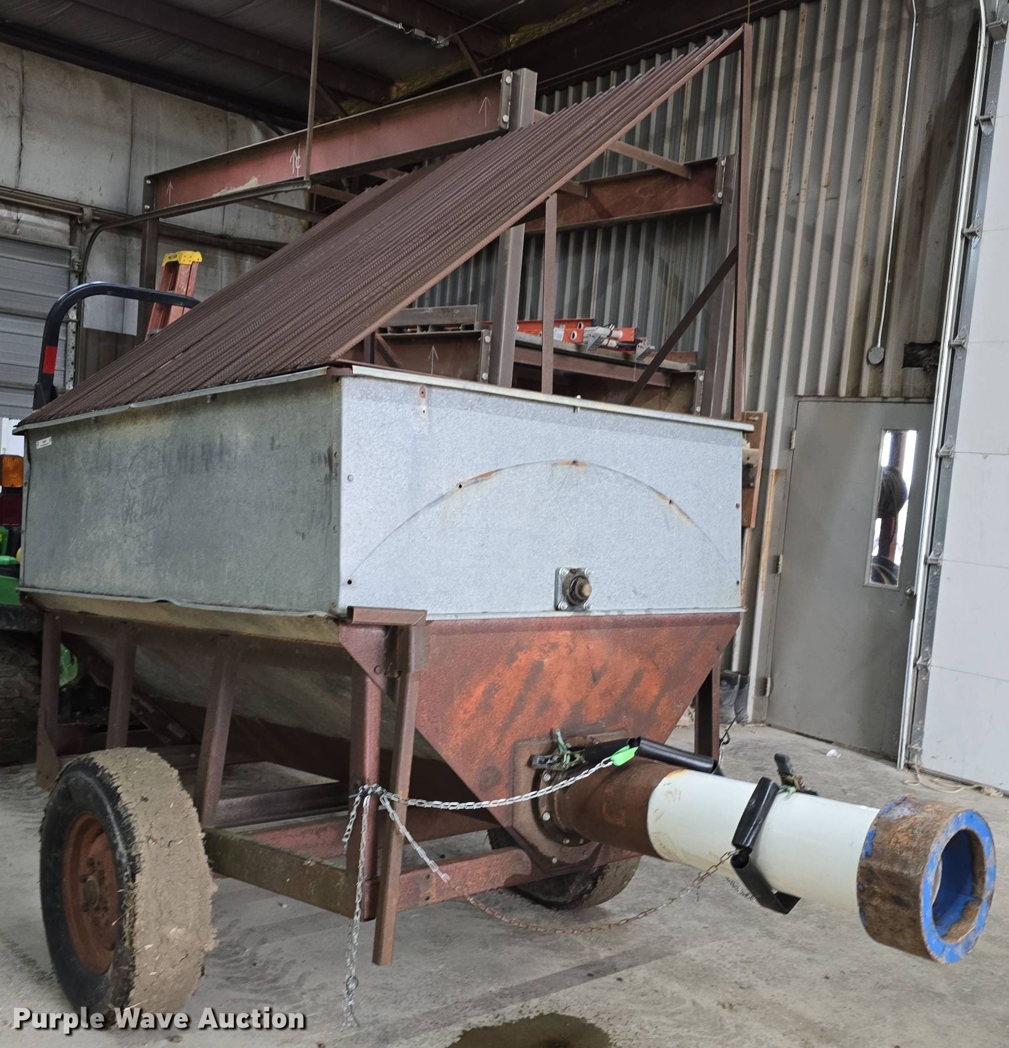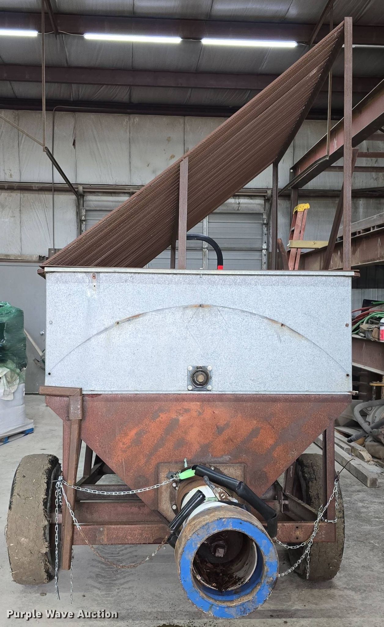 Silt sock builder. Dimensions. Overall: 13' L x 74" W, Side height: 114". Features Auger diameter: 8", Sleeve diameter: 12", Grizzly bars 75" L x 86" W, Spacing: 1 3/4", Hopper tub 84" L x 58" W x 44" H, PTO: 540. Chassis Landing gear: Single. Tires Steel wheels, Size: ST225/75R15. Notes Tractor not included, Pallet of sock sleeves included. Blue Marble Environmental. Adair, IA 50002