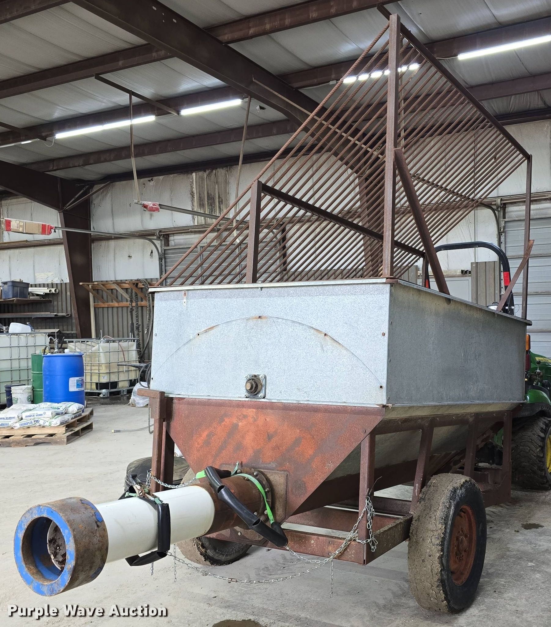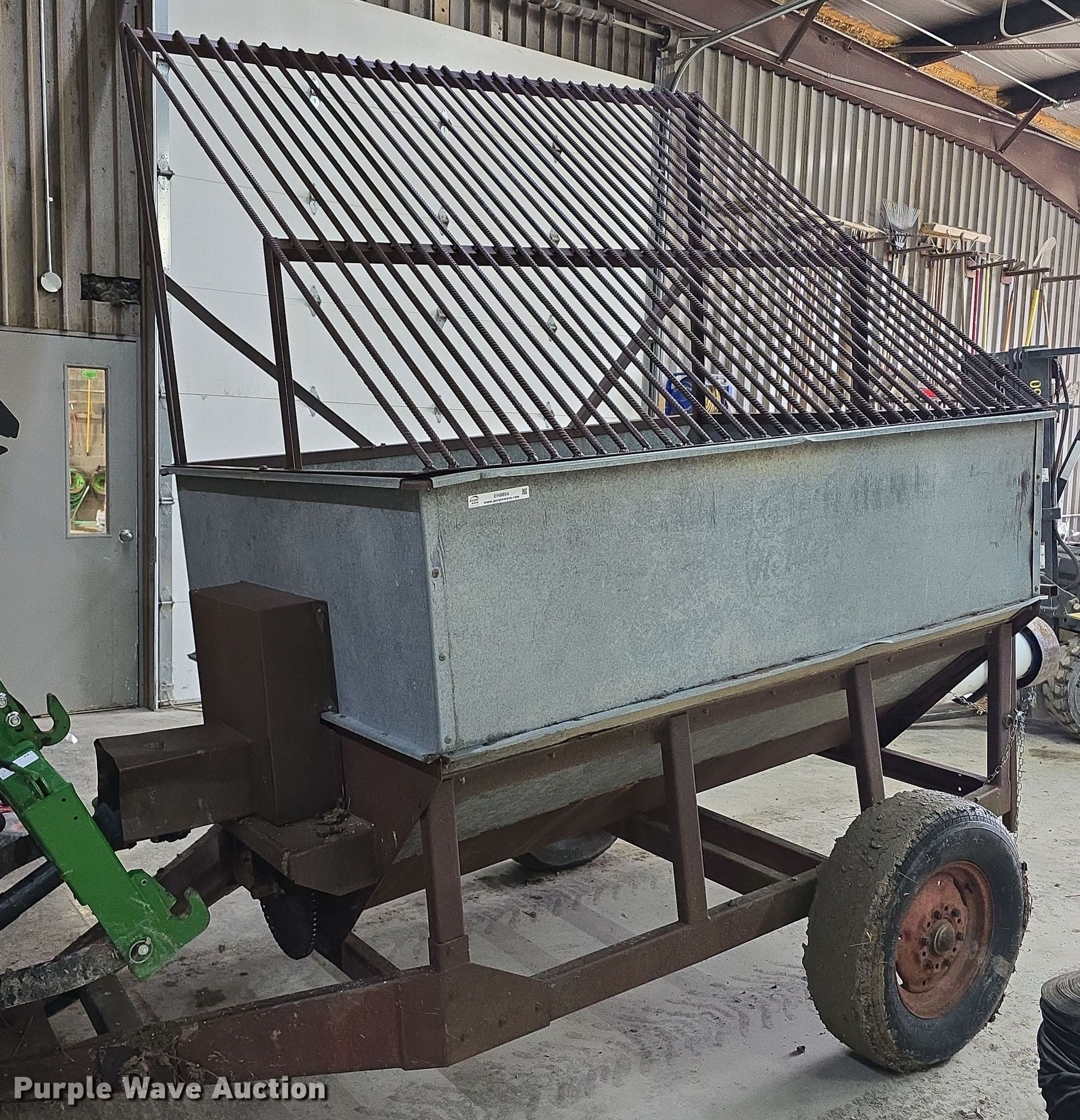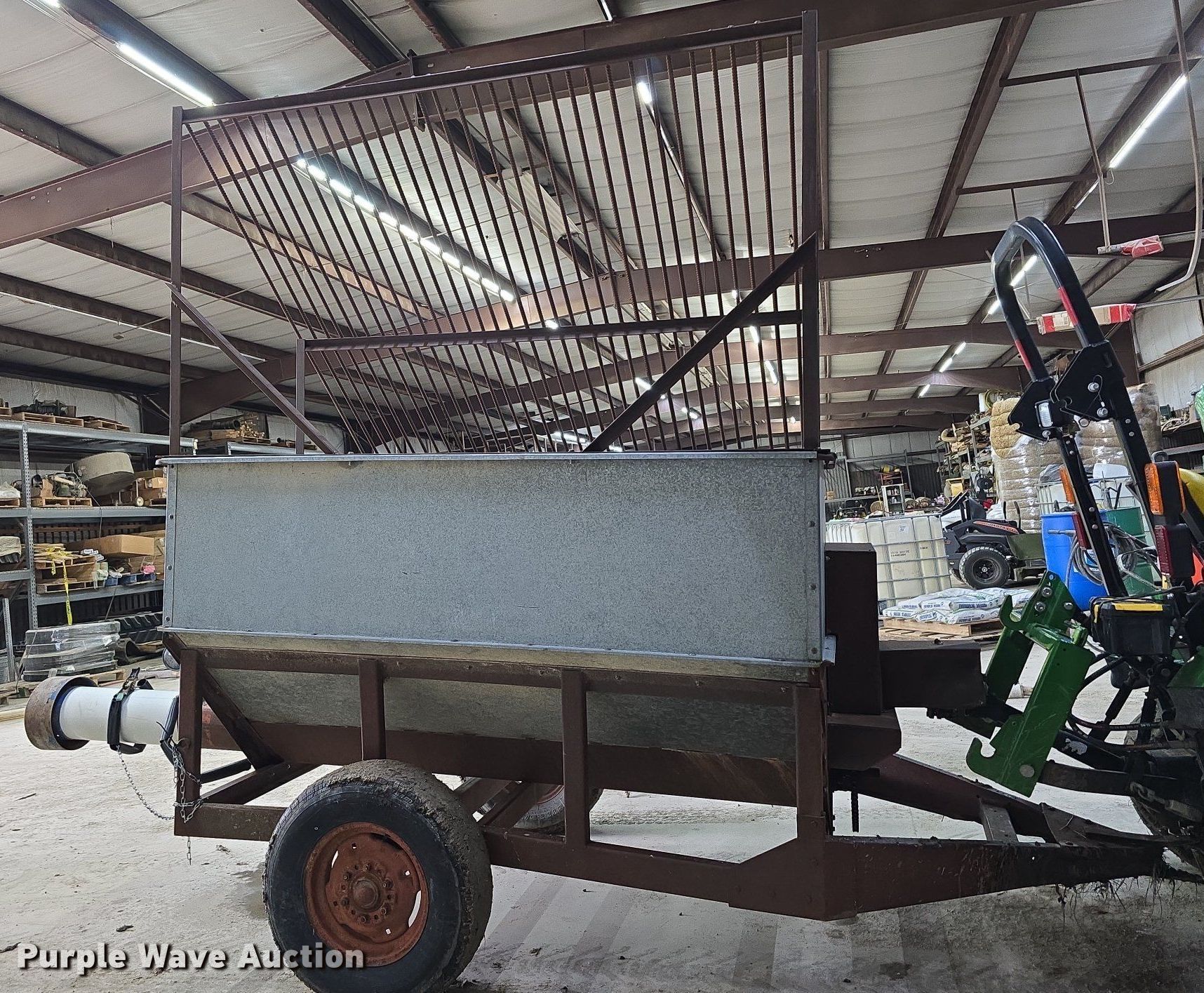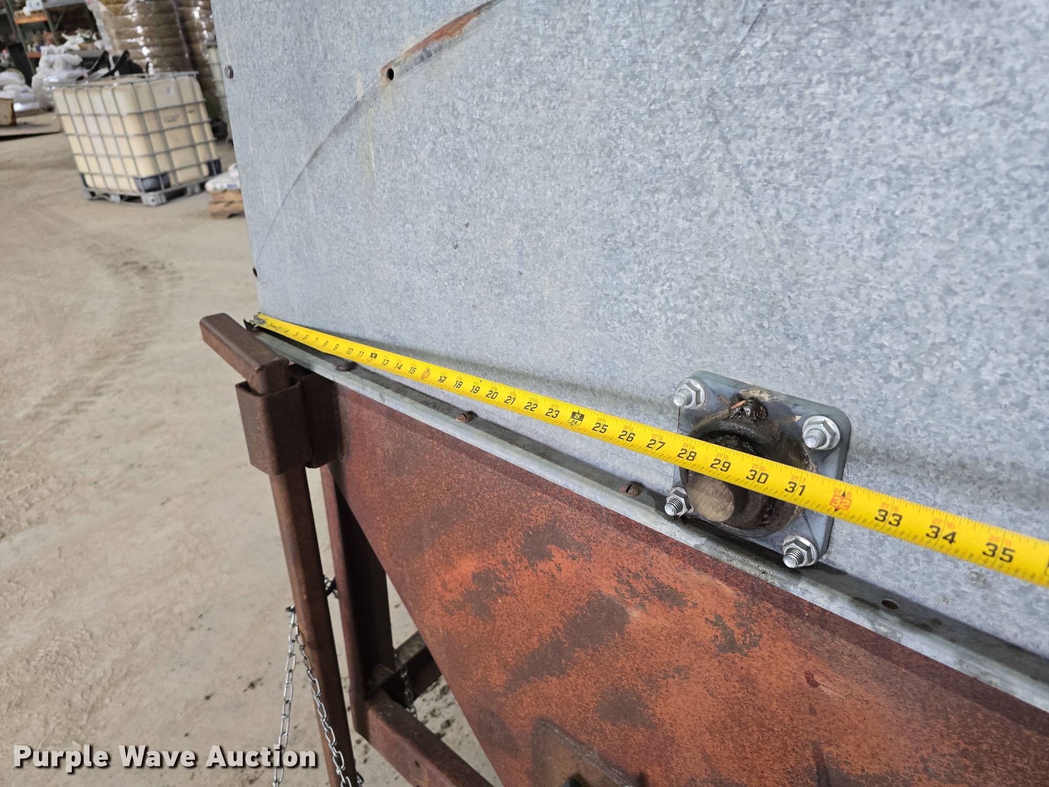 Silt sock builder. Dimensions. Overall: 13' L x 74" W, Side height: 114". Features Auger diameter: 8", Sleeve diameter: 12", Grizzly bars 75" L x 86" W, Spacing: 1 3/4", Hopper tub 84" L x 58" W x 44" H, PTO: 540. Chassis Landing gear: Single. Tires Steel wheels, Size: ST225/75R15. Notes Tractor not included, Pallet of sock sleeves included. Blue Marble Environmental. Adair, IA 50002