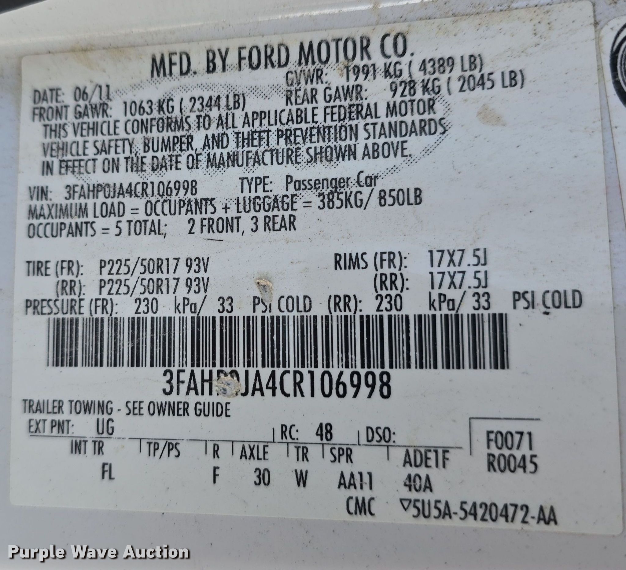 Purple Wave is selling a used Passenger Vehicle in Nebraska. This item is a 2012 Ford Fusion SEL with the following: Miles: 91,617 on odometer, VIN: 3FAHP0JA4CR106998