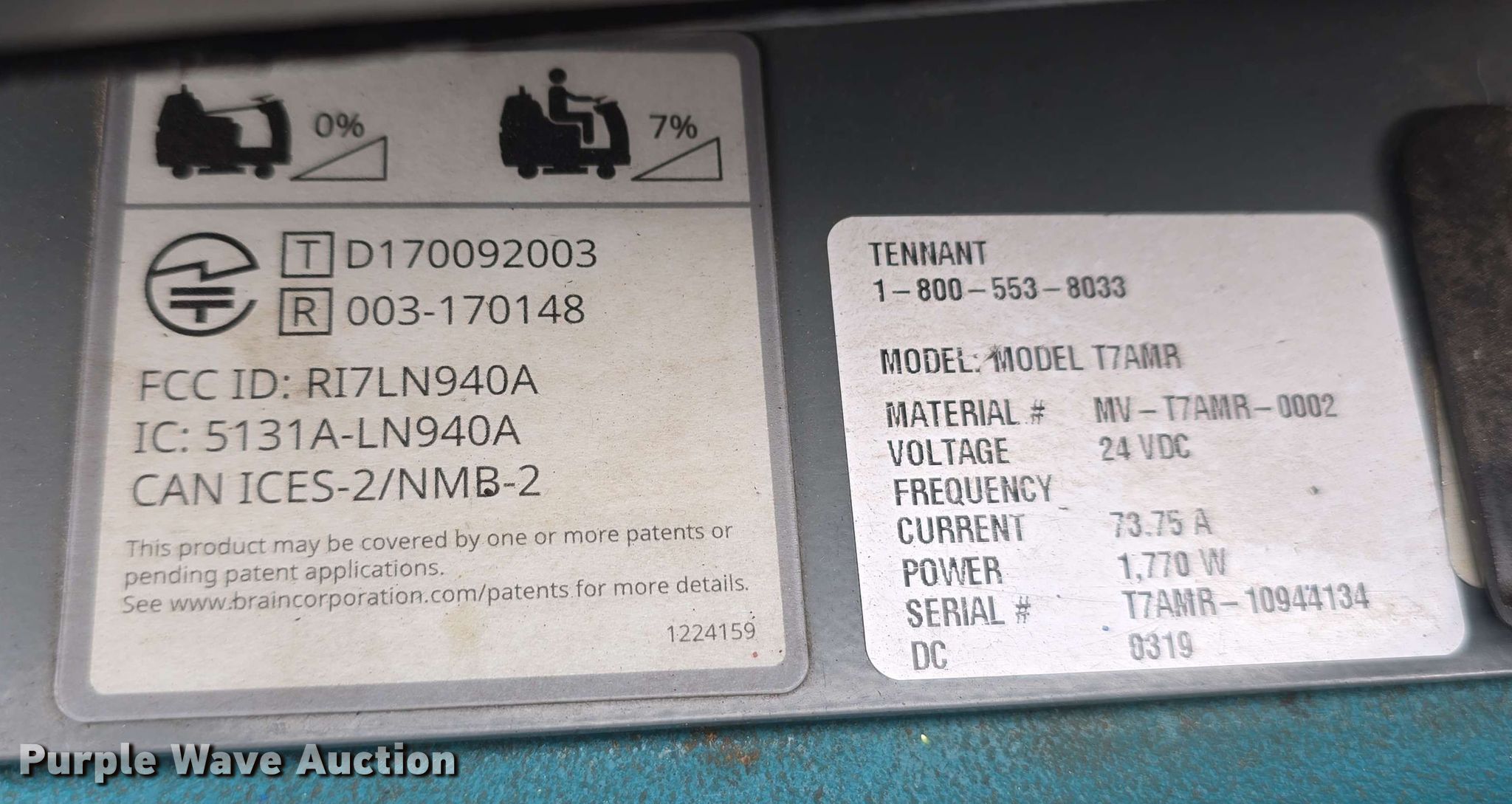 Purple Wave is selling a used All Other Household Items in Nebraska. This item is a 2019 Tennant T7AMR floor scrubber with the following: Hours: 2,738 on meter, Serial: T7AMR-10944134