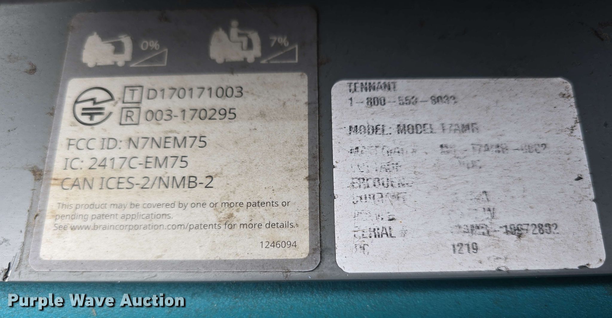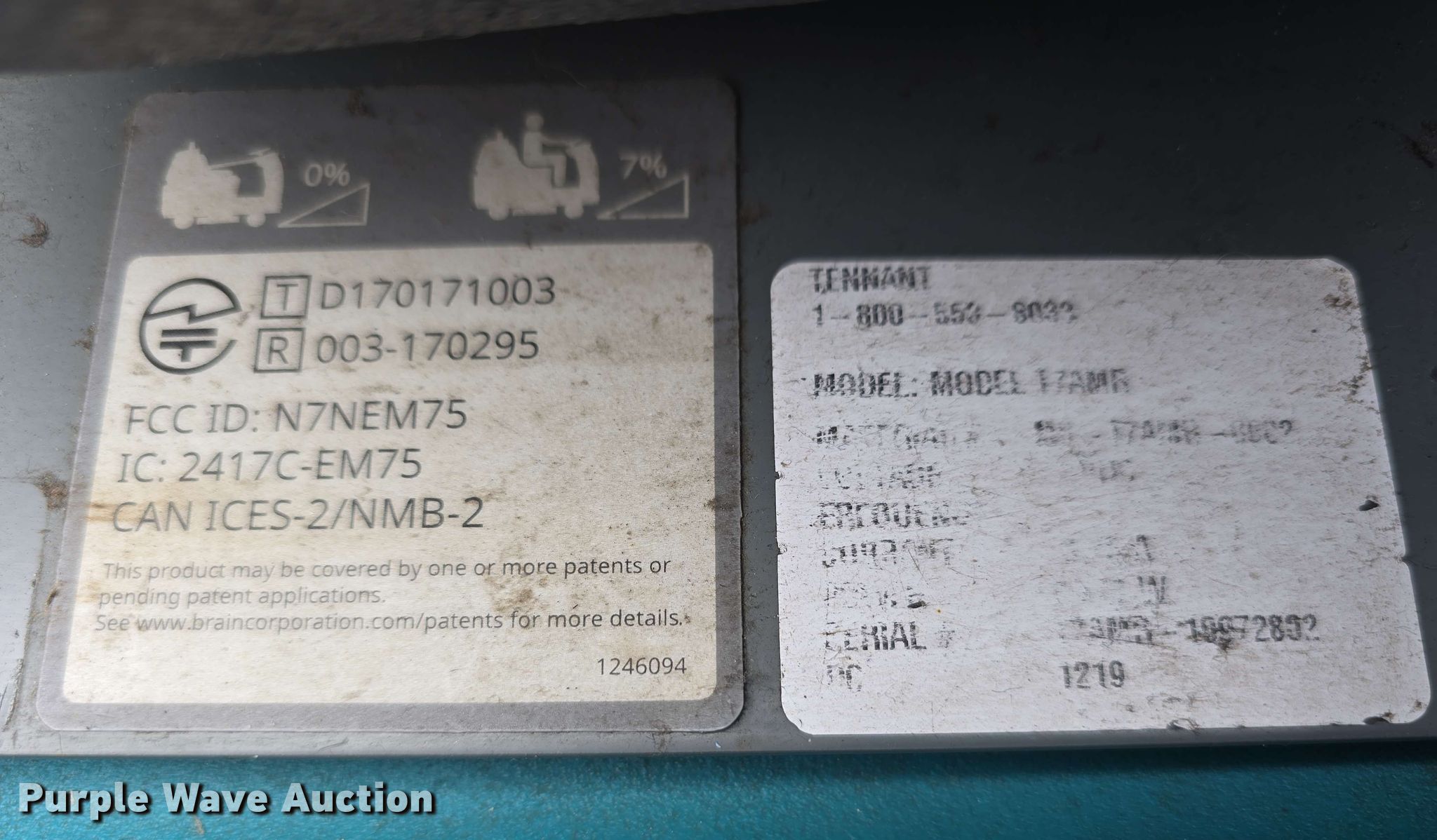 Purple Wave is selling a used All Other Household Items in Nebraska. This item is a 2019 Tennant T7AMR floor scrubber with the following: Hours: 5,135 on meter, Serial: T7AMR-10972802