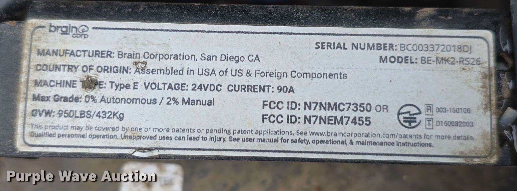 Purple Wave is selling a used All Other Household Items in Nebraska. This item is a ICE BE-MK2-RS26 floor scrubber with the following: Serial: 337