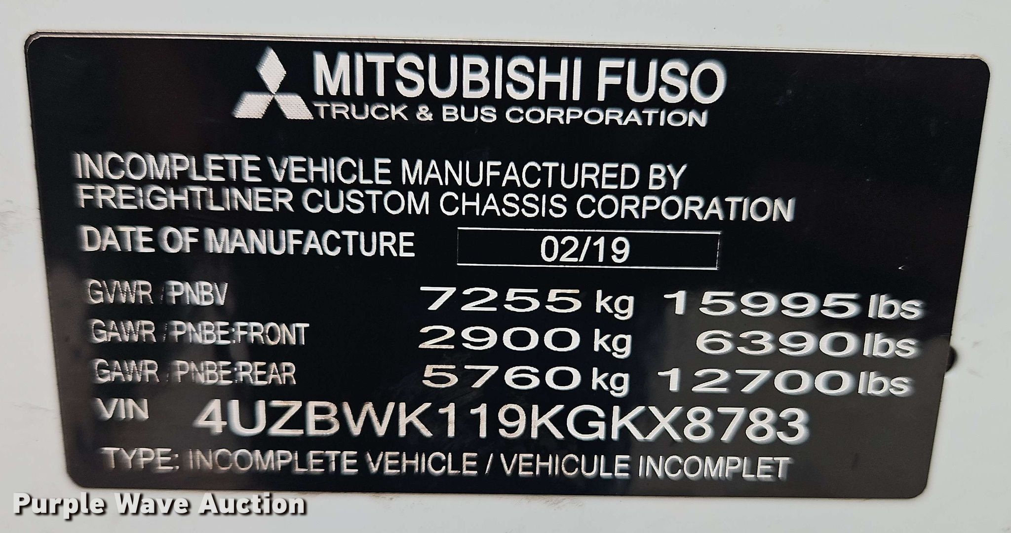 Purple Wave is selling a used Flat Bed Truck in Kansas. This item is a 2019 Mitsubishi Fuso FE160 Crew Cab flatbed truck with the following: Miles: 36,166 on odometer, VIN: 4UZBWK119KGKX8783, Unit #: 42