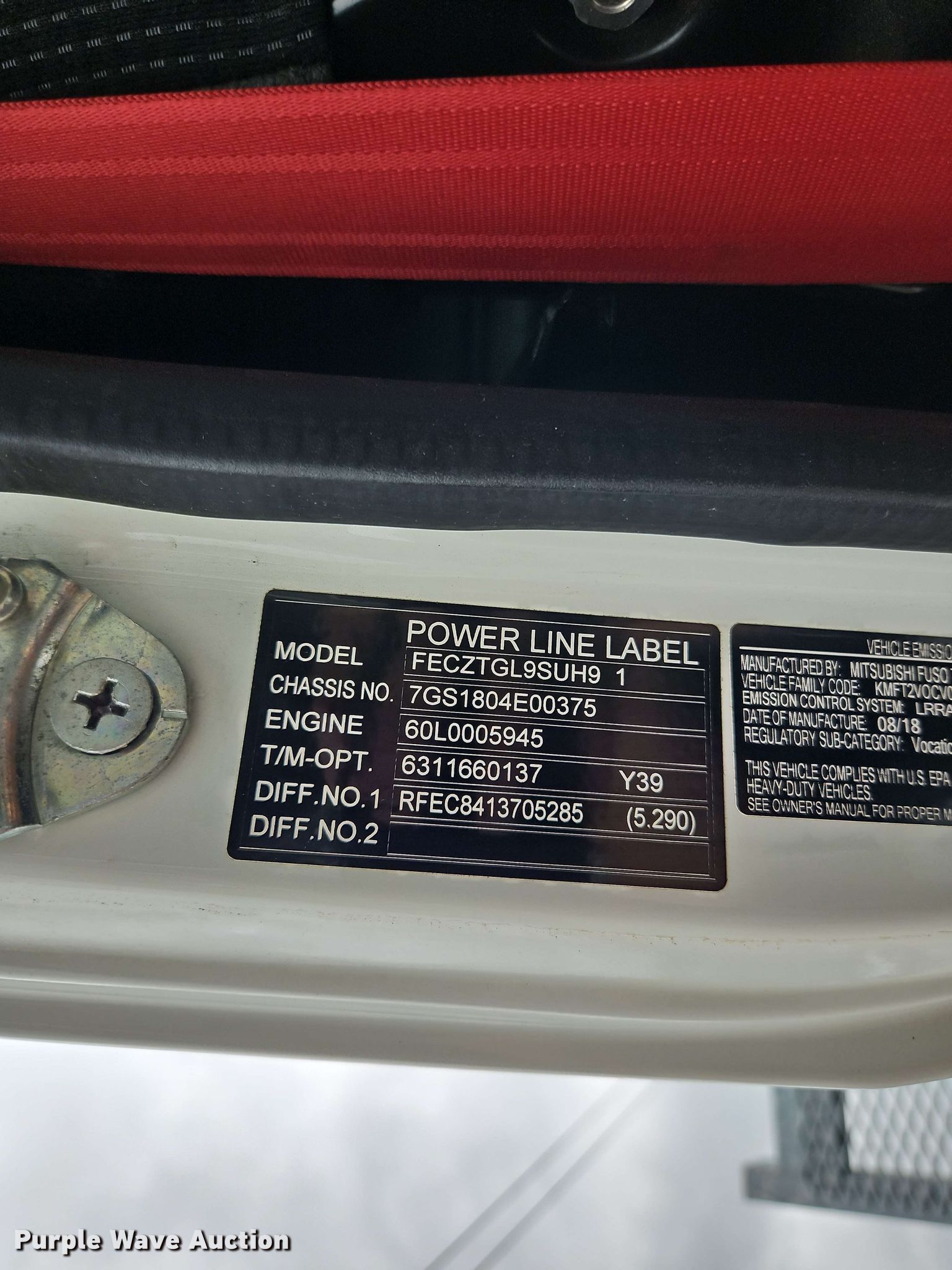 2019 Mitsubishi Fuso FE140 flatbed truck. Miles: 26,518 on odometer, VIN: 4UZBYG115KGKG3748, Unit #: 31. Engine Displacement: 6.0L V8 OHV, Cylinders: 8, Fuel type: Gas. Transmission Automatic. Interior AC, Heat, Power windows, Power locks, Cruise control. Features Flatbed 18' L x 96" W, Ramps: 6'. Tires Size: 215/75R17.5. Notes Salt dawg control box not included. Kansas title. Title distribution may be delayed up to 14 days from verification of funds. Focal Pointe. Stilwell, KS 66085