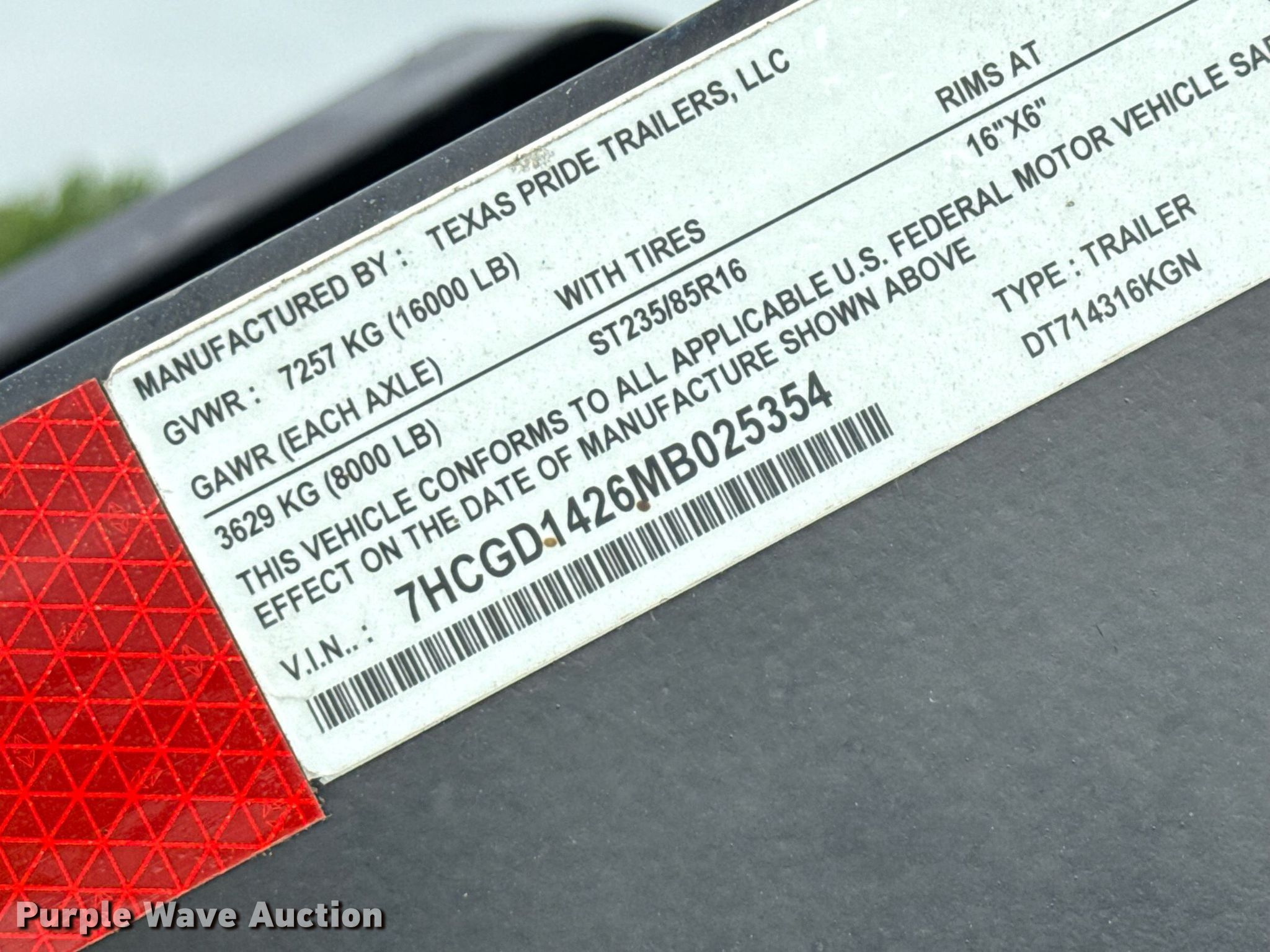 Purple Wave is selling a used Dump Trailer in Texas. This item is a 2021 Texas Pride DT714316KGN dump trailer with the following: VIN: 7HCGD1426MB025354
