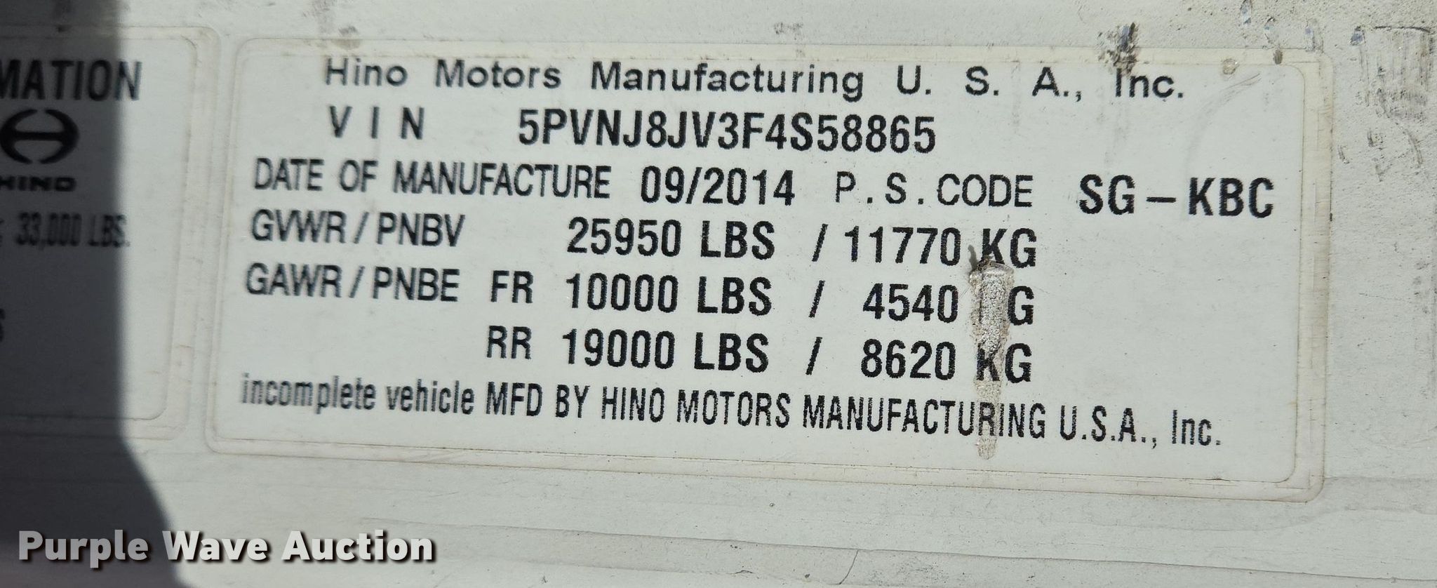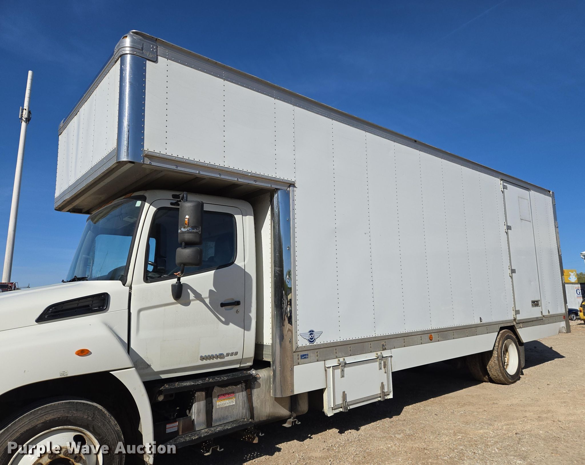 2015 Hino 268 box truck. Miles: 418,801 on odometer, Hours: 999.59 on meter, VIN: 5PVNJ8JV3F4S58865. Engine Hino, Displacement: 7.6L, Cylinders: 6, Fuel type: Diesel. Transmission Automatic. Chassis Axles: Single, Suspension: Air, Brakes: Air, GVWR: 25,950 lbs. Interior AC, Heat, Heated mirrors, Cruise control. Features Box bed KT MV2696, 26' L x 93" W x 9' H, E-track rail system, Floor: Wood. Tires Size: 255/70R22.5. Missouri title. Title distribution may be delayed up to 14 days from verification of funds. D&M Farms. Sullivan, MO 63080