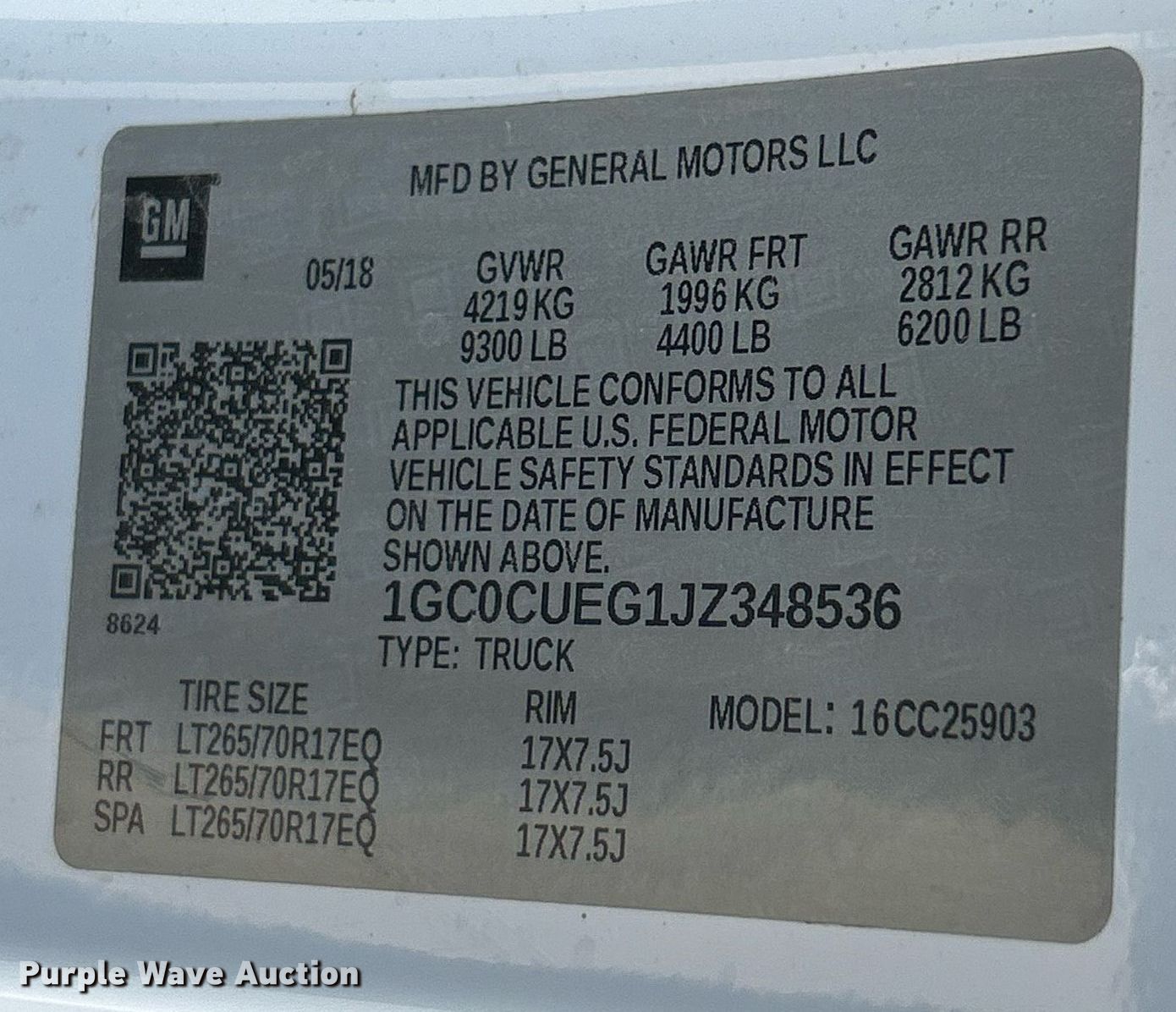 This 2018 Chevrolet Silverado 2500HD pickup truck will sell to the highest bidder regardless of price.