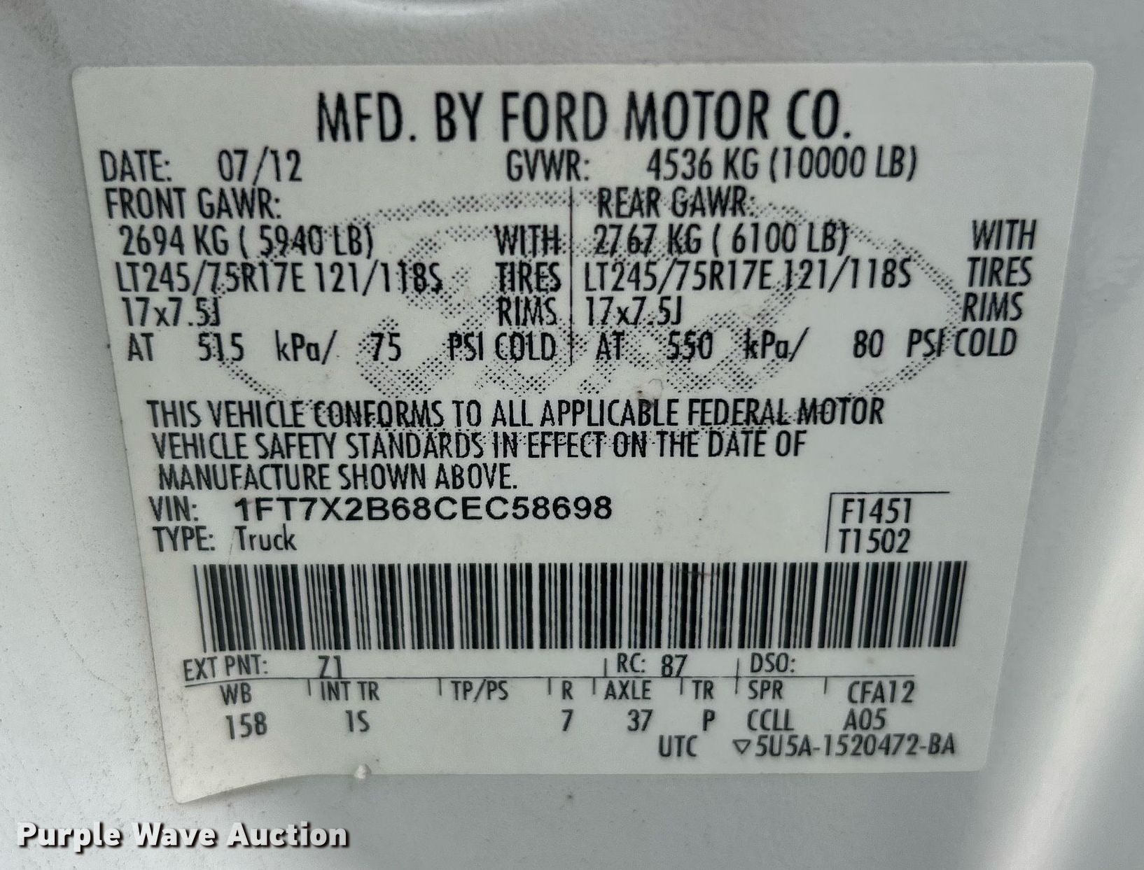 2012 Ford F250 Super Duty SuperCab pickup truck. Miles: 316,195 on odometer, VIN: 1FT7X2B68CEC58698. Engine Displacement: 6.2L V8 OHV, Cylinders: 8, Fuel type: Gas. Transmission Automatic, Four wheel drive. Interior AC, Heat, Power windows, Cruise control. Tires Size: 225/70R19.5. Notes Dash warning indicator: TPMS. Missouri title. Seller is a licensed motor vehicle dealer. The buyer may be required to pay sales tax and/or registration fees to the dealer prior to taking possession. Title will be assigned and distributed by the dealer. Please contact the seller for distribution questions. Title distribution may be delayed up to 30 days from verification of funds. Northpoint Enterprises, LLC. Troy, MO 63379