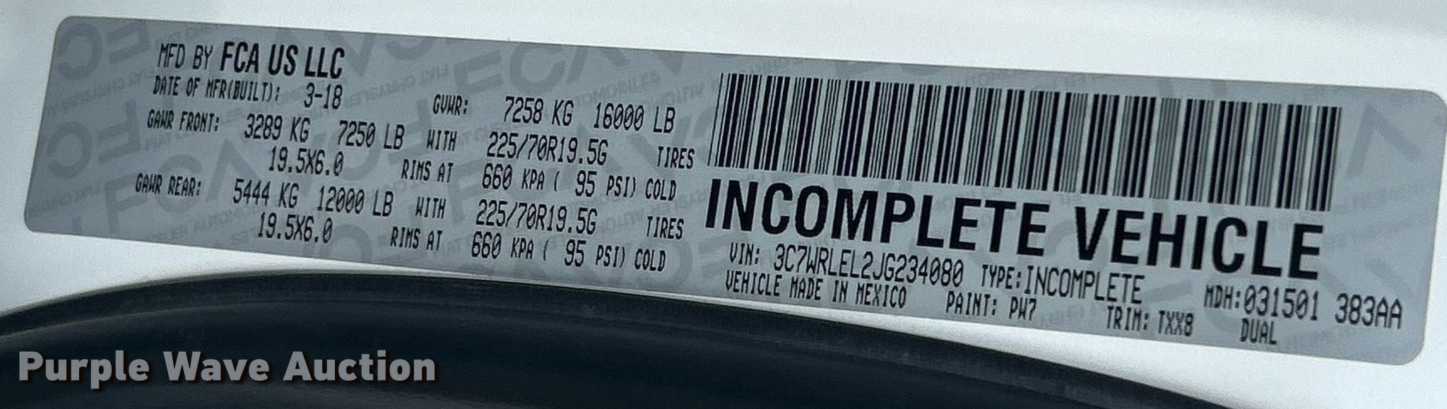 Purple Wave is selling a used Flat Bed Truck in Missouri. This item is a 2018 Dodge Ram 4500 Crew Cab flatbed truck with the following: Miles: 212,845 on odometer, VIN: 3C7WRLEL2JG234080