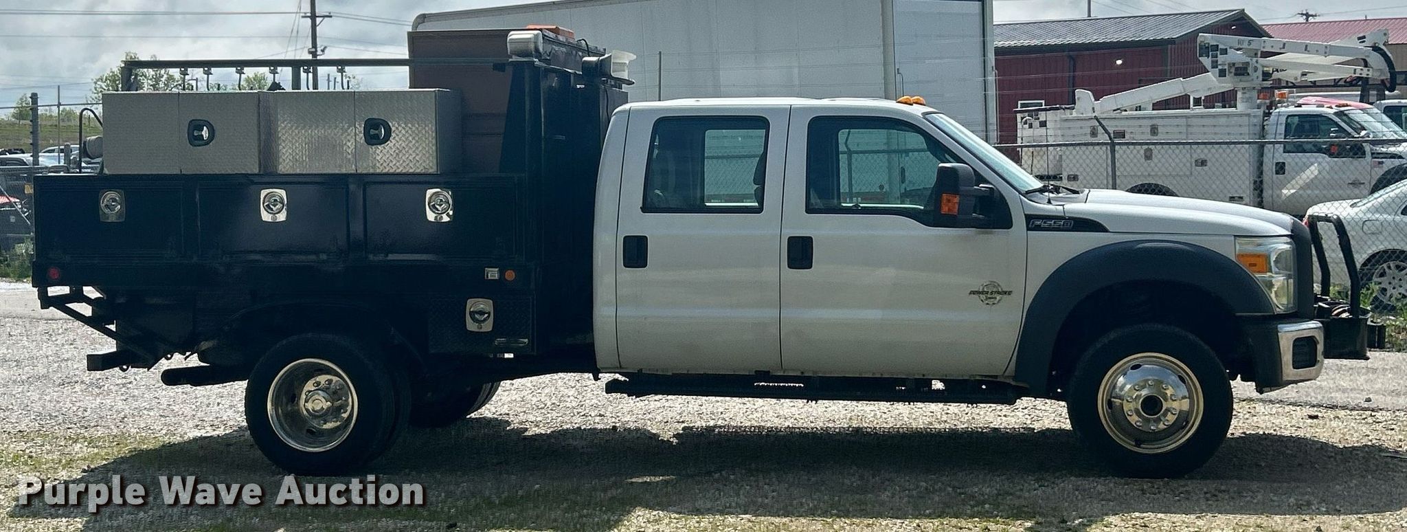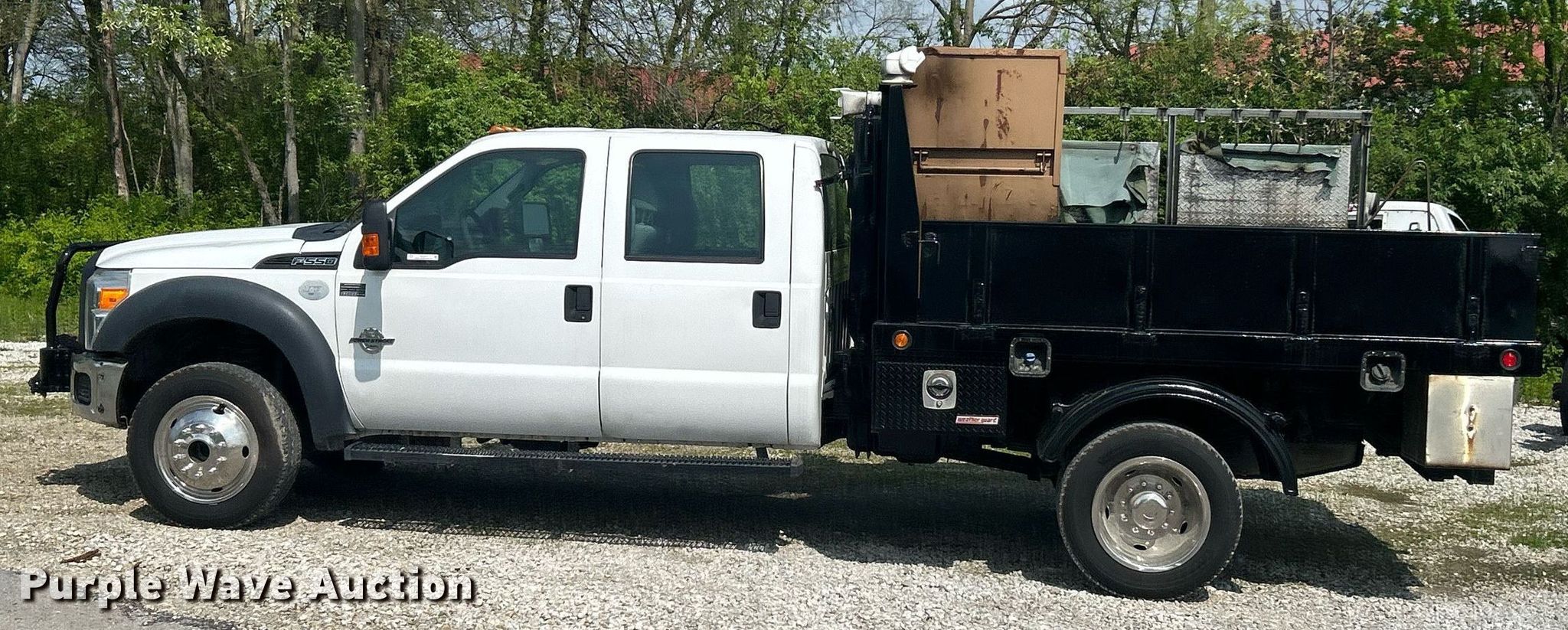 This 2012 Ford F550 Super Duty Crew Cab flatbed truck will sell to the highest bidder regardless of price.