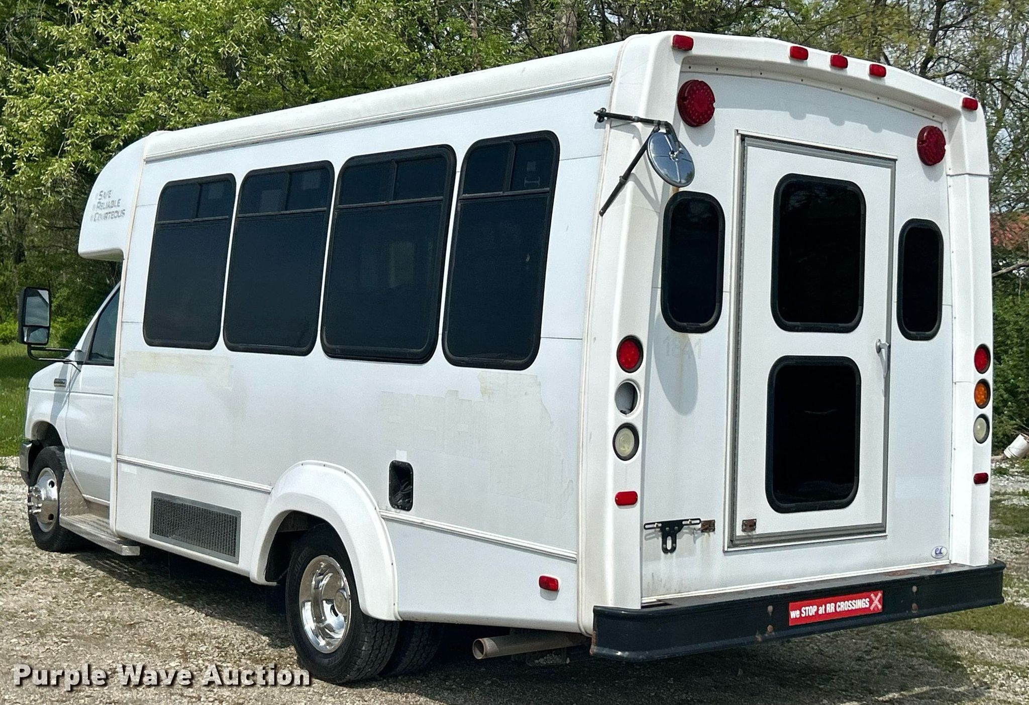 This 2011 Ford E350 Super Duty shuttle bus will sell to the highest bidder regardless of price.