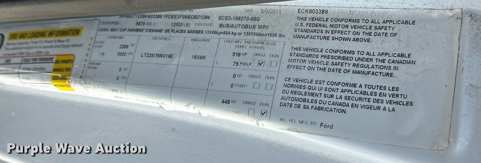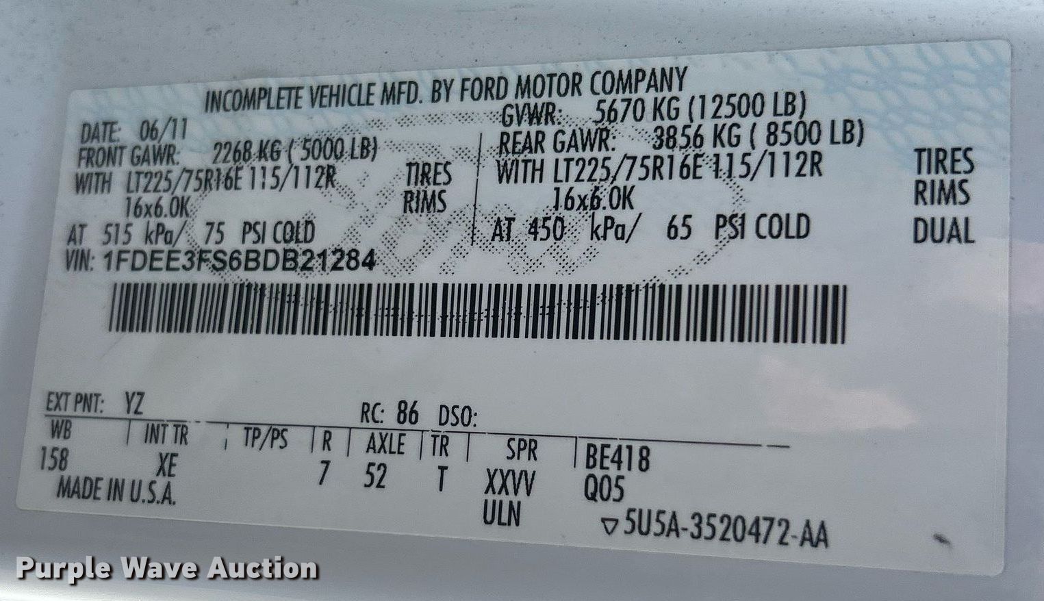 • VIN: 1FDEE3FS6BDB21284