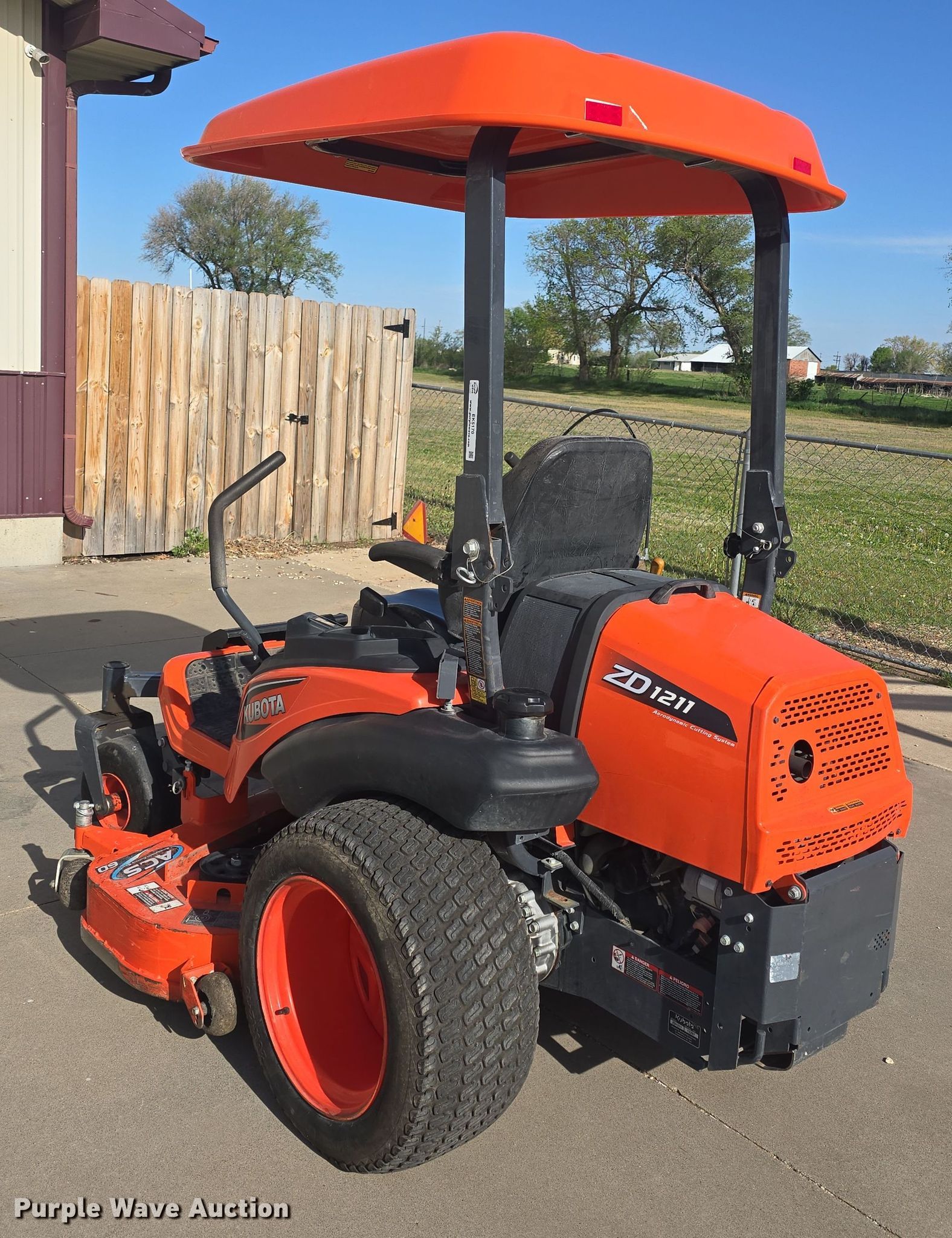 Purple Wave is selling a used Commercial Turf Mower in Kansas. This item is a 2016 Kubota ZD1211 ZTR lawn mower with the following: Hours: 224 on meter, Cutting width: 60", Serial: 13297