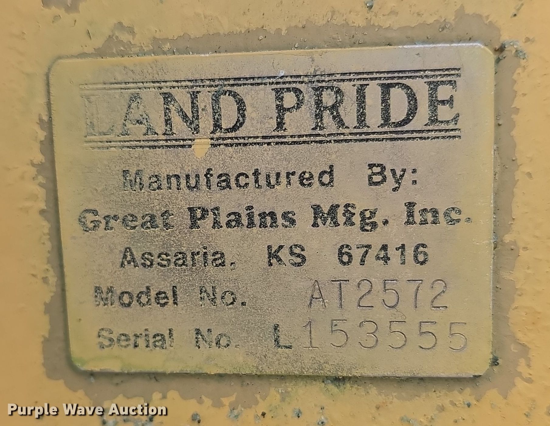 Land Pride AT2572 finish mower. Serial: L153555. Features Width: 76", PTO: 540, Hitch: Three point. Notes Unknown operating condition. Wamego, KS 66547