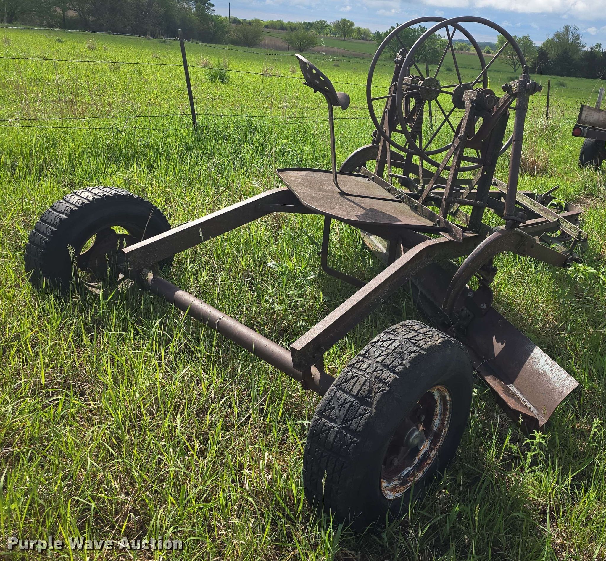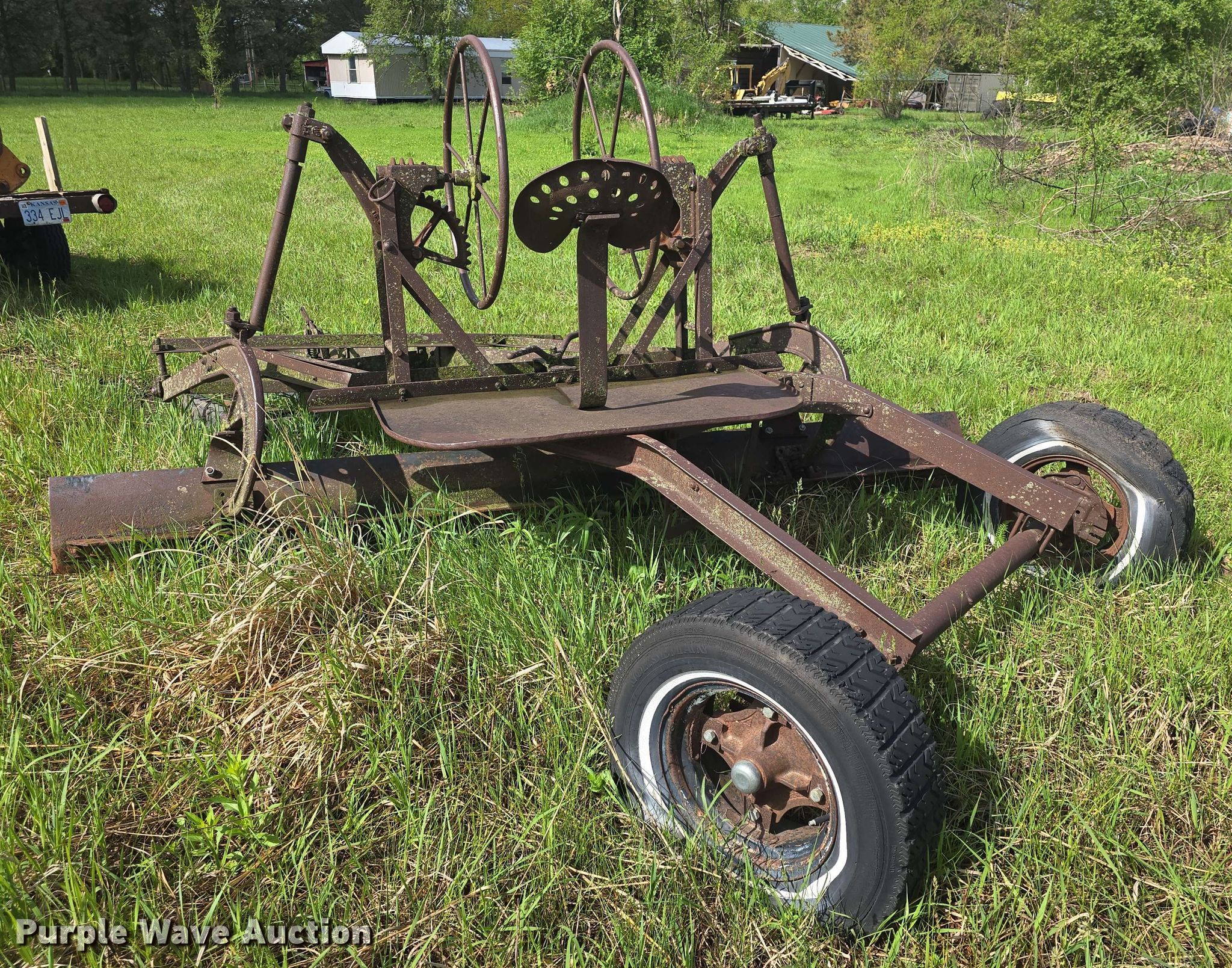 Pull type grader. Features. Blade width: 10', Manual operation Dual reels. Chassis Hitch: Pintle, Axles: Single. Tires Size: J78-14. Notes Flat tires, Tires weathered, Unknown operating condition. Maple Hill, KS 66507