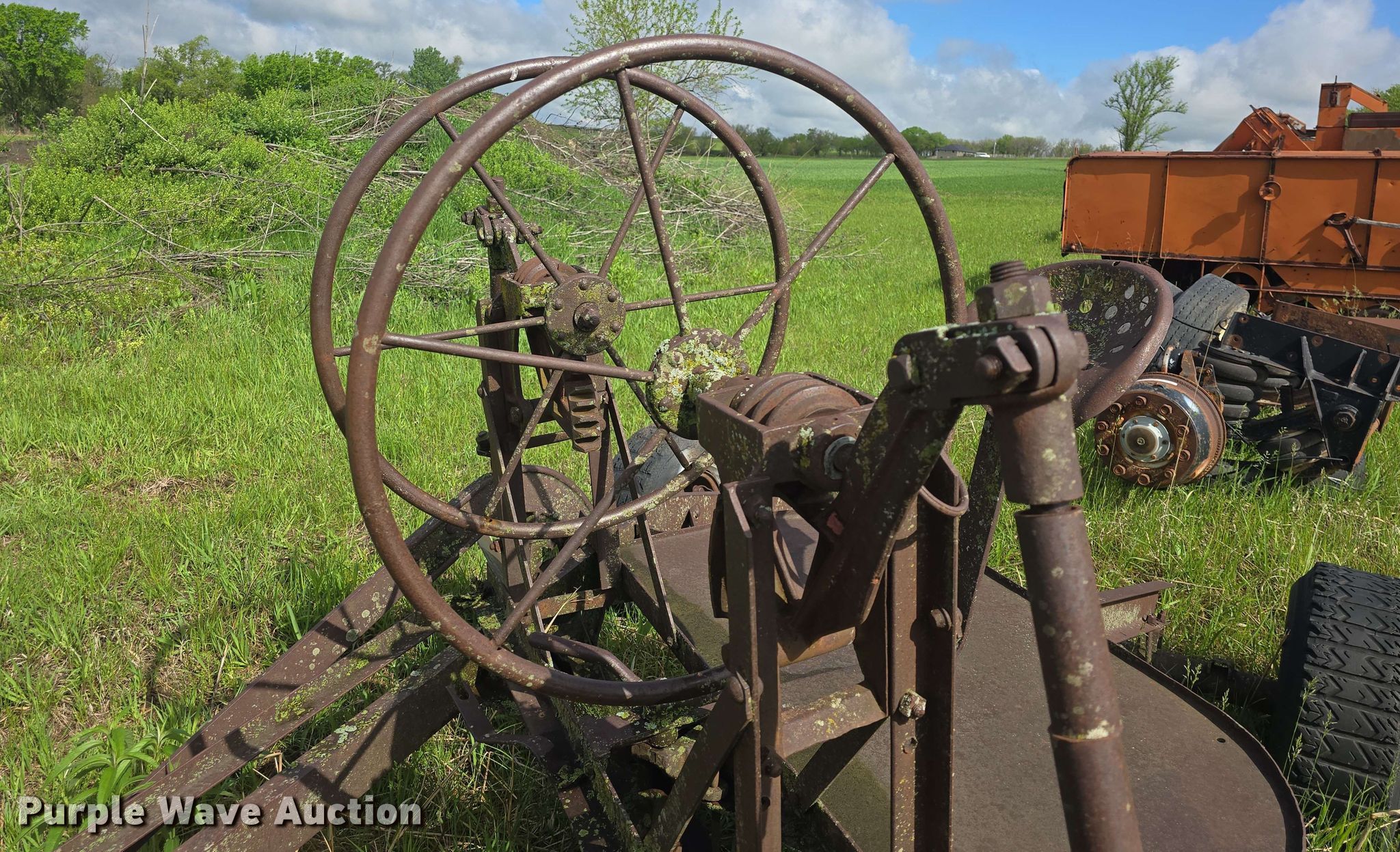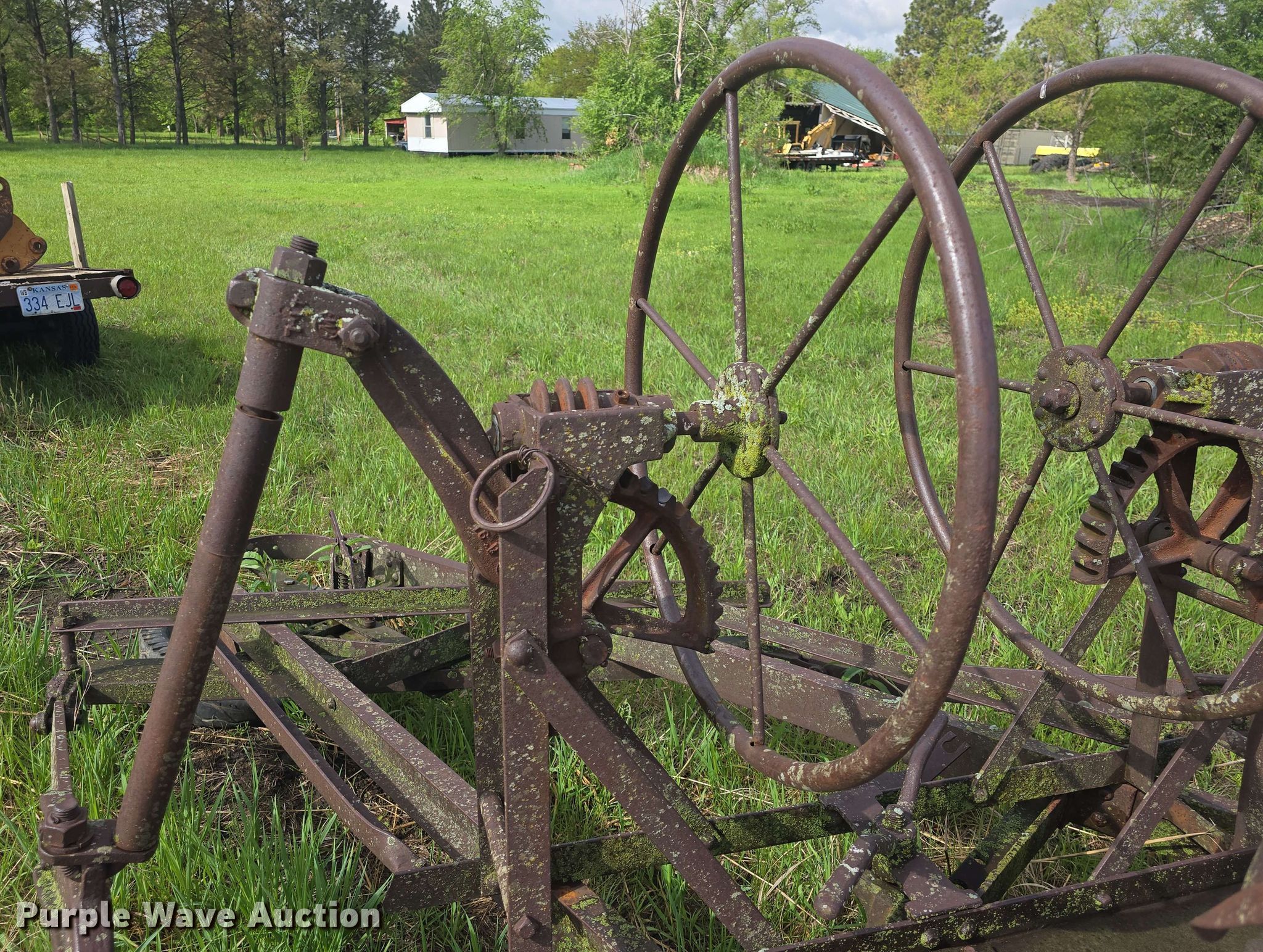 Purple Wave is selling a used Pull Type Scraper in Kansas. This item is a Pull type grader with the following: Blade width: 10', Manual operation, Dual reels