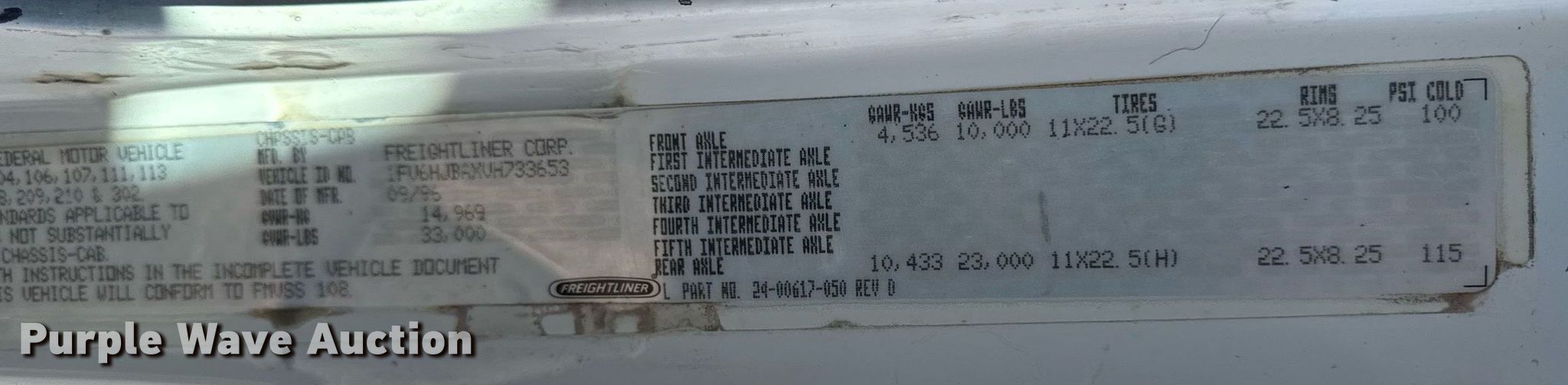 Purple Wave is selling a used Flat Bed Truck in Iowa. This item is a 1997 Freightliner FL70 dump flatbed truck with the following: Miles: 72,653 on odometer, Hours: 11,639 on meter, VIN: 1FV6HJBAXVH733653