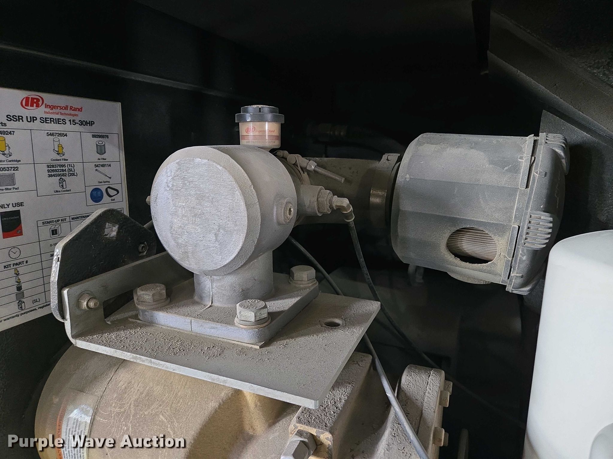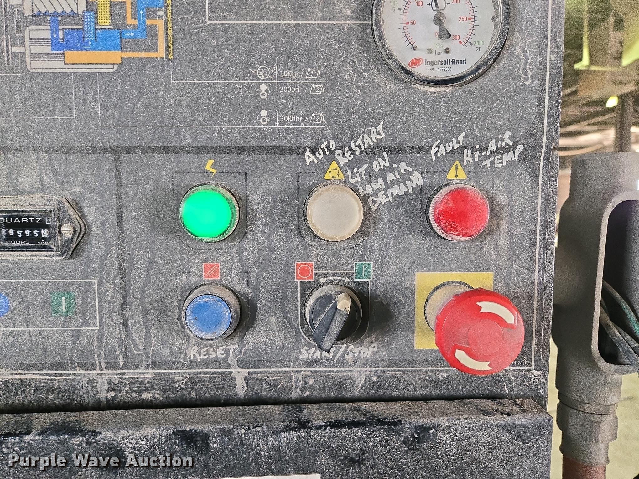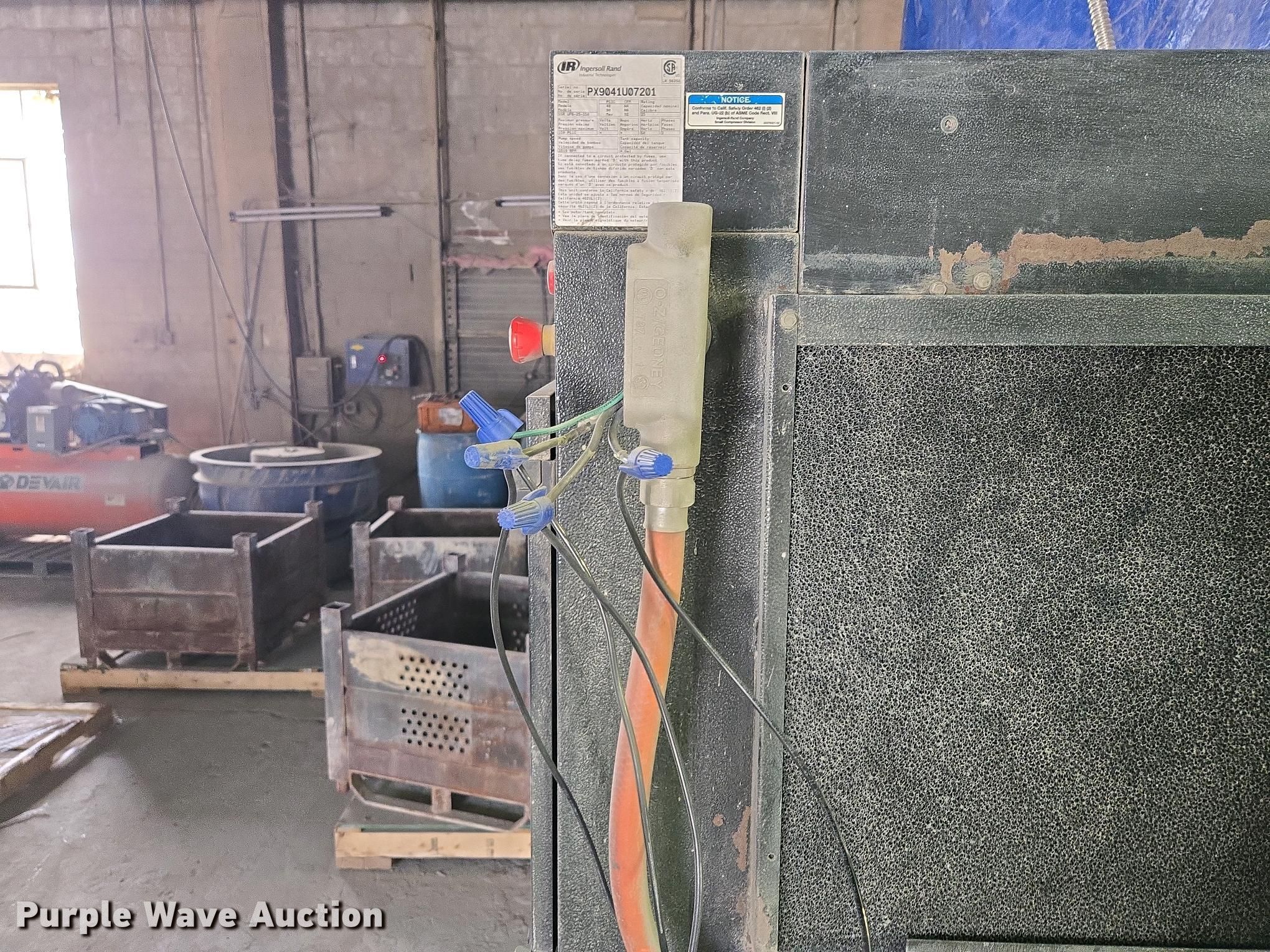 Purple Wave is selling a used Air Compressor in Missouri. This item is a Ingersoll Rand SSR UP6-25-150 air compressor with the following: Hours: 9,595 on meter, Serial: PX9041U07201