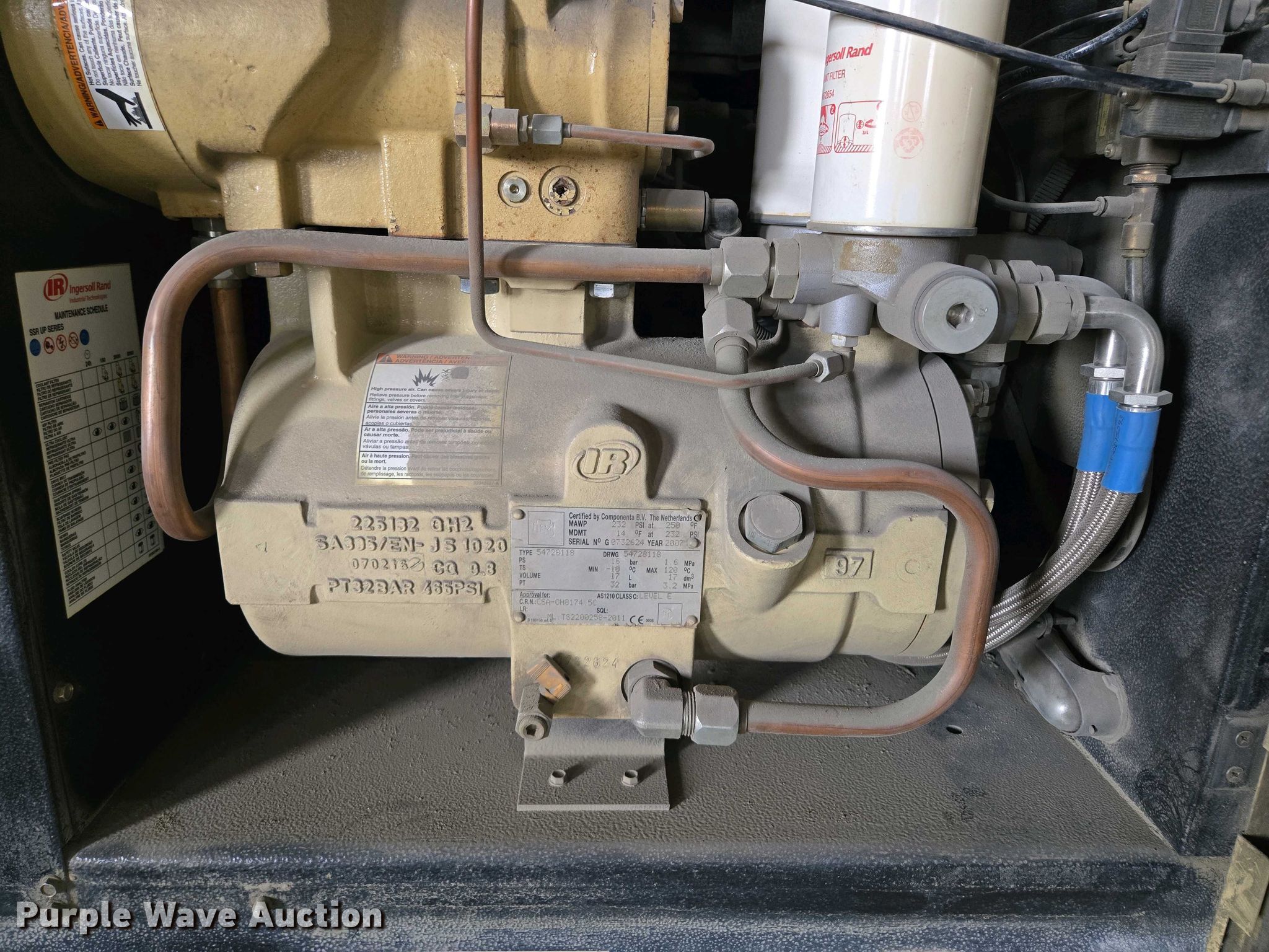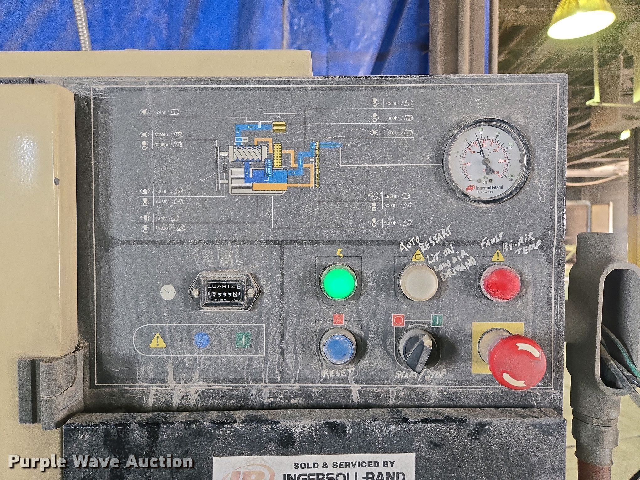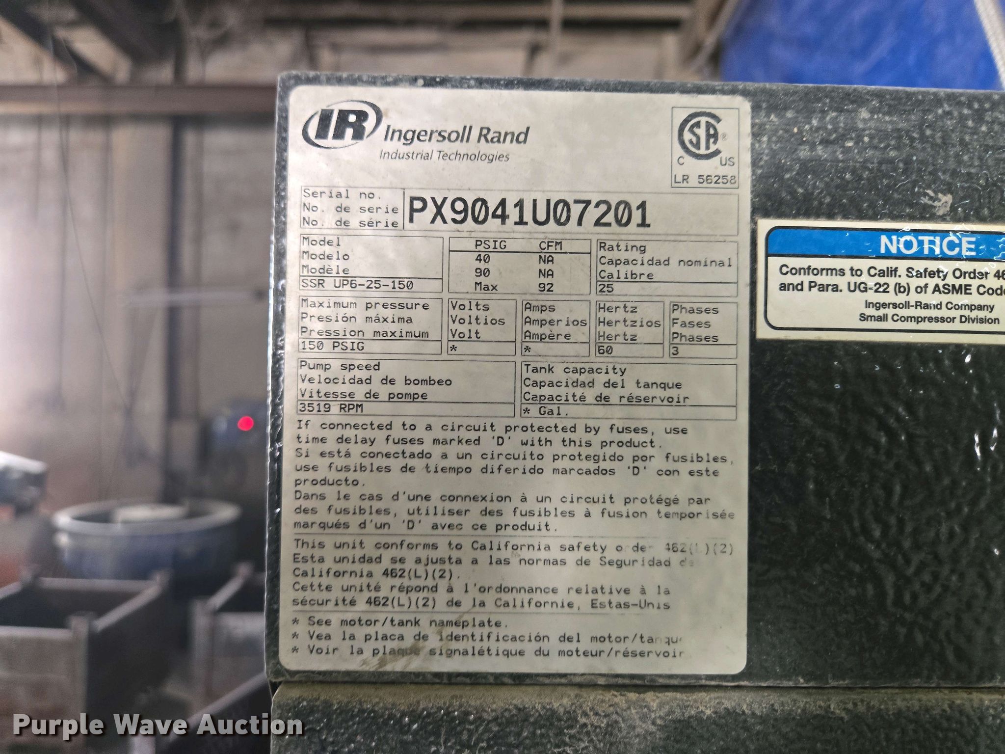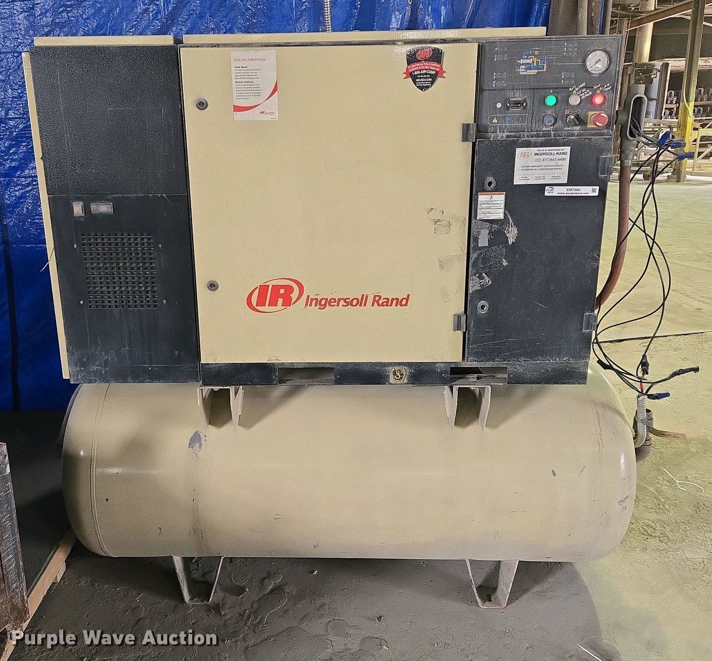 Purple Wave is selling a used Air Compressor in Missouri. This item is a Ingersoll Rand SSR UP6-25-150 air compressor with the following: Hours: 9,595 on meter, Serial: PX9041U07201