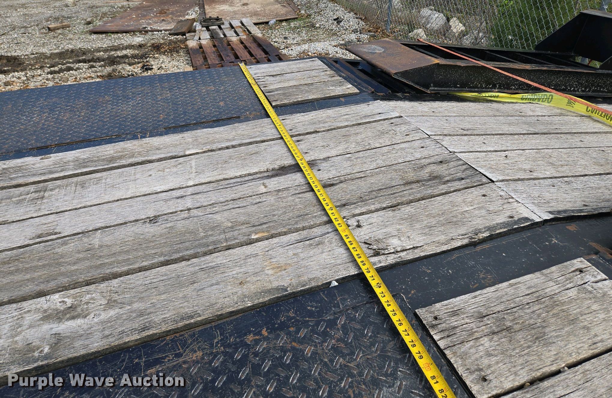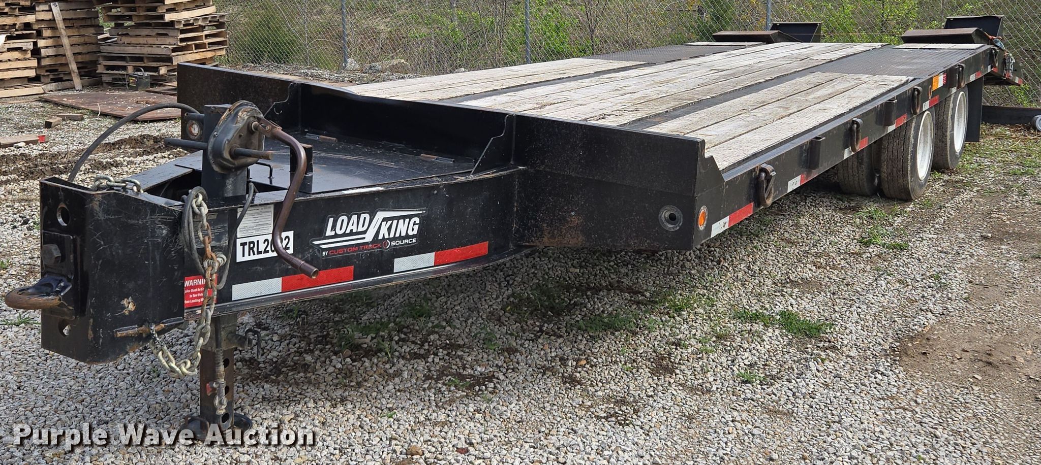 2022 Load King equipment trailer. VIN: 5LKT33227N2032770. Dimensions Overall: 34' L x 102" W, Deck: 21' 5" L x 102" W, Tail length: 6' 2", Ramps: Manual Length: 6'. Features Deck type: Wood. Chassis Hitch: Pintle, Landing gear: Single, Suspension: Spring, Brakes: Air, Axles: Tandem, GVWR: 47,600 lbs. Tires Steel wheels, Size: 215/75R17.5. Notes Frame damage, twisted. Missouri title. Title distribution may be delayed up to 14 days from verification of funds. Precision Construction & Contracting, LLC. Holden, MO 64040