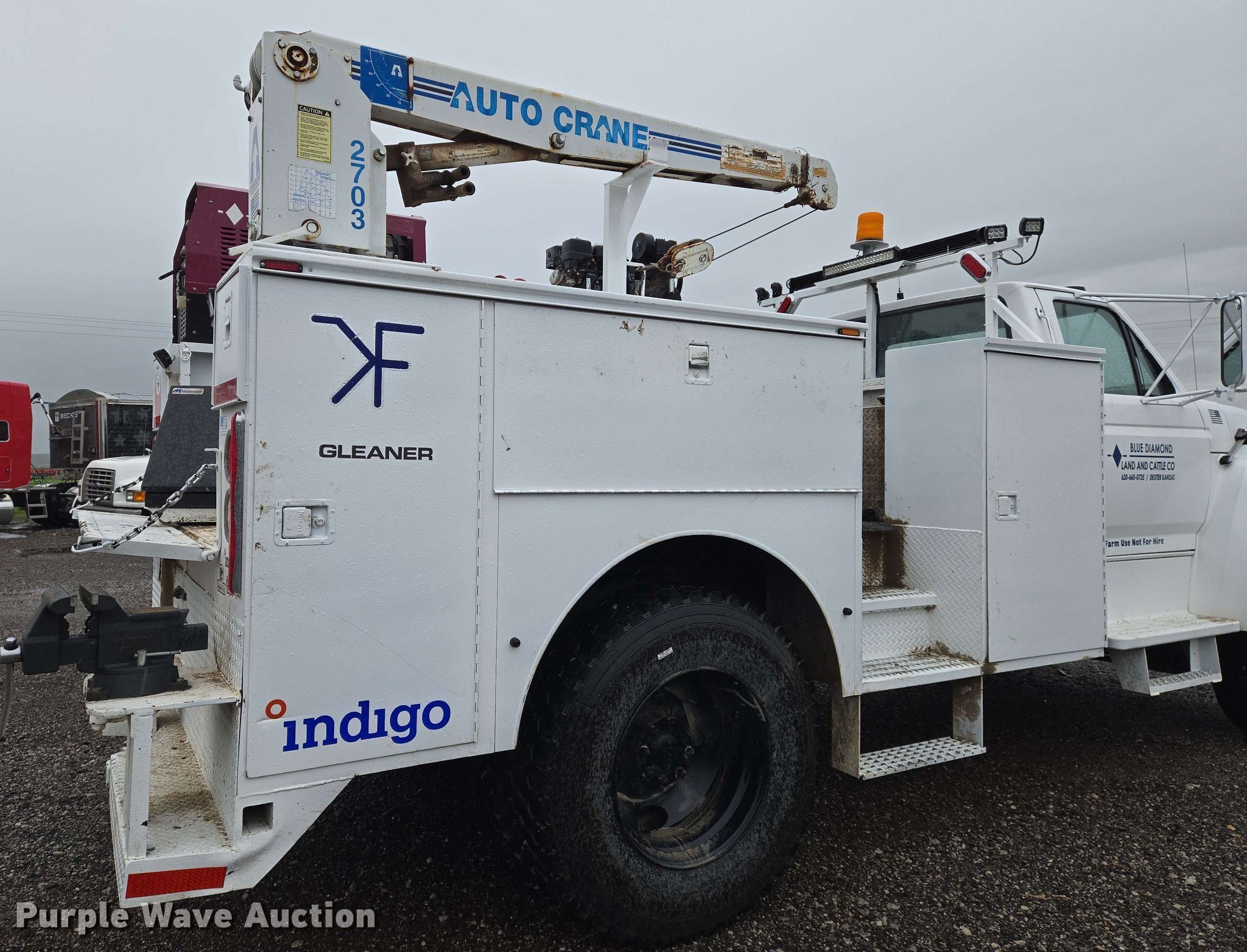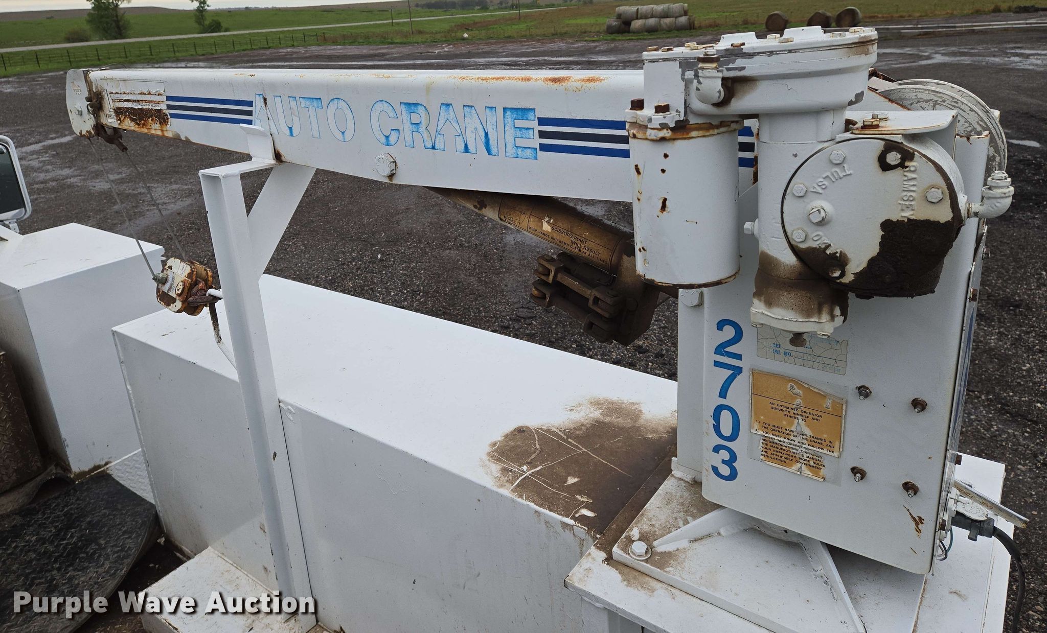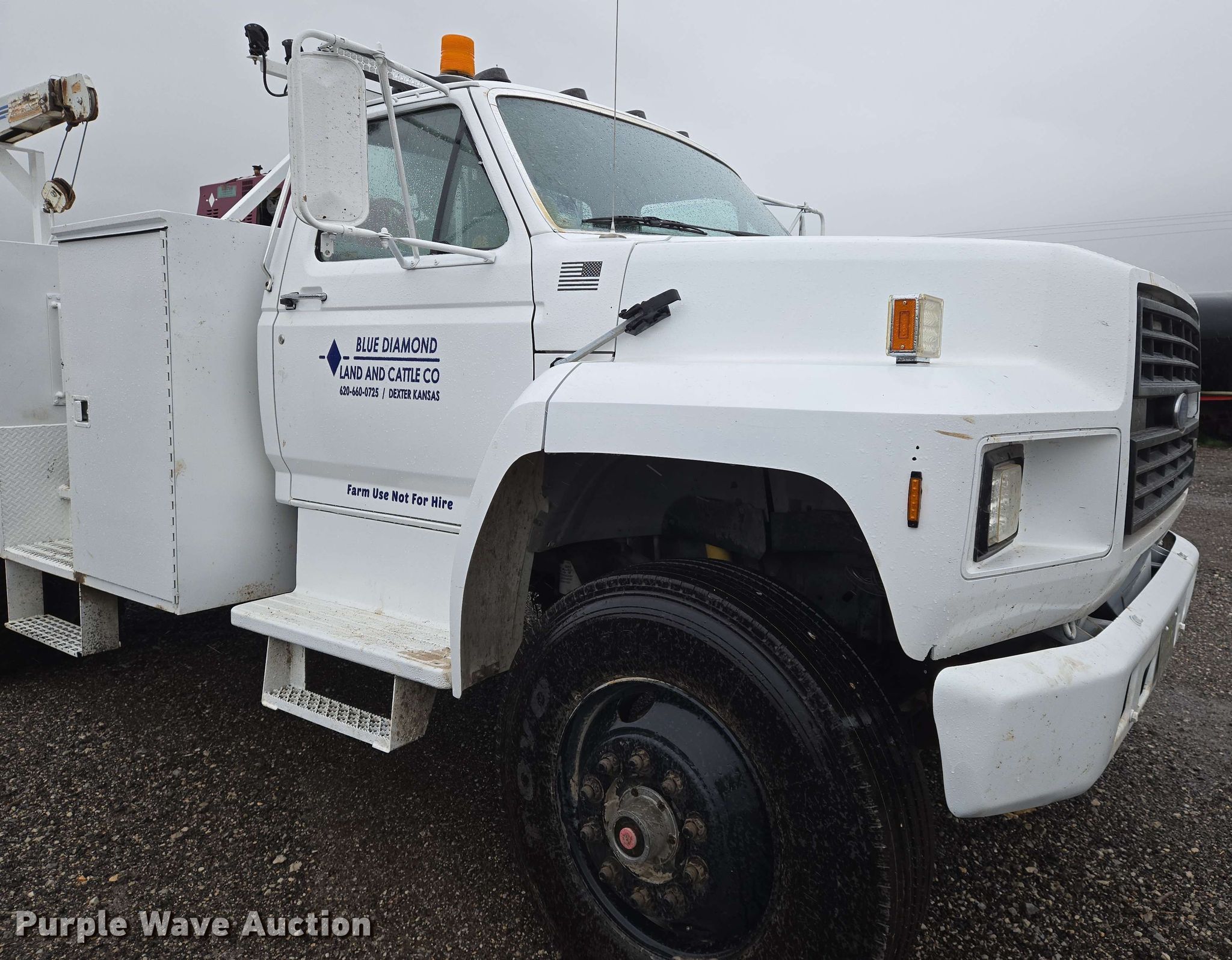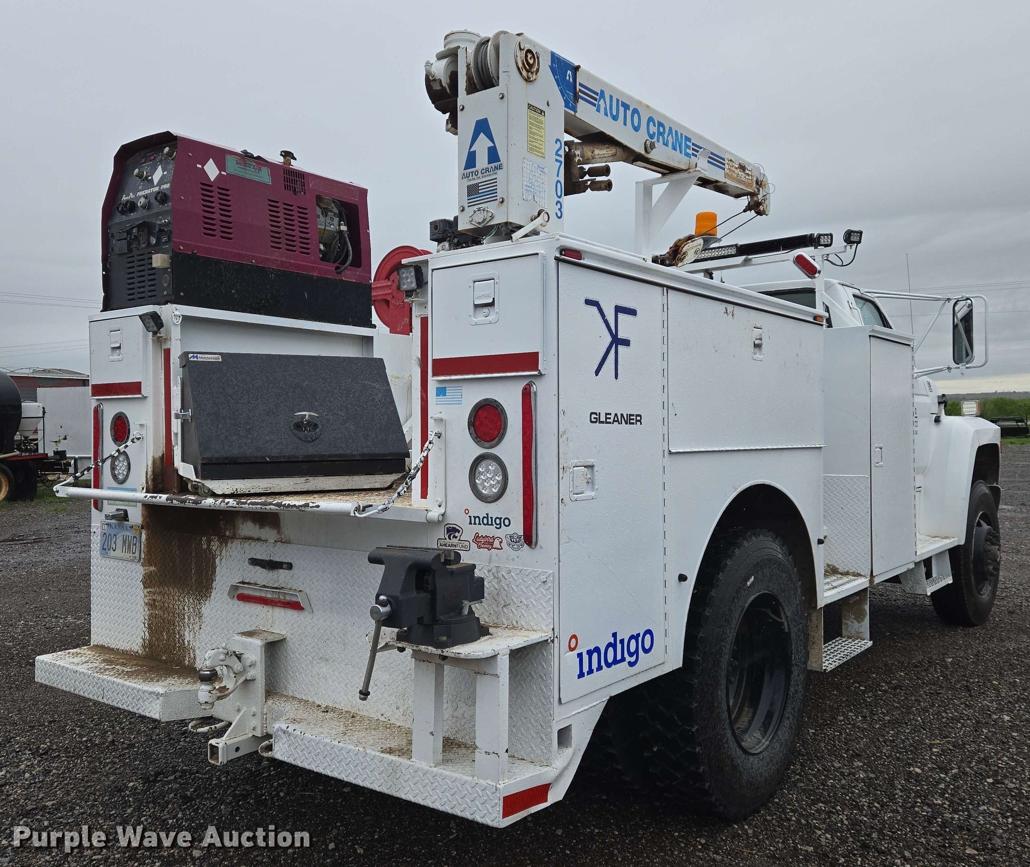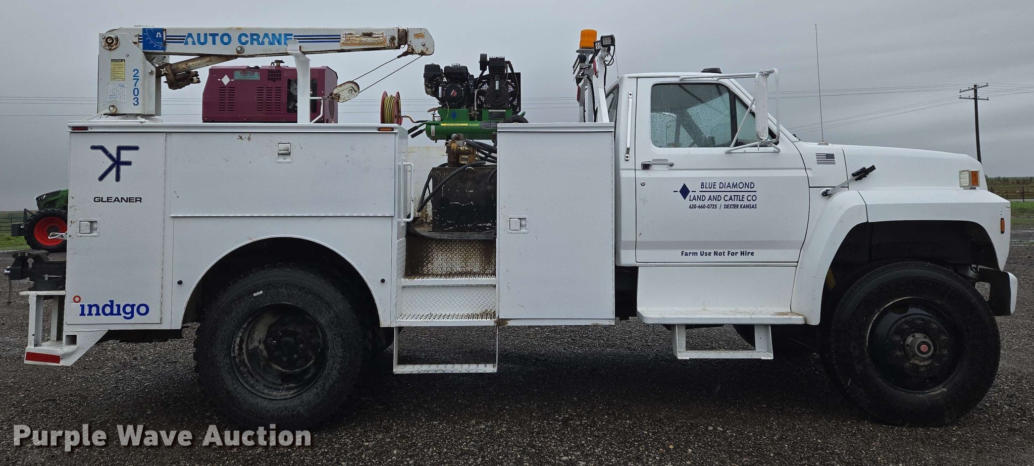 1989 Ford F800 utility / service truck. Miles: 316,193 on odometer, Hours: 1,737 on meter, VIN: 1FDXK84A0KVA10622. Engine Ford, Cylinders: 6, Fuel type: Diesel. Transmission Automatic. Chassis Axles: Single, Suspension: Spring, Brakes: Air. Interior Heat, Auxiliary controls. Features Bed 11' 2" L x 95" W, Crane Auto crane 2703, Maximum boom length: 20' Maximum lift capacity: 2,700 lbs.. Tires Size: 11R22.5. Notes Air compressor, welder, and contents not included, Possible engine issues, noise , Possible rod bearing issues, may need replaced. Kansas title. Title distribution may be delayed up to 30 days from verification of funds. Dexter Township. Dexter, KS 67038