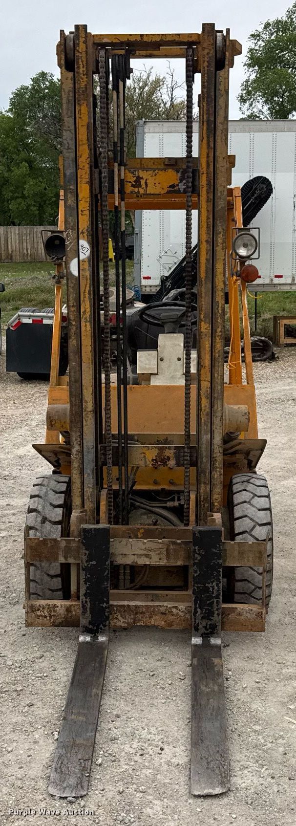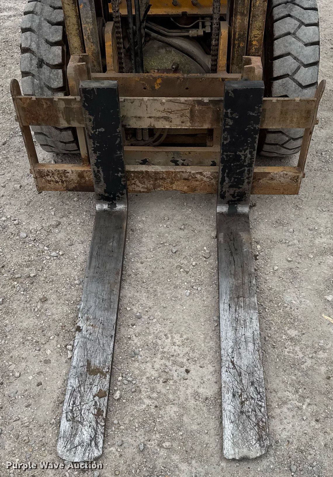Nissan PH02 forklift. Hours: 2,620 on meter, Serial: PH02-005129. Engine Nissan, Cylinders: 4, Fuel type: Gas. Transmission Powershift. Features Maximum lift capacity: 4,000 lbs, Maximum lift height: 156", Mast stages: 2, Mast tilt, Fork length: 38". Tires Front: 7.00-12, Rear: 6.00-9. QP Distribution. Mulvane, KS 67110