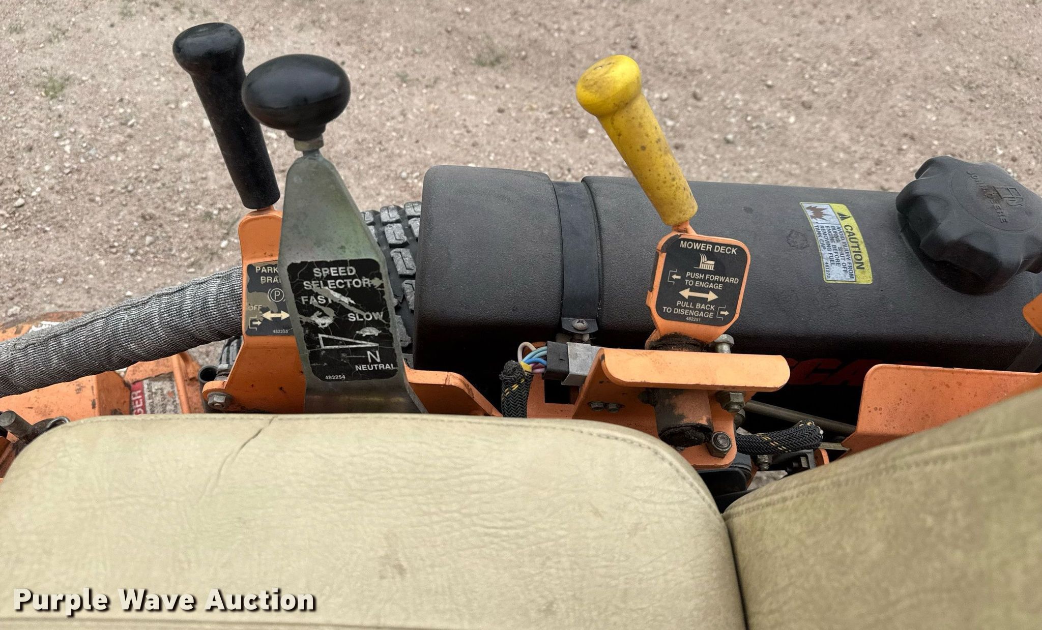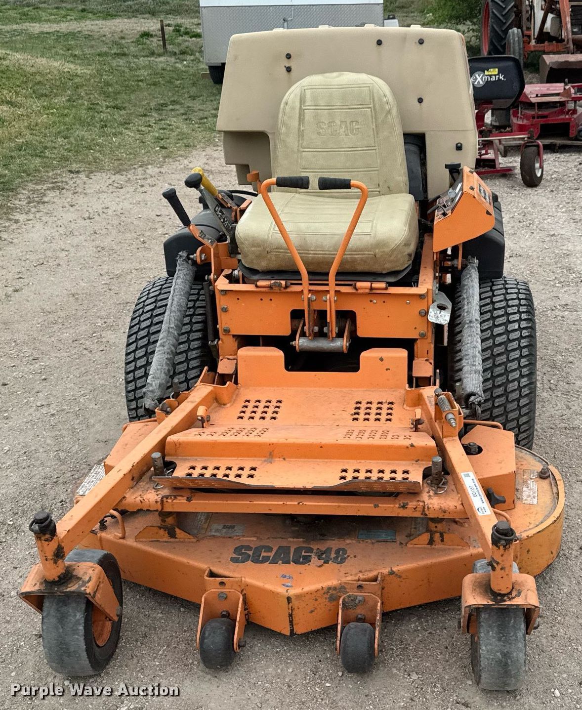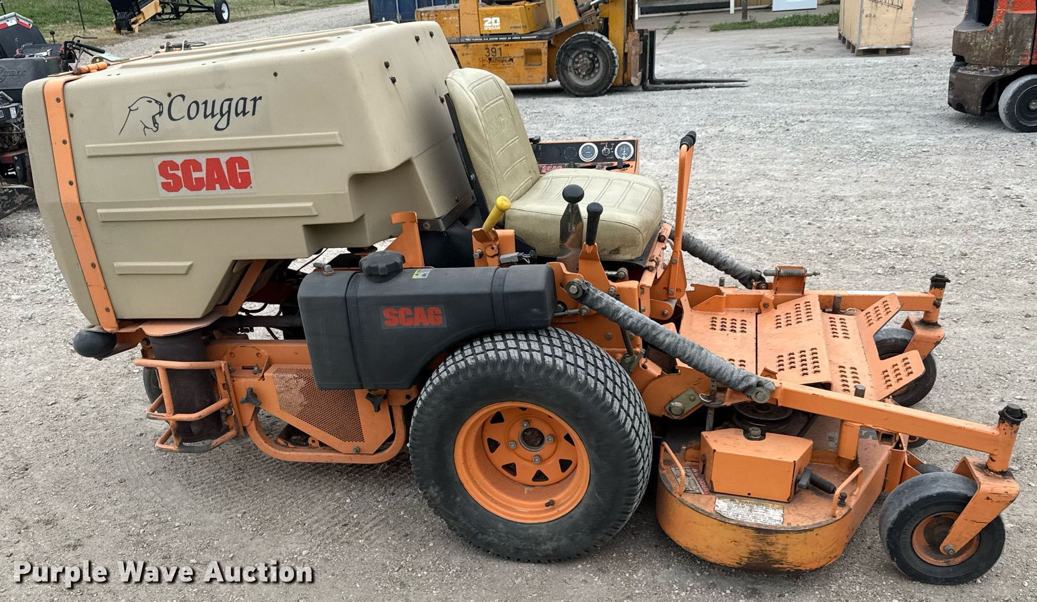 Purple Wave is selling a used Lawn Mower in Kansas. This item is a Scag Cougar ZTR lawn mower with the following: Hours: 637 on meter, Cutting width: 48", Serial: 6460165