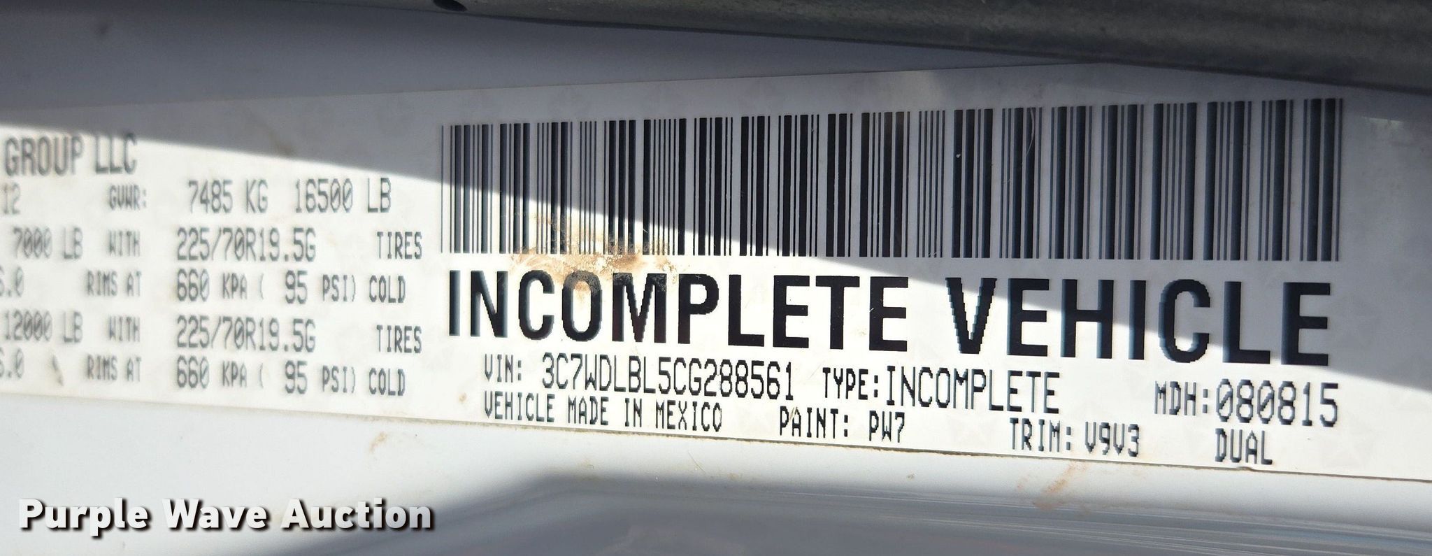 - VIN: 3C7WDLBL5CG288561