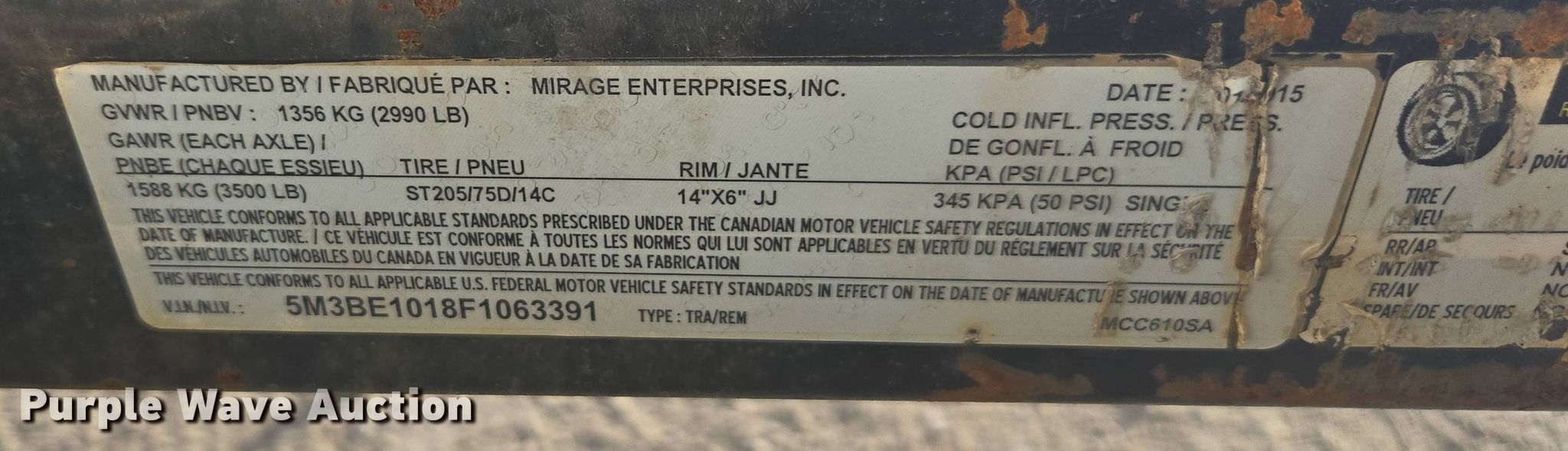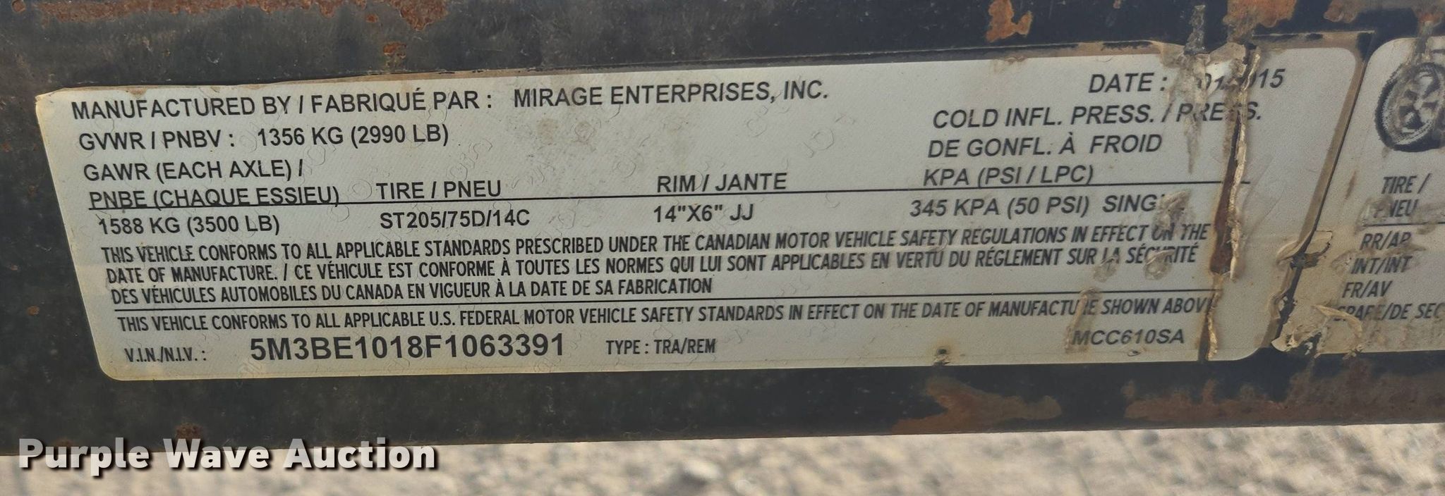 Purple Wave is selling a used Enclosed Cargo Trailer in Idaho. This item is a 2015 Mirage Trailer enclosed cargo trailer with the following: VIN: 5M3BE1018F1063391