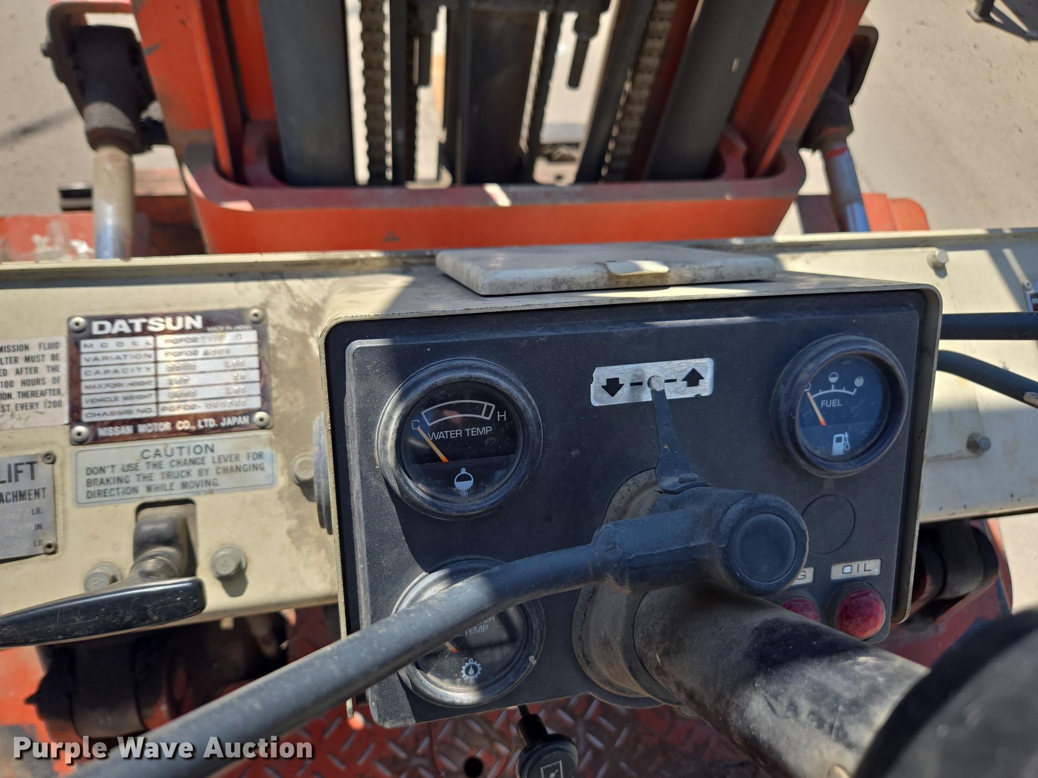 Purple Wave is selling a used Cushion Tire or Pneumatic Forklift in Oregon. This item is a Datsun 6000 forklift with the following: Hours: 4,582 on meter