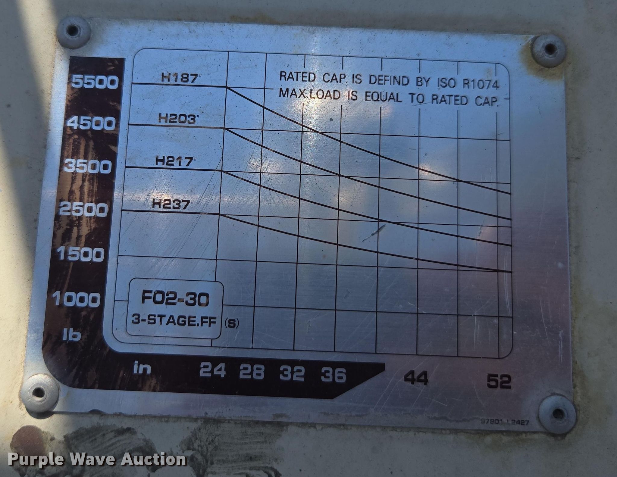 Datsun 6000 forklift. Hours: 4,582 on meter. Engine Nissan, Cylinders: 4, Fuel type: Gas. Transmission Powershift, 1F - 1R. Operators station OROPS. Features Maximum lift capacity: 5,500 lbs, Maximum lift height: 187", Mast stages: 3, Side shift, Mast tilt, Fork length: 48". Tires Front: 815x15, Rear: 6.50-10. Wilbert Funeral Services. La Grande, OR 97850