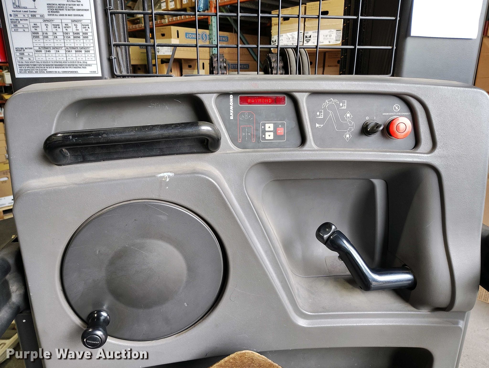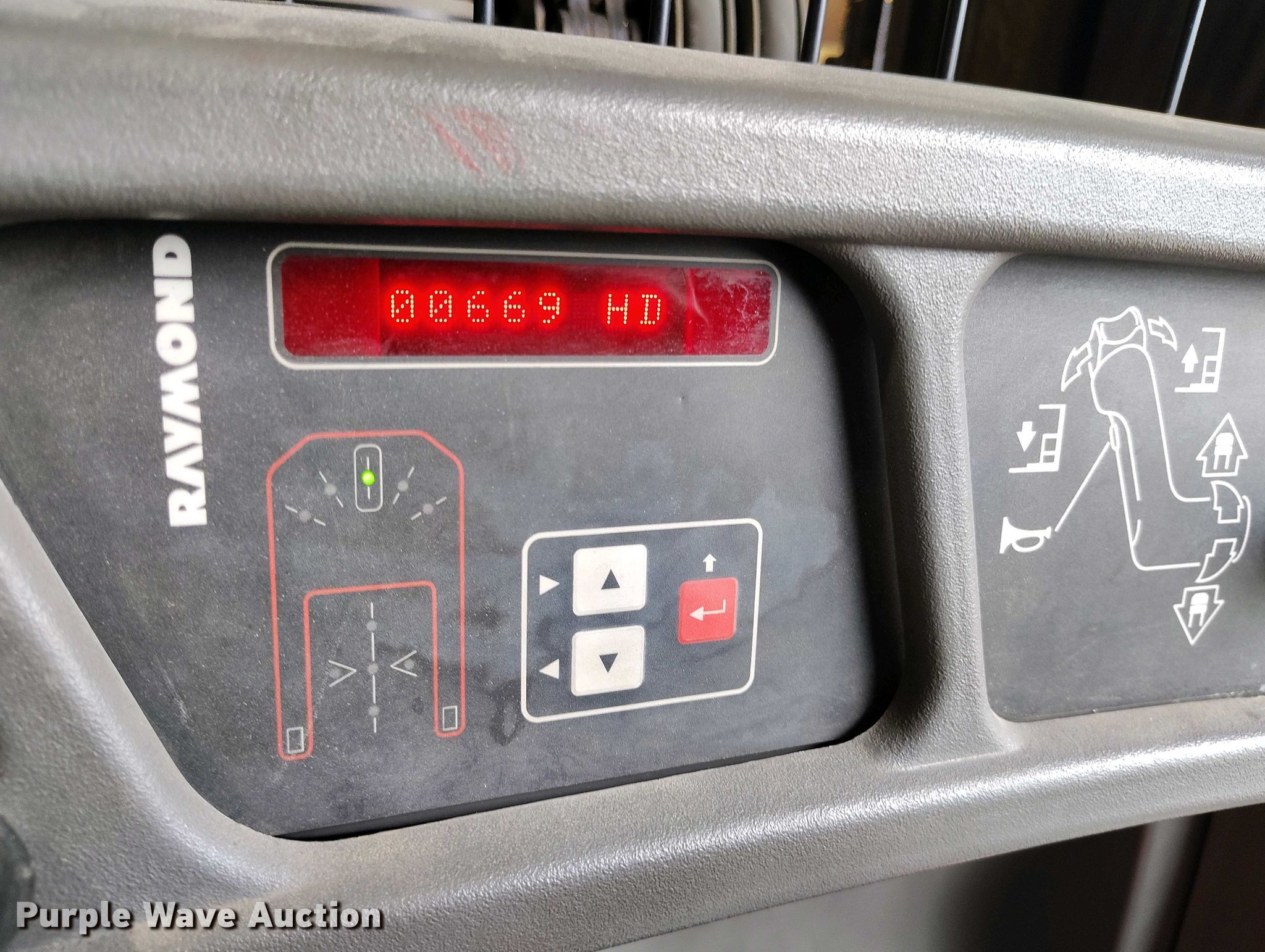 Purple Wave is selling a used Warehouse Forklift in California. This item is a Raymond 540-OPC30TT order picker with the following: Deadman hours: 669 on meter, Lift hours: 116 on meter, Miles or hours may vary, unit still in use, Serial: 540-15-A23893, Unit #: SFS1955