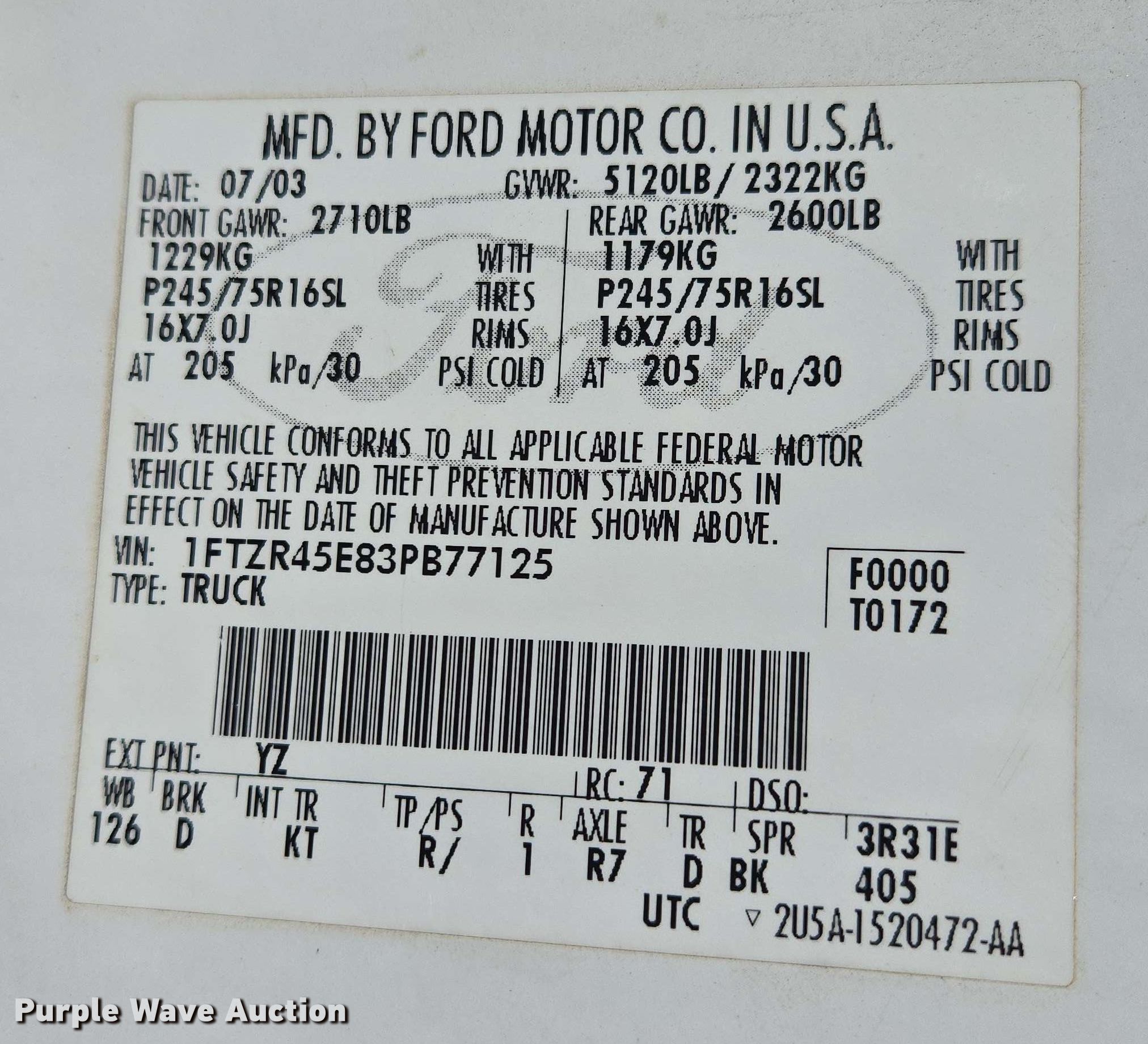 This 2003 Ford Ranger SuperCab pickup truck will sell to the highest bidder regardless of price.