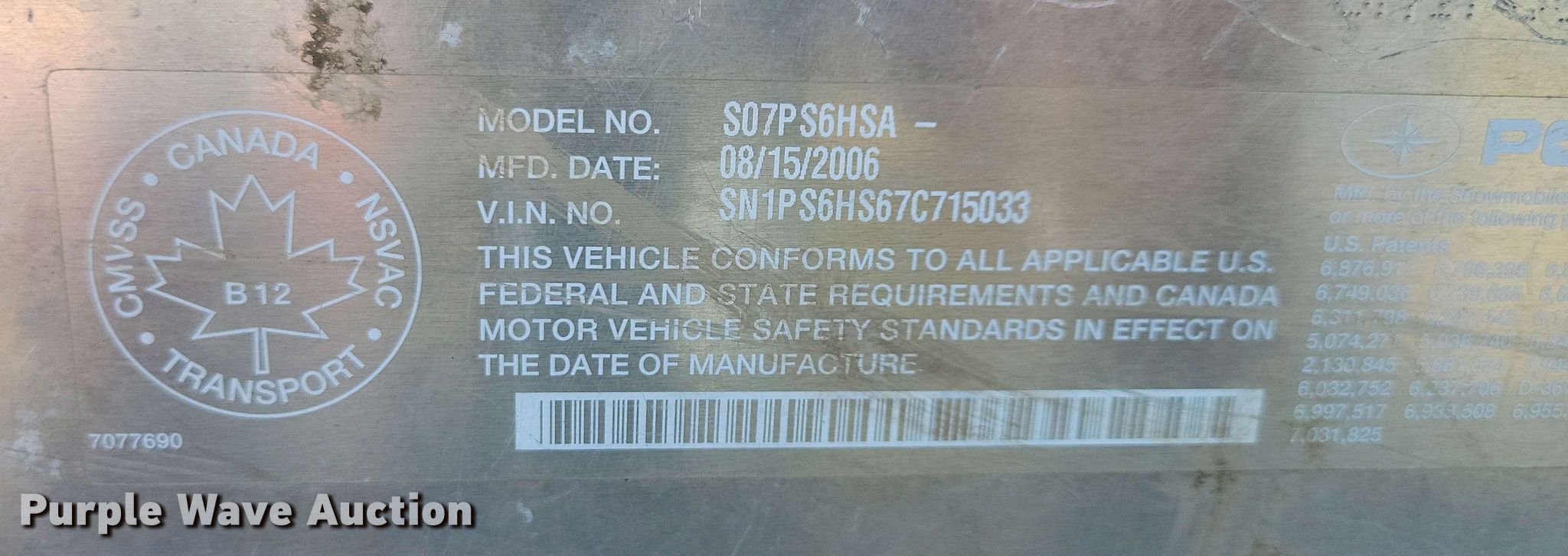 Purple Wave is selling a used ATV in South Dakota. This item is a 2007 Polaris Switchback snowmobile with the following: Hours: 113 on meter, Miles: Unknown, VIN: SN1PS6HS67C715033